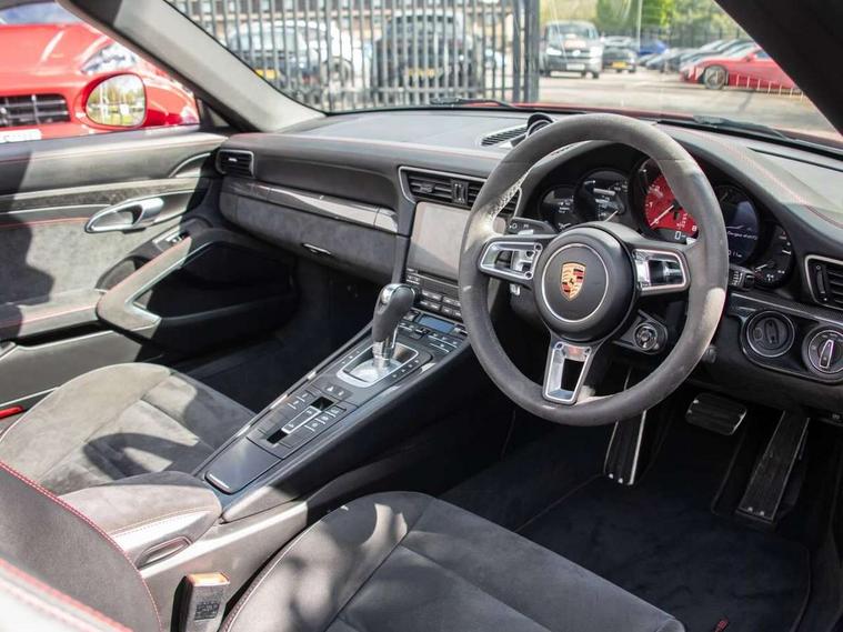 Black rev counter, Instrument cluster with high-resolution 4.6-inch TFT colour display, Mobile telephone preparation, On board computer, PCM voice control, Porsche communication management including navigation, Sports button, Telephone module for PCM, Porsche Active Suspension Management (PASM), Porsche stability management (PSM), Porsche TORQUE Vectoring (PTV) with mechanical rear differential lock, Connect Plus with Apple CarPlay, wireless internet access, Carfinder, Remote Vehicle Status and Remote Services, DAB Digital radio, USB interface in rear, 2 speed front wipers + intermittent wipe, Air blades with active cooling air flaps, Aspherical driver's exterior mirror, Automatic headlamp levelling, Automatic headlights, Automatically extending rear boot spoiler, Body colour bumpers, Body colour door mirrors, Dynamic cornering light with headlamp levelling and speed sensitive driving light control, Electric hood operation with auto side windows, Electric windows + one touch open/close + door seal protection function, Electrically adjustable and heated door mirrors, Electrically powered wind deflector, Front lip spoiler, Green tinted heat insulating glass, Headlight range control, Headlight washers, Heated rear window, Heated windscreen washers, LED daytime running lights, LED tail lights, Sports exhaust system, Tinted LED tail lights, Trim strips in high gloss finish, Welcome home function, Windscreen with grey top tint, 12V socket in front passenger footwell, 2 in-dash cupholders above glove compartment, Air quality sensor, Air recirculation system, Alcantara centre console main storage compartment, Alcantara door handle, Alcantara door panel armrest, Alcantara seat centre panels, Alcantara steering wheel rim, Centre console storage, Clothes hooks on front seat backrests, Continuously variable dimming interior light, Dual zone automatic climate control, Footwell illumination, Glovebox illumination, Ignition Lock illumination, Illuminated vanity mirrors, Illumination of luggage compartment, Interior orientation lighting, Isofix child seat preparation, Leather handbrake grip, Leather interior door handles, LED reading lights, Manual height/reach adjust steering wheel, Pollen/active carbon filters, Split folding rear seats, Sport design steering wheel, Steering wheel gearshift paddles, Storage compartments in doors, Sport chrono package - 911 [991] PDK, 3 point inertia reel seatbelts, ABS, ASR + ABD, Driver/Front Passenger airbags, Electronic parking brake, Front head airbags, Front passenger airbag deactivation, Front seat thorax airbags, Front seatbelt pretensioners with force limiters, Height adjustable front seatbelts, POSIP, PTM (Porsche Traction Management), Red brake calipers, Roll over protection, Tyre pressure monitoring system, Alarm system with interior radar surveillance, Anti-theft wheel bolts, Porsche vehicle tracking system (VTS), Remote control central locking, Transponder engine immobiliser, Brushed aluminium dash trim and centre console inserts, Sealing compound and compressor kit,