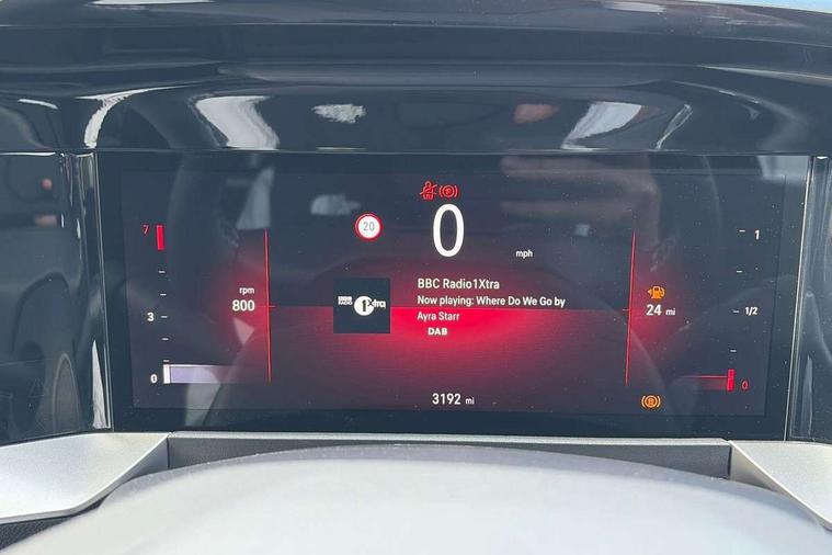 10" digital instrument cluster, Active drive assist, Adaptive cruise control, Digital instrumentation with digital speedometer, rev counter, fuel and water temperature gauge, Driver attention alert, Driver drowsiness alert system, Driver information display with multi function trip computer, audio info, digital clock and outside air temperature with ice warning function, Front and rear parking distance sensors, Lane keep assist system (LAS) with Lane departure warning system (LDWS), Lights on audible warning, Panoramic rear view camera, Power assisted speed sensitive steering, RDS with traffic programme, Side blind spot alert and flank guard, Speech recognition, Start/stop system, Vauxhall connect with e-Call, WiFi connectivity, Wireless phone projection with Apple CarPlay and Android Auto, Sports chassis, 2 rear USB connection, 6 speakers, AM/FM stereo radio with 36 station presets, DAB Digital radio, Front USB connection, Mobile phone portal - bluetooth connect, vehicle microphone, handsfree calls, SMS read out and reply, phone book access, Multimedia pure panel navigation system with 10" colour touchscreen and 15W wireless charger, Steering wheel mounted controls, Adaptive brake lights, Automatic headlamp levelling, Automatic lighting control with tunnel detection, Black DLO, Black door mirror housings, Black Griffin logo and vizor frame, Black lettering and emblems, Black upper window moulding, Body colour door handles, Body colour front and rear bumpers, Body colour skid plates, Dark tinted rear side windows, Electrically adjustable and heated door mirrors, Electrically foldable door mirrors, Electrically operated front and rear windows with safety auto reverse and one touch up/down facility, Electrochromatic frameless auto dimming rear view mirror, Hazard warning lights, Heated rear window+rear wash/wipe, High gloss black front and rear bumper inserts, High gloss black painted claddings, lower grille and front lateral inserts, High gloss black painted lateral moulding, Integrated black tailgate spoiler, IntelliLux matrix headlights with advanced forward lightning and anti glare beam, LED 3rd brake light, LED daytime running lights, LED side repeat indicators, Rain sensitive windscreen wipers, Rear side wing doors, Reversing light, Shark fin antenna, Solar heat absorbing windscreen and windows, Windscreen and side window demist vents, 12V Accessory socket, 3 seat bench in 2nd row, 4 speed fan with illuminated controls, 4 way electrical driver lumbar adjustment, 6 way adjustable front passenger seat including height adjustment, 60/40 split folding rear seat, Air recirculation system, Ambient lighting, Black headliner, Cabin particulate filter - removes dust, airborne particles and pollen, Chrome effect interior door handles, Door pockets with two litre capacity, Driver and passenger heated seats, Driver and passenger sun visors with vanity mirror, Driver seat massage function, Electronic climate control (ECC), Four adjustable facia vents, Four load restraint lashing eyes, Front centre armrest with storage, Front driver and co-driver side articulated grab handles, Front head restraints, Front map reading lights, Front seat back storage pockets, Fully carpeted load area, Heated steering wheel, Interior courtesy light, Interior tailgate handle, Luggage compartment cover, Luggage compartment lighting, Moveable boot floor, Reach + rake adjustable steering column, Rear Reading Lamps, ReNewKnit fabric/leather upholstery, Single front passenger seat, Three height adjustable rear seat head restraints, Twin gas assisted tailgate struts, 2x Isofix child seat fitting on outer rear seats, 3x3 point rear seat belts, Anti-lock braking system (ABS), Child proof locks on rear doors, Cornering brake control, Deactivation switch for front passenger front and side impact airbags, Drag torque control, Driver and front passenger airbags, front seat side impact airbags, full size curtain airbags, Electronic brake force distribution, Electronic Stability Programme (ESP), Emergency brake assist, Enhanced automatic emergency braking with pedestrian and bicycle detection, Forward brake assist, Forward collision alert at all speed, Hill start assist, Inertia reel lap and diagonal seatbelts for all seats, Manual parking brake, Seatbelt unfastened audible warning and warning light, Straight line stability control, Traction control, Tyre pressure monitoring system, Electronically protected audio equipment, Engine deadlock immobiliser, Freewheeling door locks, Key left in ignition audible warning, Keyless entry and start, Locking wheel nuts, Remote control central locking, Remote control ultrasonic security alarm system, Visible vehicle identification number, Black facia with silver trim insert, Light grey trim inserts on front doors, Vegan door inserts, 18" Black diamond cut alloy wheels,