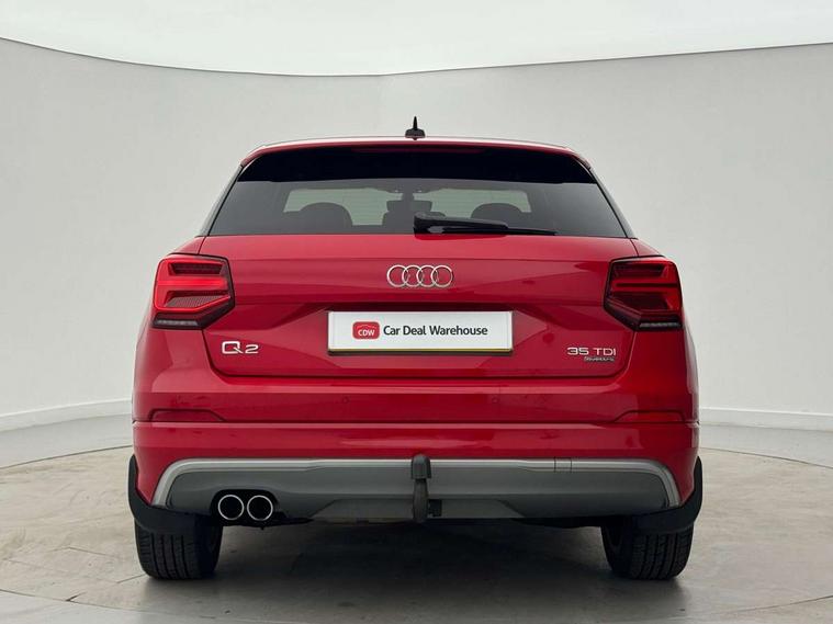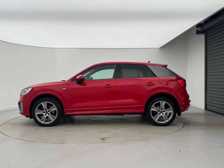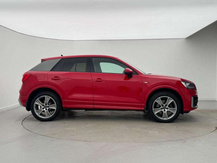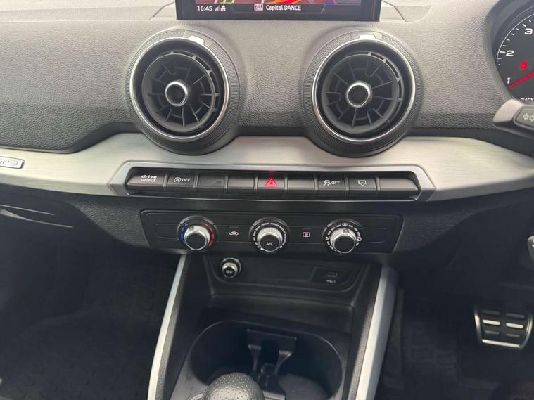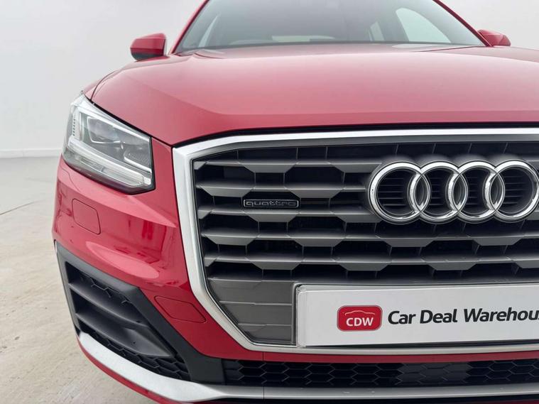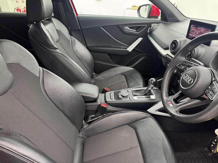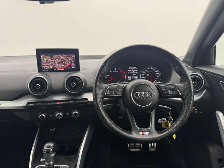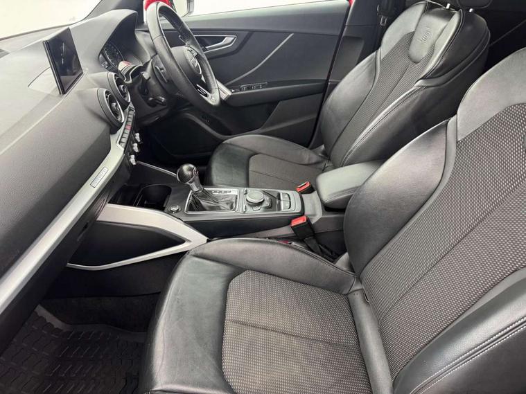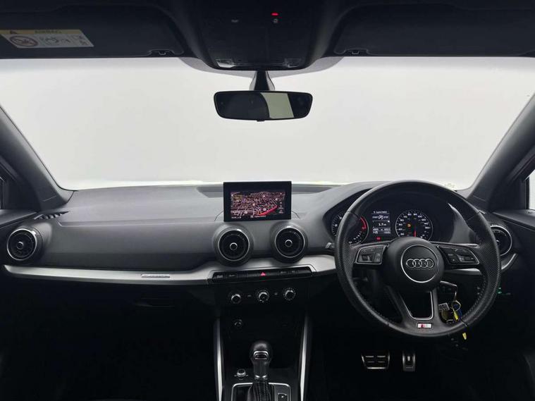 Audi drive select, Audi smartphone interface, Automatic start/stop system with recuperation, Bluetooth interface includes bluetooth audio streaming, Cruise control, MMI - Multi Media Interface control system, MMI SD card integrated nav with 3D map display, dynamic route guidance with TMC, MMI search, natural voice recognition and myAudi special destinations, Power operated tailgate, Progressive steering, Service interval indicator, Dynamic suspension, 2 x SDXC card reader, Audi music interface - apple iPod, apple iPhone, USB storage media, compatible MP3 players, 2 x USB charging points and 1 x Aux-in, CD Drive, DAB digital radio and AM/FM radio, MMI radio plus with 7" colour MMI screen and MMI controller, Black window trims, Bumper in full body colour paint finish, Chrome exhaust tailpipe, Electrically adjustable and heated door mirrors with integrated LED side indicators, Front and rear electric windows, Front underbody guard and rear diffuser trim in selenite silver, Front windscreen with grey tinted sunband, Headlight washers, Interior mirror, LED headlights with LED rear lights + dynamic rear indicators, LED indicator lights, Manual folding door mirrors, Rain and light sensors, Rear wiper, S Line badges on the front wings, S Line body styling - front and rear bumpers, side skirts, radiator grille, rear diffuser insert and front air intakes, 60/40 split folding rear seat bench, Black cloth headlining, Electronically operated child locks, Floor mats with contrast stitching, Front centre armrest, Front headrests, Front sport seats with S embossed logo, Height/reach adjust steering wheel, Illuminated door sill trims with S logo, ISOFIX child seat mounting for front passenger with airbag deactivation and outer rear seat including top tether attachment point for outer rear seats, Manual seat adjustment including seat height adjustment for front seats, Stainless steel pedals, Storage compartments - Glovebox, cupholder compartment in centre console, storage compartment in rear centre console, front and rear door pockets, Three rear headrests, Non smoking pack - Q2, 3x3 point rear seatbelts, 6 airbags - Front, curtain and front side airbags, Electromechanical parking brake, Electronic stabilisation control including ABS, ASR and EDL, Extended and proactive pedestrian protection, Hill hold assist, Multi collision brake assist, Pre-sense front with pedestrian recognition, Seatbelt monitoring, Tyre pressure warning light, Warning triangle and first aid kit, Anti theft alarm, Anti theft wheel bolts, Central locking system with remote control key, Aluminium interior element,