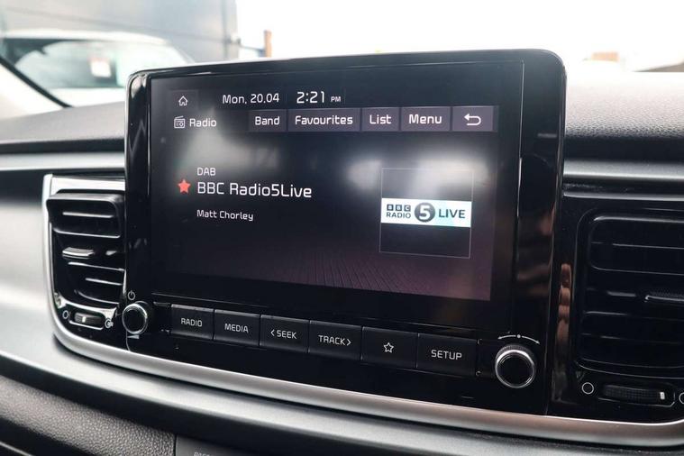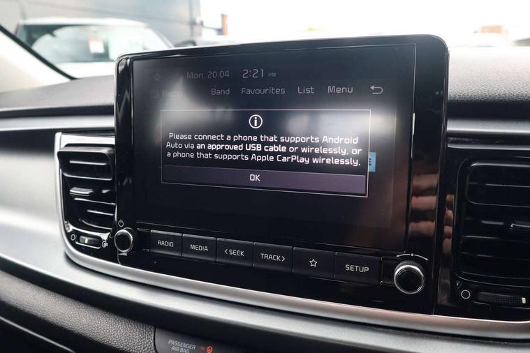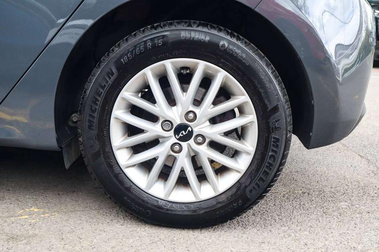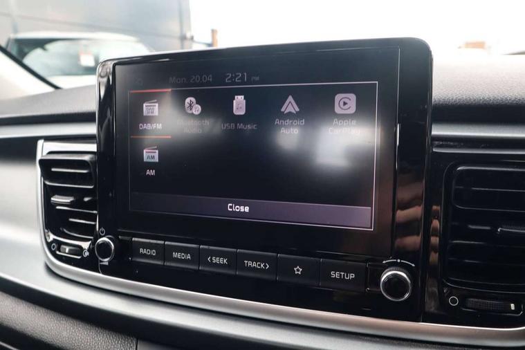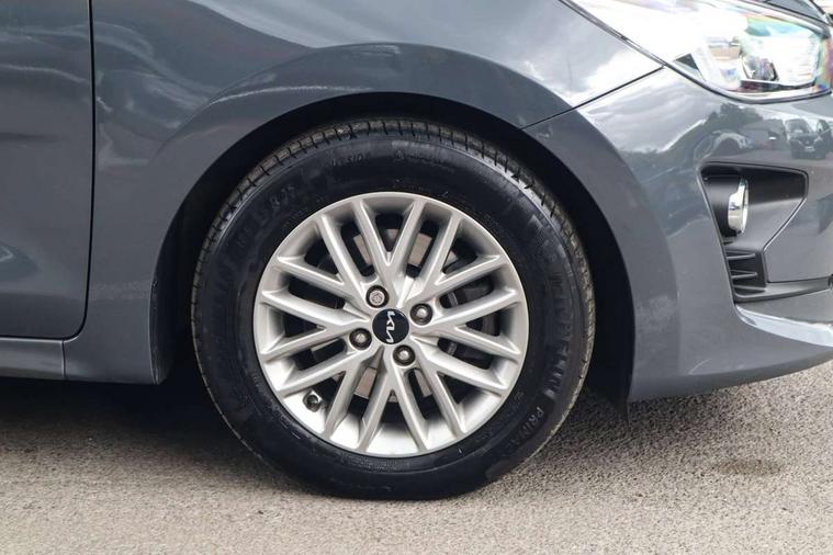 8" touch screen, Apple car play/Android Auto, Cruise control + speed limiter, Digital clock, Drive mode selector, Electric power steering, Emergency call service, Emergency stop signalling system, Gear selection indicator, Manual speed limit assist (MLSA), Outside temperature display, Rear parking sensor, Reversing camera system with dynamic guidelines (Integrated into centre fascia screen), Tachometer, Tailgate, Trip computer, Voice control system, Windscreen washer level indicator, Intelligent Stop and Go, 6 speakers, Bluetooth connectivity including audio streaming, DAB Digital radio, Front USB port for media connection, Rear USB port, Steering wheel mounted audio controls, 3rd brake light, Aeroblade-type front wipers, Automatic lighting control, Bi-function projection headlights, Black grille with chrome surround, Body colour bumpers, Body colour door handles, Body coloured door mirrors, Cornering light, Electric adjustable/heated/folding door mirrors, Front electric windows with driver's auto up/down function, Headlamp levelling, Heated rear window, LED daytime running lights, LED indicators in door mirrors, Projection front fog lights, Rain sensor, Rear electric windows, Rear fog lamp, Rear side wing doors, Rear wash/wipe, Speed variable front wipers, Tinted glass, Welcome home function, 3 passenger assist grips, 3 seat bench in 2nd row, 60/40 split/folding 2nd row of seats, Air conditioning, All round height adjustable headrests, Centre Console with Storage Box and Sliding Armrest, Dash illumination dimmer switch, Driver's seat height adjuster, Driver/passenger sunvisors and illuminated vanity mirrors, Front and rear door map pockets with bottle holder, Front passenger seatback pockets, Front USB charger port and 12V socket, ISOFIX top tethers and lower anchor points, Leather trimmed gearshift, Leather trimmed steering wheel, Load area light, Luggage area parcel shelf, Luggage hooks, Overhead console with sunglasses holder, Premium cloth upholstery, Silver interior door handles, Single front passenger seat, Tilt/telescopic adjustable steering wheel, Advanced driving assistance pack - Rio, 3-point front seatbelts, 3x3 point rear seatbelts, ABS with Electronic Brakeforce Distribution (EBD) and Brake Assist System (BAS), Automatic unlocking of doors in case of impact, Cornering brake control (CBC) and Straight line stability (SLS), Electronic stability control (ESC) and vehicle stability management (VSM), Front seatbelt pretensioners + load limiters, Height adjustable front seatbelt anchors, Hill start assist control (HAC), Passenger airbag deactivate switch, Rear child proof door locks, Seatbelt warning, Traction control, Twin curtain airbags, Twin front airbags, Twin front side airbags, Tyre pressure monitoring system, Anti theft alarm, Deadlocking system, Engine immobiliser, Locking wheel nuts, Remote central door and tailgate locking with fold-away key, Speed sensitive auto door locking, Visible vehicle identification number, Silver fascia trim, 15" Alloy wheels, Tyre mobility system,