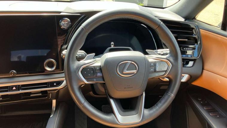 360 degree panoramic view monitor, Bluetooth mobile phone connectivity, BSM - Blind spot monitoring, Drive mode selector, Driver monitoring system, E-call, Head up Display, Intelligent clearance sonar, Lexus link connected services including over the air updates, MM21 Lexus link pro - 14" HD touchscreen with embedded and cloud based navigation, voice assistant, connected services, over the air and always online, Push button starter, Rear cross traffic alert, Speed sensitive electric power assisted steering, Ultrasonic parking sensors, Wireless Apple CarPlay and wired Android Auto, Wireless Smartphone charger, 3 pin to Type 2 10A charging cable, 6.6 kW onboard charger, E-Four Automatic transmission, Type 2 AC charging, Type 2 mode 3 32A charging cable, Vehicle Stability Control (VSC), 12 speakers audio, 5 USB ports (3 front USB C and 2 rear USB C), DAB Digital radio, 3 projector bi-beam LED headlight with auto high beam, Auto dimming rear view mirror, Auto headlights, Front and rear one touch power windows with voice command, Front and rear silver window frame mouldings, Glove and towel set, Headlight washers, Heated, auto-folding door mirrors, auto dimming with rerverse tilt, turn indicators and panoramic view sensors, L-shaped rear light bar, LED brake lights and rear lights with emergency brake signal, LED cornering headlights, LED daytime running lights, LED front and rear fog lights, LED Indicators, Power back door with kick sensor, Privacy UV glass, rear doors and tailgate, Rain sensor windscreen wipers, Rear side wing doors, Rear wash/wipe, Roof rails, Variable front intermittent wipers, 12V accessory port centre console and luggage compartment, 2 cup holders in centre console, 2 way electric lumbar support for driver and front passenger, 2 x Sunvisors with vanity mirror and lamp, 3 rear headrests, 3 seat bench in 2nd row, 40:20:40 split folding rear seats, 64 colour LED ambient interior illumination with 14 pre-set themed colour tones, 8 way electrically adjustable front seats, Charge cable bag, Driver seat memory function, Easy access driver seat, Easy access steering wheel, Front aluminium scuff plates, Front headrests, Front tray in front of centre console, Glovebox, Heated and ventilated front seats, Heated steering wheel, Leather steering wheel, Lever type shft control, Manually adjustable rear seats, Power adjustable steering wheel, Rear resin scuff plates, Single front passenger seat, Smooth leather upholstery, Textile carpet mats, Three zone climate control air conditioning system, Two way opening centre armrest with storage, 2 x Isofix child rear seat restraints, 3 point ELR front and rear seatbelts with pretensioners, ABS, Curtain shield airbags (front and rear), Driver and front passenger 2 stage airbag, Driver/front passenger side airbags, Drivers knee airbag, E-Latch with safe exit assist, EBD + Brake Assist, Electronic parking brake, Electronically controlled braking, Extended lexus safety system+ 3 - lane change assist, front cross traffic assist, Front and rear left/right force limiters and tension reducers, Front and rear left/right seatbelt reminders, Front centre airbag, Hill assist control, Lexus safety system+ 3 - dynamic radar cruise control, pre collision system day and night, lane tracing assist, road sign, Manual child lock in rear doors, Passenger airbag cut-off device, Traction control, Tyre pressure warning, 2 x remote key fobs, Customisable auto door lock, Locking wheel nuts, Motion sensor key, Smart keyless entry, Thatcham category 1 alarm + immobiliser, VIN etching, Black Inlay, 21" Alloy wheels,