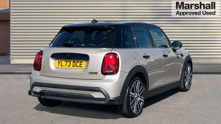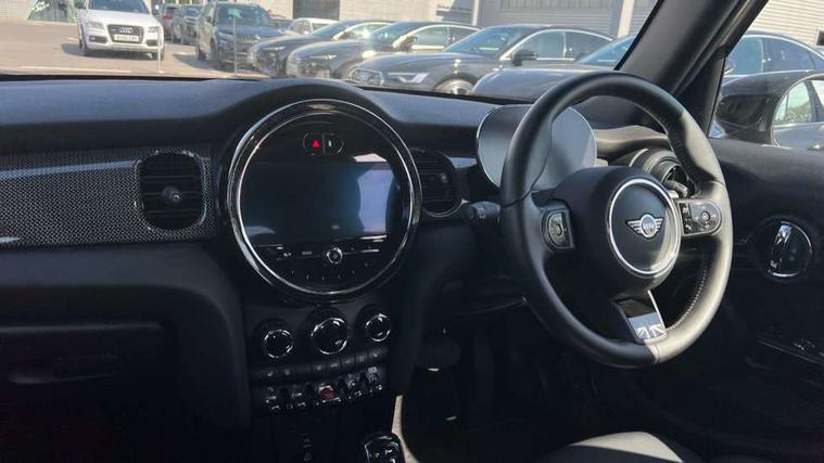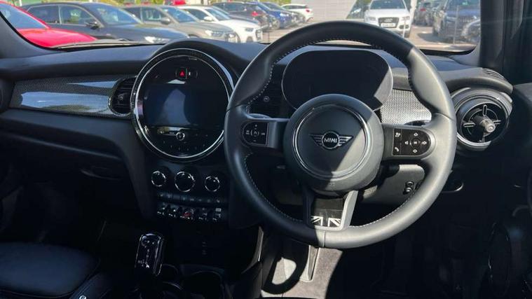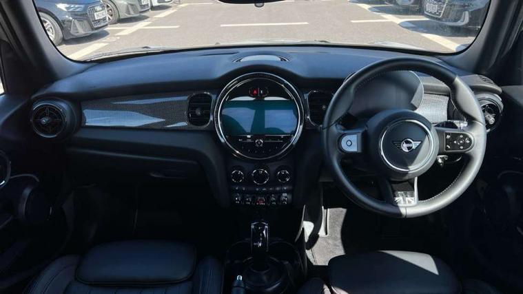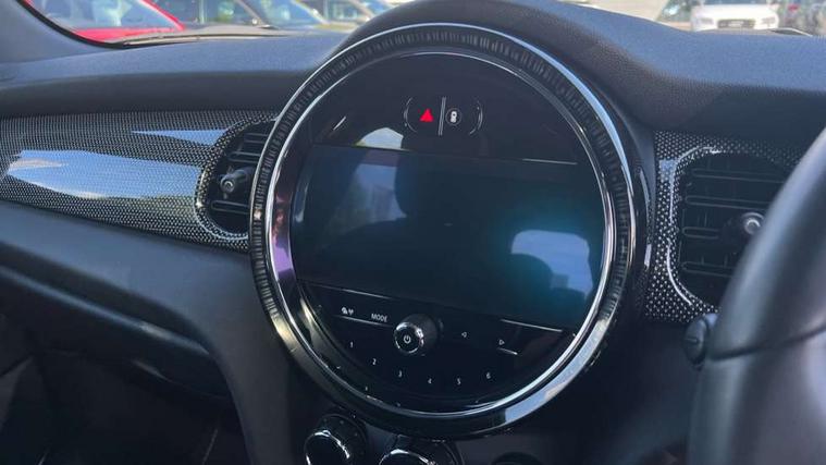 Apple CarPlay, Automatic start/stop function with brake energy recuperation, Compatible mobile phone bluetooth with audio streaming, Electro-mechanical speed dependant steering assistance, Flexible car sharing preparation, MINI Driving Modes - centre toggle switch to control driving setting (sport, mid and green), Mini E-call, MINI TeleServices, On board computer, Rear park distance control, Service interval indicator, Double Vanos system, Fully variable valve control, Gear change indicator display, High precision injection, Performance Control, Steptronic transmission with double clutch, 8.8" touchscreen with LED ring, FM tuner and DAB digital radio, 3rd brake light, Automatic headlight activation switch, Body colour fuel filler cap, Chrome line exterior - radiator grille bars, tailgate handle, lower front grille grating and rear central fog-light, Dynamic brake lights, Electric front+rear windows, Heated rear window, Heated windscreen washer jets, Metal door sill strips with MINI imprint, Model logo Cooper on right of tailgate, Rain sensor window wipers, Rear fog lights, Rear LED lights with union jack design, Rear side wing doors, Rear window wiper, Side scuttle panel with integrated indicator, Sun/heat protection glass, White indicator lenses, 12V Accessory socket in centre console, 3 seat bench in 2nd row, 4 lashing eyes in luggage compartment, 60/40 split folding rear seat, Anthracite headliner including grab handles and clothes hooks, Carbon black colour line - Knee roll and door armrest, Chrome interior highlights, Chrome line interior - air vents, gear lever base, door handles and speakers in doors, Cupholders, Front and rear head restraints, Front and rear isofix with front passenger airbag deactivation, Front and rear velour floor mats, Glove compartment, Height and length steering column adjustment, Interior lighting with 12 different colours across the dashboard, underneath door bezel with illuminated laser-engraved design on central display, Leatherette gearshift lever and handbrake gaiters, LED reading lights, vanity mirror lights, front foot well light and spotlight on front seats, Mechanical seat adjustment - forward/back & backrest for front seats and driver seat height adjust, MINI yours badge on exterior pillar, Multifunction steering wheel, Single front passenger seat, Storage compartments in doors, Sunvisors with vanity mirrors, Walknappa leather steering wheel with grey seam and MINI Yours badge on Piano Black lower steering wheel spoke, 3 point seatbelts on all five seats, 6 Airbags - front, side, head and seat belt tensioners, Anti-lock braking system (ABS), Child locks on rear doors, DSC - Dynamic Stability Control, Front and rear disc brakes, Hill start assist, Single tone fanfare horn, Tyre pressure monitoring system, Alarm system with tilt sensor, monitoring doors, bonnet interior and tailgate, Electronic vehicle immobiliser, Start/stop toggle with keyless go, Tool kit,