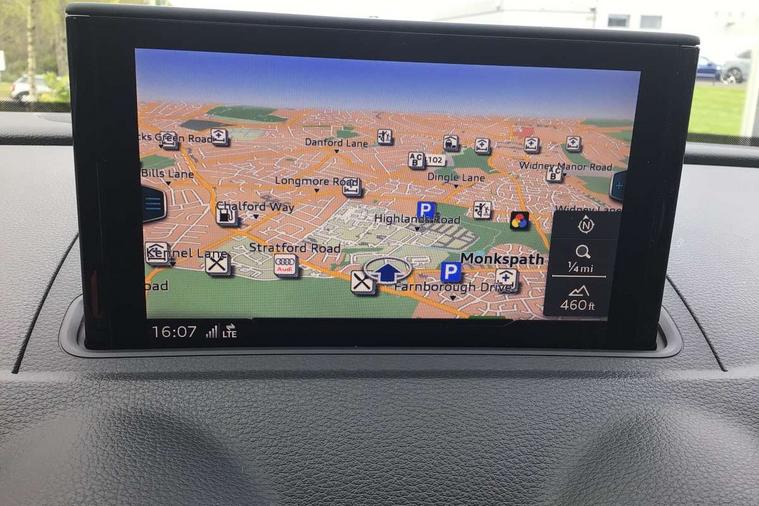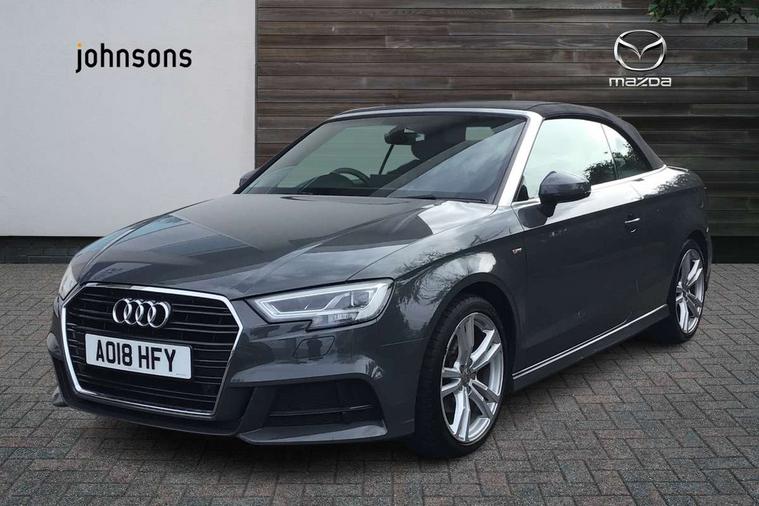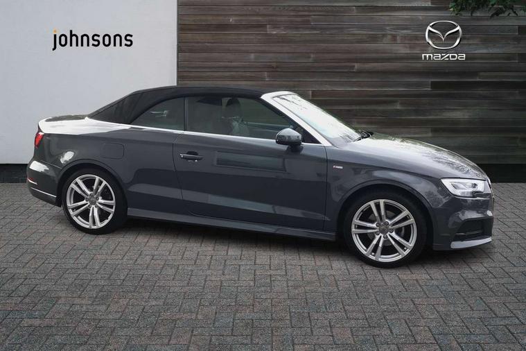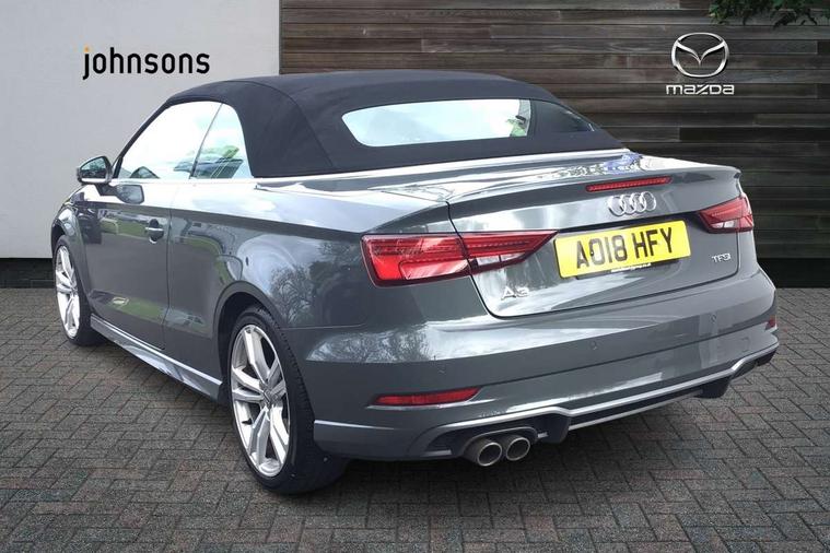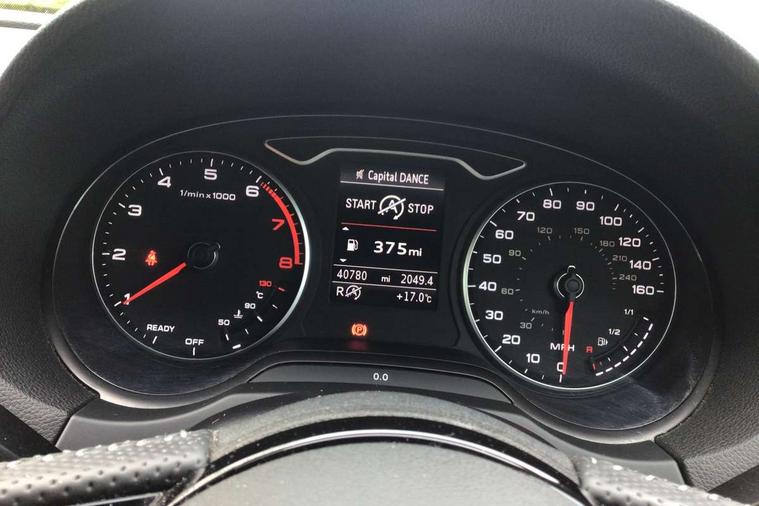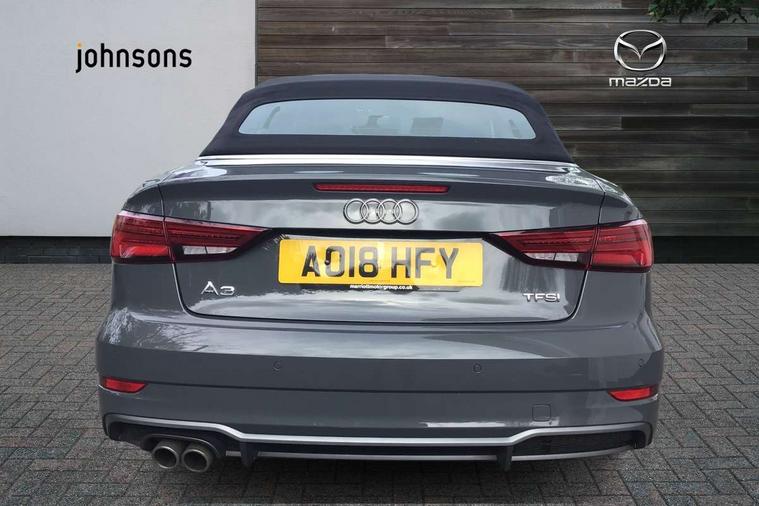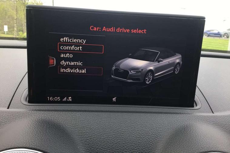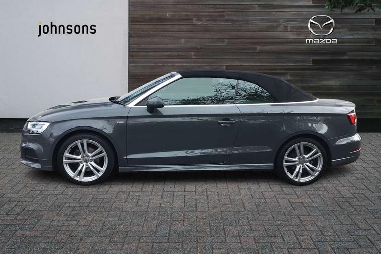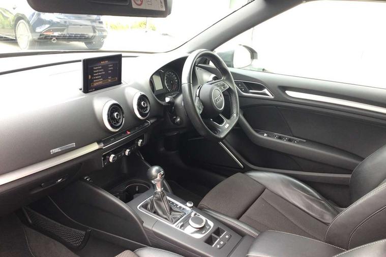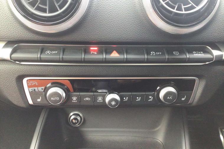 Audi drive select, Audi smartphone interface, Automatic start/stop system, Bluetooth interface, Colour driver's information system display, Electro-mechanical PAS, SD card based MMI navigation, Service interval indicator, 2 USB ports, Audi music interface, CD player, DAB Digital radio, MMI radio plus with 7" colour MMI screen and MMI controller, Aluminium side window trim, Auto dimming rear view mirror with light and rain sensors, Automatic lights and wipers, Body colour bumpers, Body colour door mirrors with integral indicators, Chrome exhaust tailpipes, Dark chrome grille, Electric operated/heated door mirrors, Front and rear electric windows, Fully automatic acoustic hood, Heated front windscreen, Heated rear window, Heated windscreen washer jets, LED daytime running lights, Roof spoiler, S Line body styling, 2 height adjustable rear headrests, 3 spoke flat bottom multi-function leather steering wheel including paddle shift, 4 lashing points to secure luggage, 50/50 split folding rear seat, Adjustable front armrest, Driver/passenger sunvisors, Dual zone electronic climate control, Front/rear floor mats, Height adjustable front seats, Height/reach adjustable steering column, Illuminated glovebox, ISOFIX child seat preparation+airbag deactivation, Jack and tool kit, Perforated leather gearknob, Stainless steel pedals, Storage compartment in centre console, Storage compartments in doors, LED interior light pack - A3/RS3, Light and rain sensor pack - A3 Cabriolet, Non smoking pack - A3, Storage pack - A3 Cabriolet/Saloon, 3 point seatbelts on all seats, ABS/EBD, Active bonnet, Active front headrests, ASR, Automatic roll over protection, Driver and passenger side airbags, Driver/Front Passenger airbags, Drivers knee airbag, EDL, Electromechanical parking brake, ESC - Electronic Stability Control + traction control, Front passenger airbag deactivation, Seatbelt warning, Tyre pressure monitor, Warning triangle and first aid kit, Anti theft alarm, Anti-theft wheel bolts, Immobiliser, Remote control central locking, Aluminium air vent surrounds, Aluminium trim elements, Matt brushed aluminium inlays, Space saver spare wheel,