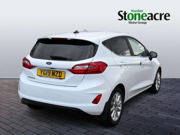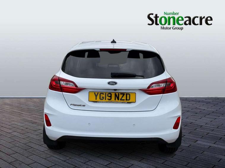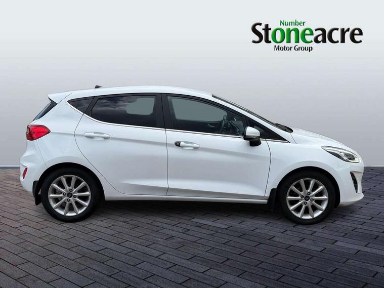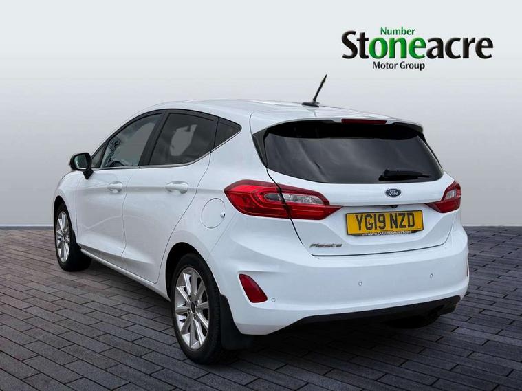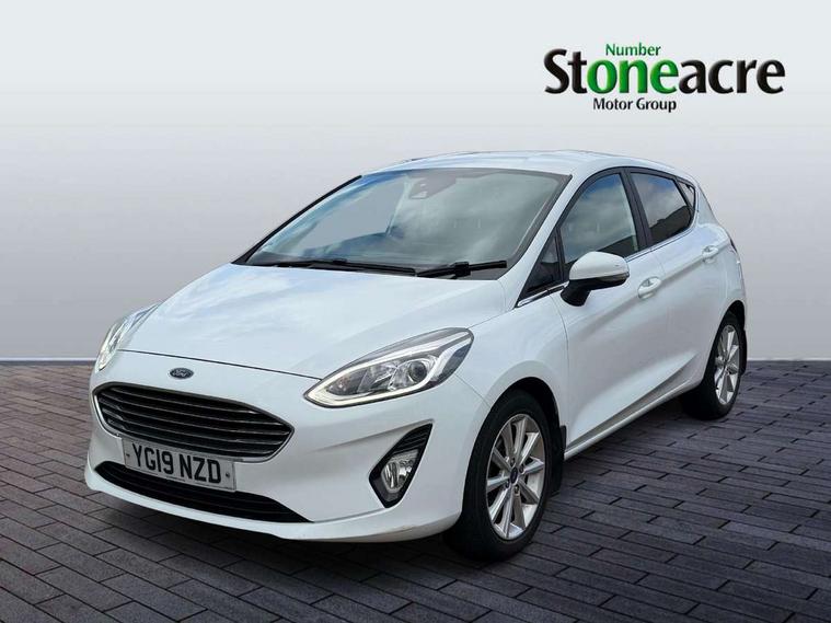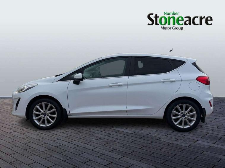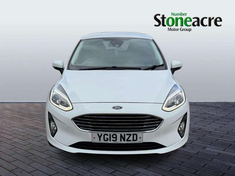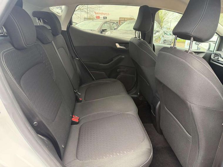 Bluetooth system, Electric power steering, Ford easy fuel, Trip computer, 2 USB ports, Auxiliary input socket, DAB Digital radio, Steering wheel mounted controls, Auto dimming rear view mirror, Automatic headlights, Body colour bumpers, Body colour door handles, Body colour electric adjustable heated door mirrors with integral indicators, Body colour rear spoiler, Chrome beltline trim, Chrome lower window surround, Cornering front fog lights, Electric front windows/one touch facility, LED Night signature to rear lights, LED rear lights, Power foldable door mirrors with puddle lights, Quickclear heated windscreen, Rain sensing wipers and auto dimming rear view mirror, Rear privacy glass, Rear wiper, Tinted glass, Upper front grille chrome surround, 12V Accessory socket in centre console, 3 spoke leather trimmed steering wheel with audio control, 60/40 split folding rear seat, Adjustable head restraints, Ambient lighting, Boot carpet, Centre console with armrest and illuminated cupholders, Chrome inner door handles, Cloth upholstery, EATC - Electronic Auto Temperature control, Footwell illumination, Front and rear velour floor mats, Front map reading lights, Front seat and rear pockets, Height adjustable driver's seat, Illuminated glovebox, Leather gear knob, Leather trimmed handbrake handle, Load area light, Luxury woven headliner, Overhead console with sunglasses holder, Pollen filter, Rake/reach adjustable steering wheel, Rear centre head restraint, Driver assistance pack - Fiesta/Titanium/Titanium X/Active B+O/Active X/ST-Line X, NCAP Pack - Fiesta, 3 point seatbelts on all rear seats, ABS+EBA, Curtain airbags, Driver and passenger airbags, Drivers knee airbag, Electronic stability control with hill start assist, Front passenger airbag deactivation, Front side airbags, Seatbelt warning, Tyre pressure monitoring system, MyKey system, Remote central locking & engine immobiliser, Thatcham Cat.1 alarm,