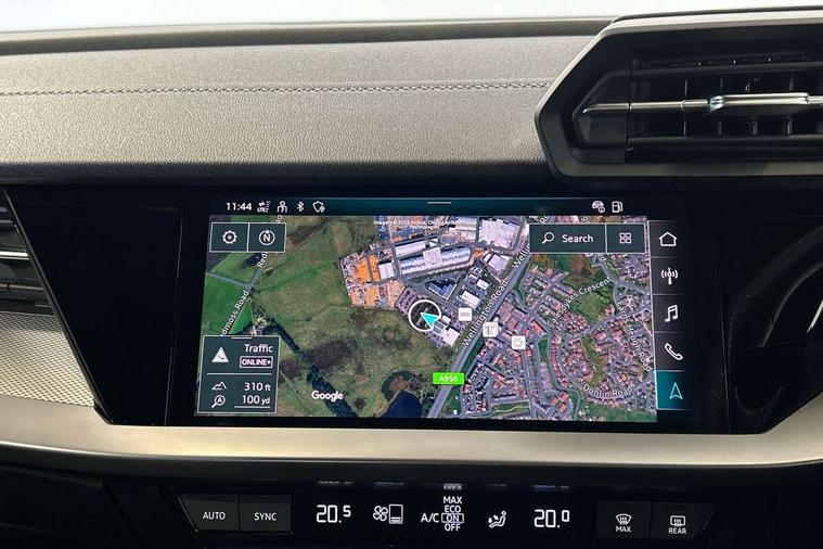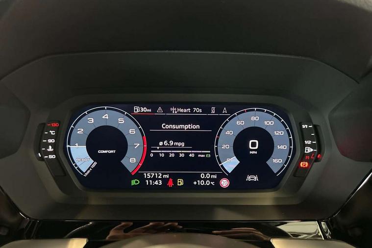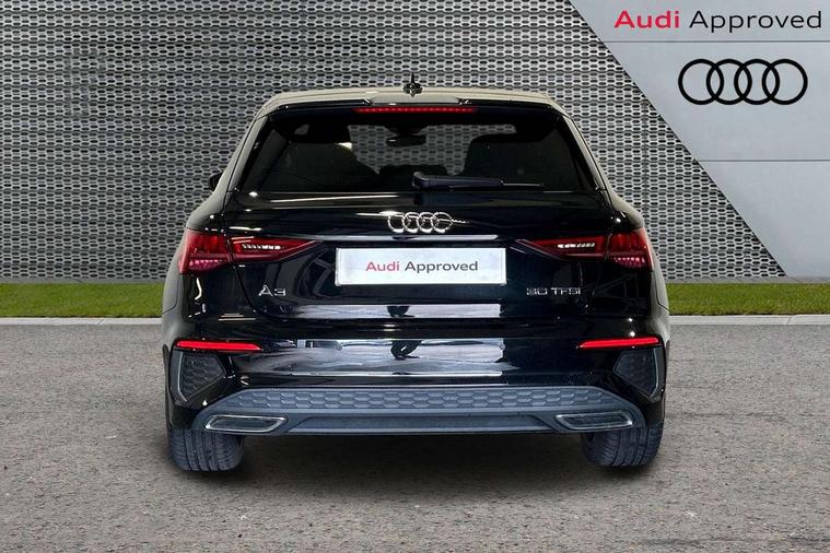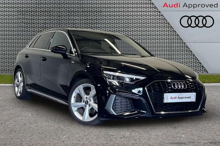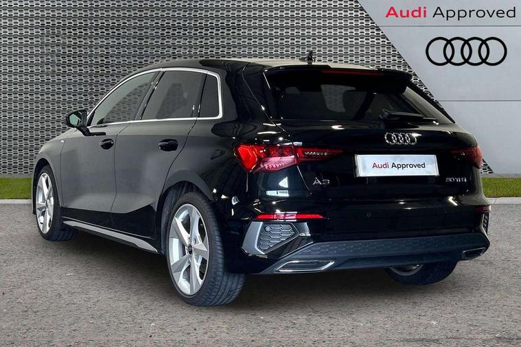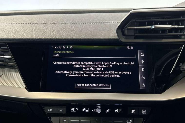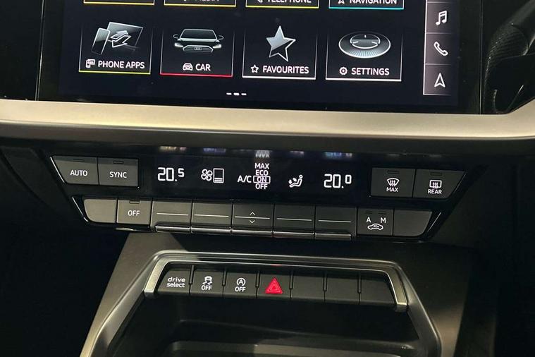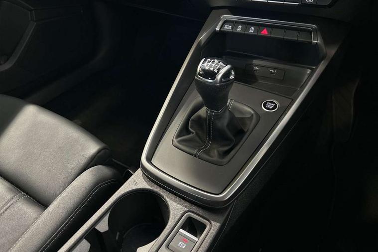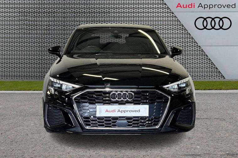 Audi drive select (Auto, Comfort, Dynamic and Individual), Audi smartphone interface, Audi Virtual Cockpit - 10.25" digital and colour instrument cluster, Automatic start/stop system with recuperation, Bluetooth interface, Camera based traffic sign recognition, Collision avoidance assistant, Cruise control, e-Call (emergency call), Electromechanical power speed sensitive steering, Lane departure warning system, MMI Navigation Plus with high resolution 10.1" colour touch screen display, Rear parking sensors, Service indicator, Trip computer, Voice control system with natural language interaction, Sports suspension, 2xUSB-C connection with data and charging functions, 6 passive loudspeakers, DAB Digital radio, 3rd brake light, Acoustic glass windscreen, Aluminium window trim, Auto dimming frameless rear view mirror, Body colour exterior mirrors, Electrically adjustable/heated/folding/auto dimming door mirrors with integrated LED indications + kerb view function for passenger side, Front electric windows, Illuminated door sills with aluminium inserts at the front with S logo, LED daytime running lights, LED headlights with LED rear lights and dynamic rear indicators, Light and rain sensors, Privacy glass - dark tinted rear window, rear door and side windows, Rear electric windows, Rear side air outlets in grained matt black, Rear side wing doors, Rear wiper, S line bumpers, S roof spoiler, 12V socket and storage compartment in front centre console, 3 seat bench in 2nd row, 3 spoke leather multifunction steering wheel, 4 way electrically adjustable lumbar support for driver and front passenger, 60/40 split folding rear seat bench, Black cloth headlining, Dual zone electronic climate control, Front and rear centre armrest in artificial leather, Front and rear headrests, Front/rear floor mats, Height and reach adjustable steering wheel, Interior lighting - glove compartment light and right hand side, Luggage compartment floor covering, Manual boot compartment lid, Manually adjustable front seats, Seat side bolsters, Single front passenger seat, Stainless steel pedals and front footrest in black, Twin leather upholstery with front sports seats S embossed logo, Aluminium interior elements pack - A3 Sportback, LED interior lighting pack - A3 Sportback, S line styling pack - A3 Sportback, 3x3 point rear seat belts, Driver and front passenger airbag with passenger airbag deactivation, Electronic Stabilisation Control (ESC) including ABS, ASR and EDL, First aid kit with warning triangle and 2 safety vests, Front side airbags with head airbags and interaction airbag, Pre-sense front with pedestrian and cyclist detection, Seatbelt monitoring, Tyre pressure loss indicator, Anti theft alarm, Anti-theft wheel bolts, Electronically operated child locks, Immobiliser, Remote control central locking, Dark spectrum aluminium inlays, accent surfaces in the dashboard and centre console in platinum grey silk effect paint finish,