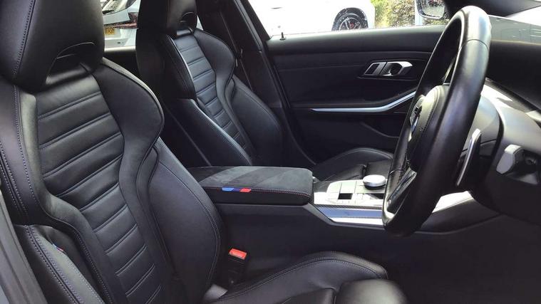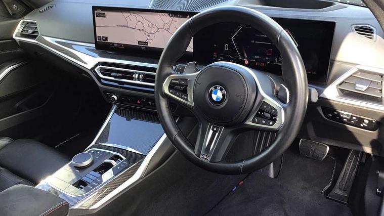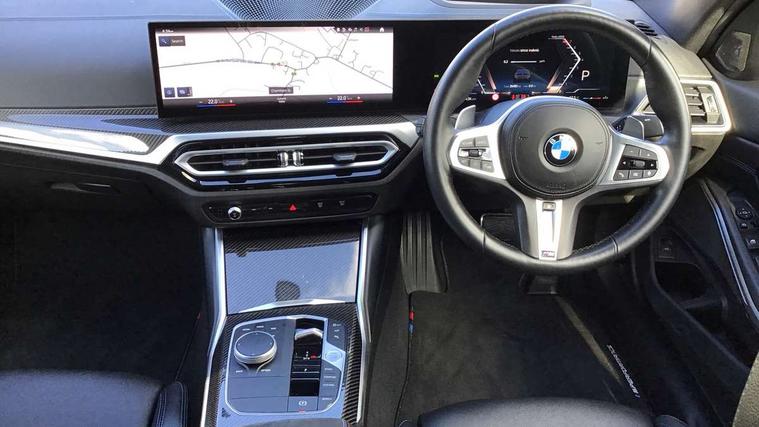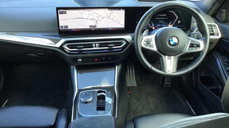 Active guard plus, Attentiveness assist, Automatic Start/stop button, BMW iDrive, BMW Teleservices, Condition based service, ConnectedDrive Services, Driving experience switch, Oil sensor for level and grade, Preparation for driver assistance, Shifting point display, Variable sport steering, 48V Mild hybrid technology, Double joint spring strut front axle, Electronic differential lock control (EDLC), Fuel tank breather system, M Sport differential, Sport automatic transmission with steering-wheel mounted gearshift paddles and launch control, DAB tuner, 3rd brake light, Acoustic glazing, Adaptive LED Headlights, Automated High beam assist, Automatic headlight beam throw control with load dependent regulating reaction, dynamic compensation of braking dive and acceleration squat, BMW emblem, engine compartment lid and tailgate, BMW individual lights shadow line, BMW M Individual high gloss shadow line with extended contents, Body colour roof fin, Door sill strips, Electric windows - front and rear, with open/close fingertip control, anti-trap facility and comfort closing, Follow me home headlight function, Front and rear bumper system with replaceable deformation elements, Front apron plastic in body colour, Fuel filler flap - right rear in body colour, Heated washer jets, High gloss shadow line exterior trim, Illuminated bow type door handles in body colour drivers side with door lock, Interior rear view electrochromatic mirror with automatic anti dazzle function, LED daytime running lights, LED rear lights, LED turn indicator, Licence plate panel integrated into front bumper and tailgate, M Sport spoiler, Matt black B-pillar finsher, Matt black window recess cover, Model designation on right side of tailgate, One piece front bumper cover including towing eye cover in body colour, Rain sensor with automatic headlight activation, Rear boot, Rear side wing doors, Reversing lights, Side frame decorative moulding black matt, Sun protection glass, Visible exhaust tailpipe finisher, Welcome lights in interior and door handle area, 12V power socket in front storage compartment, 2 front cupholder in centre console with clamping elements and matt black inlay, 3 seat bench in 2nd row, 3 zone automatic air conditioning, 40:20:40 split folding rear seat with loading system, Ambient inside door handle light, Ambient light design projected onto the left and right entering and exiting area, Ambient lighting front and rear with 9 selectable colours, Ambient storage compartment lighting in the centre console, Anthracite headlining, Armrest integrated in front and rear door trim + front centre console armrest, BMW ID, Contour lighting in instrument panel and door trim panel, Cruise control operation in steering wheel, Driver backrest width adjustment, Folding rear centre armrest with 2 cupholders, Front and rear ambient footwell lighting, Front and rear door exit lighting (left / right), Front and rear headrests, Front and rear reading lights, Front and rear velour floor mats, Heated front seats, Height adjustable mechanically and infinitely variable steering column, Illuminated armrest storage compartment, Illuminated glove compartment, Illuminated luggage compartment, Lashing eyelets in luggage compartment, M Sport multifunction leather steering wheel, Make-up mirror lights, Single front passenger seat, Standard seat for driver and passenger with manual adjustment, Sunvisors with vanity mirrors and ticket pocket, Toolkit located in luggage compartment, Vernasca leather upholstery, Connected pack professional - 3 Series Saloon/Touring, Interior and exterior mirror pack - 3 Series Touring/Saloon, M Aerodynamics package - 3 Series Saloon/Touring, M sport exterior styling pack - 3 Series Saloon/Touring, Storage compartment pack - 3 Series Saloon/Touring, 3x3 point rear seatbelts, BMW emergency call, Child locks on rear doors, Crash sensor activating of airbags, Unlocking doors, hazard warning lights, interior light, safety battery terminal, Driver and front passenger with seat occupancy detection for driver's and passenger side, Driver and passenger side airbags, body protection at side and airbags deploy from seat backrests, Dynamic brake control, Dynamic stability control + (DSC+) - Anti-lock Braking System (ABS) with brake assist and cornering brake control + Automatic Stability Control (ASC), Dynamic Traction Control - DTC, Electric parking brake including automatic hold function and automatic release of the parking brake when driving off, Head airbags in 1st and 2nd row, head protection at side, curtain airbags open from headliner above 1st and 2nd row, M Sport brakes in red calipers, M sport seatbelt, Plastic fuel tank, Side impact protection, Tyre pressure monitoring with three level warning strategy, Ventilated front and rear disc brakes, Warning triangle and first aid kit, Alarm system, Centre lock switch, Closing system with central locking, Electronic vehicle immobiliser, Sensatec instrument panel,