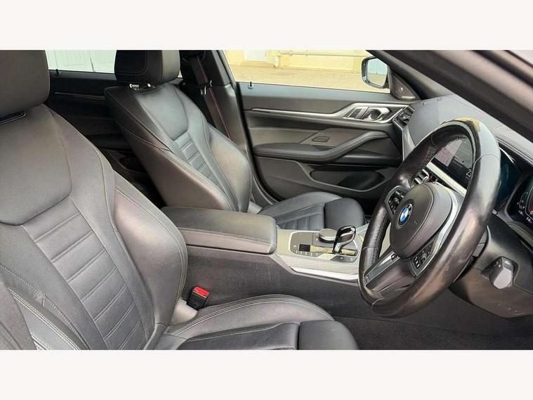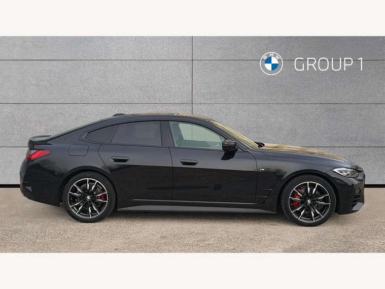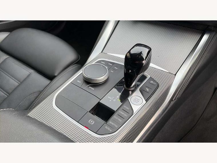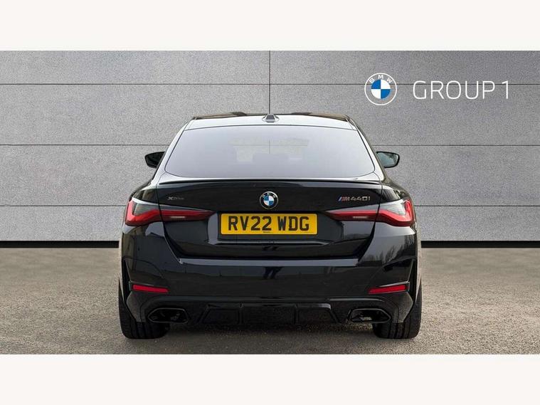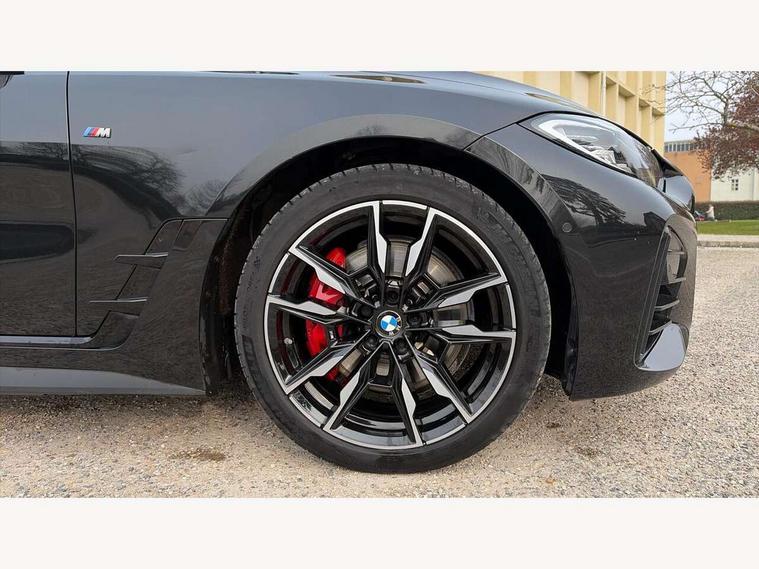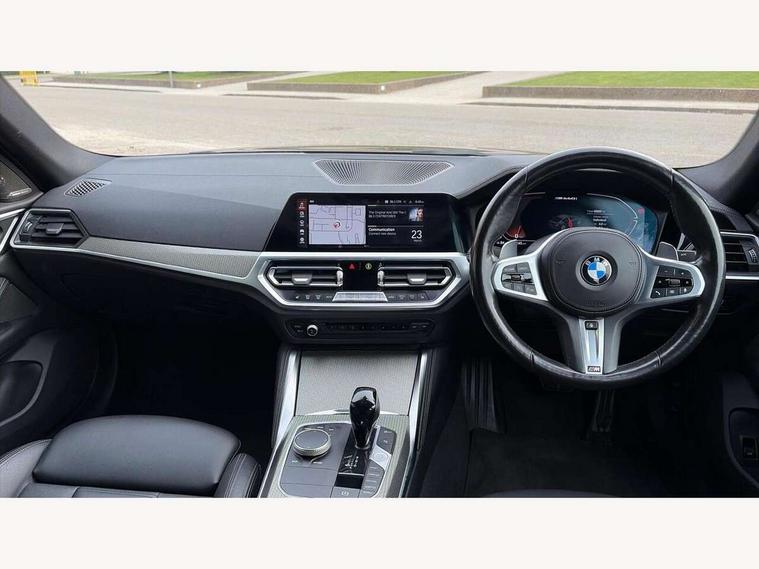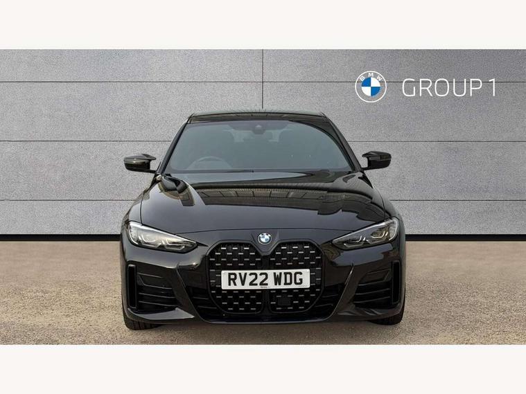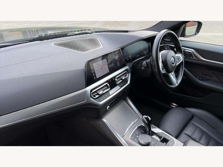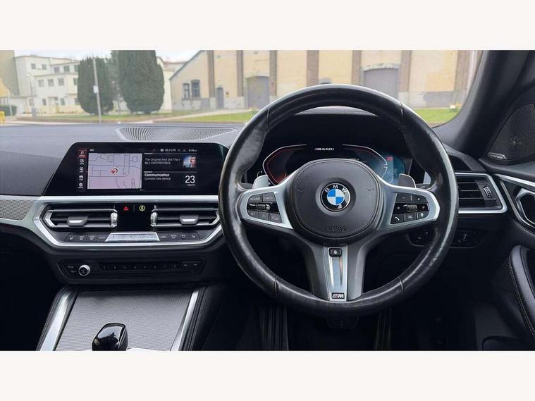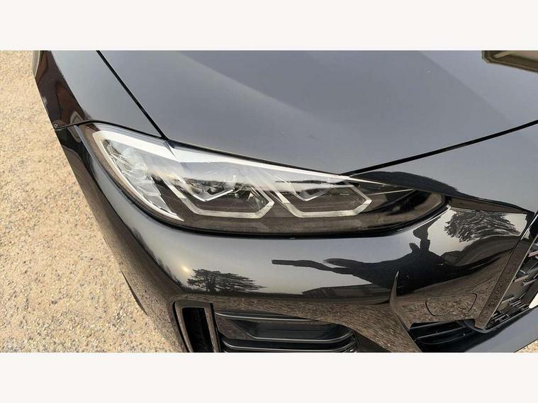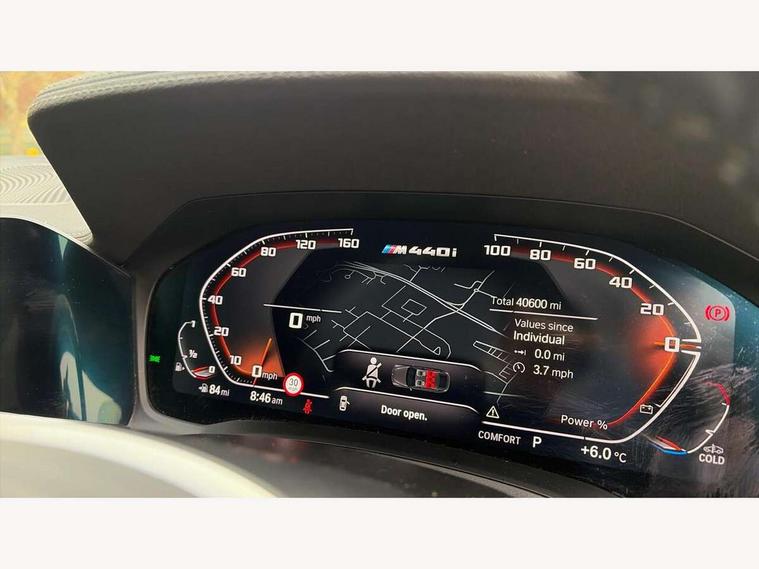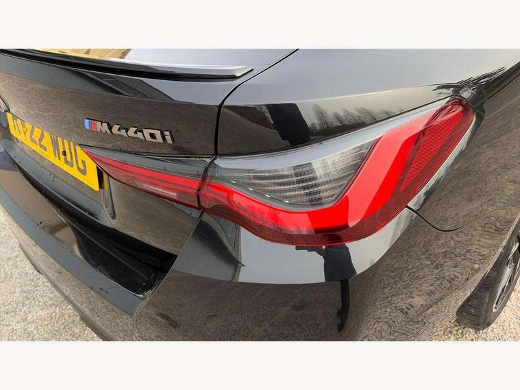 Active guard plus, Attentiveness assist, Auto start-stop, BMW ConnectedDrive online services, BMW iDrive controller on centre console, BMW Live Cockpit Professional Nav with 12.3" instrument display + 10.25" display, Intelligent Voice Assist, BMW OS 7, HDD, 2USB, 4G LTE connect, BMW service history, BMW Teleservices, Brake pad wear indicator in front and rear, Check Control warning system for monitoring of lights and door/luggage compartment open warning, Condition based service, Electric bootlid, Electric power steering with Servotronic steering optimised at all speed ranges, Gearshift time display in manual mode, Instrument cluster with speedometer with mph readout, tachometer, fuel gauge and oil temperature gauge, Integrated owners handbook, Oil sensor for level and grade, warning by check control system, On board computer - average speed, fuel consumption, outside temp display with acoustic warning, clock/date, service interval, odometer/trip meter, Optimum shift indicator, Tailgate, Variable sport steering, 48V Mild hybrid technology, 8 speed automatic steptronic transmission with gearshift paddles, Adaptive M suspension, Driving experience modes - Comfort, ECO PRO, Sport and Sport+ mode, Electronic differential lock control (EDLC), Low centre of gravity, M Sport differential, Petrol Particulate Filter, Stroke dependent dampers, xDrive system permanent all-wheel drive variable torque distribution, DAB tuner, Electronic service booklet, Acoustic glazing, Automatic headlight beam throw control with load dependent regulating reaction, dynamic compensation of braking dive and acceleration squat, Automatic windscreen wipers and automatic headlight, Automatically dimming electrochromatic rear view mirror, BMW emblem on engine compartment lid and tailgate, Body colour fuel filler flap, Body colour roof fin, Brushed aluminium inserts in the front door sill finishers with BMW designation, Dynamic brake lights, Electric windows - front and rear, with open/close fingertip control, anti trap facility and comfort closing function all round, Exterior mirrors - electrically folding with anti-dazzle, Fading support, Front and rear bumper system, Front apron plastic in body colour, Green tinted heat protection glazing, Illuminated bow type door handles in body colour drivers side with door lock, Interior rear view electrochromatic mirror with automatic anti dazzle function, LED daytime running lights, Licence plate panel integrated into front bumper and tailgate, Lightweight engineering, M designation on front side panels, left and right, M rear boot spoiler, One piece front bumper cover including towing eye cover in body colour, Preparation for high beam assistant, Rear side wing doors, Rear wiper, Side frame decorative moulding black matt, Sun protection glass, Twin exhaust tailpipes x2, Two part LED tailights in L-shape with components in smoked glass, brake light, LED turn indicator and rear fog light, Visible VIN plate, Welcome lights in interior and door handle area, Widened track and increased camber values for max transverse dynamics, agility and steering precision, Window recess cover black high gloss, Windscreen wipers with integrated heated washing jets, xDrive designation on left tailgate, 12V power socket in front centre console, 2 front cupholder in centre console with clamping elements and matt black inlay, 3 rear headrests, 3 seat bench in 2nd row, 3 spoke M sport leather multifunction steering wheel, 3 zone automatic air conditioning, 4 pieces lashing eyelets in luggage compartment, 40:20:40 split folding rear seat and rear centre armrest with two cupholders, Ambient lighting with welcome carpet light, Anthracite headlining, Armrest integrated in front and rear door trim + front centre console armrest, Four grab handles integrated in roof lining, Front and rear door exit lighting (left / right), Front and rear door pockets, Front and rear footwell lights, Front and rear reading lights, Front headrests, Heated driver and front passenger seats, Height adjustable mechanically and infinitely variable steering column, Illuminated armrest storage compartment, Illuminated glove compartment with separate small compartment, Luggage compartment light, Make-up mirror lights, Single front passenger seat, Storage compartment in rear centre console, Sunvisors with vanity mirrors and ticket pocket, Toolkit located in luggage compartment, Velour front floor mats, Connected professional package - 4 Series, M sport exterior styling pack - 4 Series M440i, 3 point seatbelts on all seats, Battery safety cut-off, BMW emergency call, Brake energy regeneration, Braking pre-tensioning, Child proof locking system in rear door, Child seat ISOFIX attachment for the two outer rear seats, Coasting in idle in ECO PRO mode, Cornering brake control (CBC), Crash sensor activating of airbags, Unlocking doors, hazard warning lights, interior light, safety battery terminal, Driver and front passenger side airbags, integrated in the door side seat backrest bolsters for all seat variants, Driver/Front Passenger airbags, Dry braking, Dynamic brake control, Dynamic stability control + (DSC+) - Anti-lock Braking System (ABS) with brake assist and cornering brake control + Automatic Stability Control (ASC), Dynamic Traction Control - DTC, Electric parking brake including automatic hold function and automatic release of the parking brake when driving off, Front and rear ventilated brake disc, Front passenger manual airbag deactivation, Head airbags for all 4 outer seats, Hill start assistant, M Sport seatbelts, Seat belt security check for driver and front passenger, Seat belt with belt stopper, pyrotechnic belt tensioners and belt force limiters, Side impact protection, Tyre pressure monitoring with three level warning strategy, Warning triangle and first aid kit, Alarm system (Thatcham 1) with remote control and electronic engine immobiliser, Central locking switch for all doors, fuel filler cap and luggage compartment, Rem