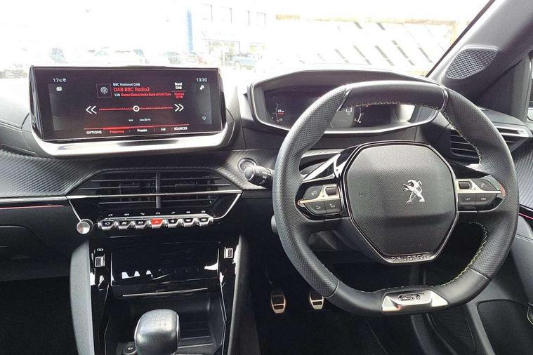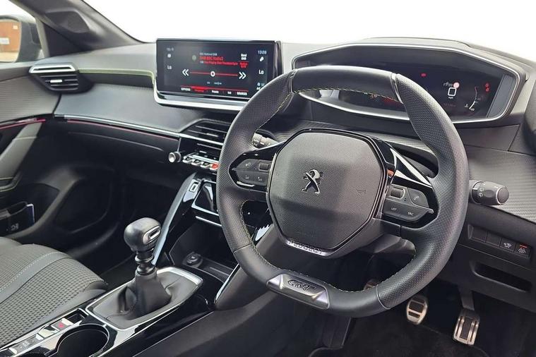 10" Capacitive colour touchscreen with connected 3D navigation, Bluetooth telephone facility, Driver attention warning, Exterior temperature indicator with ice warning, Lane keep assist, Mirror screen with mirror link, apple carplay and android auto, Multi function trip computer, PEUGEOT i-Cockpit with compact steering wheel, PEUGEOT i-Cockpit with configurable 3D headup instrument panel, PEUGEOT SOS and assistance, Push button start, Smart phone docking station, Speed limit recognition and recommendation, Start/stop system, Visio park assist 180 with colour reversing camera + front and rear parking sensor, 2 front USB socket with USB-C, 2x USB sockets in rear, 6 speakers radio with mp3 compatible, DAB Digital radio, Voice recognition for radio, navigation and telephony features, 2 X Rear number plate lights, Automatic hazard light activation upon heavy brake application, Automatic lights, Automatic windscreen wipers, Body coloured exterior door handles, Dark tinted rear side and tailgate windows, Diamond black rear spoiler (roof), Diamond Black roof, Electric front windows + one touch + anti-pinch, Electric rear windows with one touch/anti-pinch, Electrically adjustable, heated and power folding door mirrors, Follow me home headlights, Frameless electrochrome interior rear view mirror, Full LED headlights with smartbeam assist, Gloss black finish on B pillar, Gloss black rear cluster connecting strip, Gloss black wheel arch extensions, Gloss black window surround, GT model designation badging on C pillar, GT model designation badging on tailgate, Headlights left on audible warning, LED daytime running lights with 3 claw headlight with distinctive tooth design, LED side indicator lights integrated into door mirrors, LED third brake light, Model designation badges front and rear, Nera black door mirror shells, Peugeot scuff plates, Radiator grille - Dark chrome chequered and gloss black edge trim, Rear bumper with gloss black finish, Rear full LED 3D peugeot signature claw effect lights with daylight function, Rear lower bumper diffuser effect trim in gloss black, Rear reversing lights, Rear side wing doors, Rear windscreen wiper triggered automatically in reverse gear, Roof mounted aerial with fin design, Roof spoiler, Single chrome exhaust tailpipe, Tailgate with heated rear windscreen and wiper blade, Variable front intermittent wipers, 1/3 to 2/3 split folding rear seats, 12V socket, 3 seat bench in 2nd row, 8 Colour personalisable ambient lighting, Aluminium pedals and foot rest, Automatic air conditioning, Driver and front passenger seat manual adjustment in longitudinal and back rest angle, Driver and front passenger seat mechanical height adjustment, Driver and front passenger sport seats, Electric power steering with reach and rake adjustable steering column, Front and rear carpet mats in black with lime green stitch detail, Front centre armrest with storage compartment, Front LED interior light with 2 reading spotlights and rear interior light with timer, Gear shift indicator, High centre console with 2 cup holders, ISOFIX child seat mounting points on passenger seat, Lime green contrast stitching to armrest, front centre console, door panels and dashboard facia, Map pockets on the backs of the front seats, Mistral full grain perforated leather steering wheel with aikinite stitch detail and satin chrome 'GT' emblem, Piano keys gloss black plated toggle switches to access main functions of the vehicle, Piano keys gloss black plated toggle switches to access touchscreen functions, Rear centre headrest, Roof lining - Mistral black, Satin chrome gear lever with black stitching, Seatbelt unfastened on the move audible and visual alert for front and rear seats, Single front passenger seat, 3 rear 3 point seatbelts, ABS (Anti-lock Braking System) with EBD (Electronic Brakeforce Distribution) and EBA (Emergency Braking Assistance), Active safety brake with night function/cyclists/pedestrians, Adaptive driver and front passenger airbags with passenger airbag deactivation function, Child locking functionality on rear doors, Driver/front passenger side airbags, Electric parking brake, ESP with Hill Assist, Front and rear curtain airbags, Front and rear disc brakes, Front optimised safety headrests and 3 x rear retractable headrests with height adjustable, Front three point retractable seatbelts with force limiters, Tyre pressure sensor, Acoustic vehicle alert system (AVAS), Automatic door locking when moving off, Deadlock, Electronic code immobiliser, Remote central locking, Thatcham cat. 1 alarm with anti lift sensor, Carbon effect Dashboard, front and rear door panel finish, 17" Bronx two-tone alloy wheels, Space saver spare wheel,