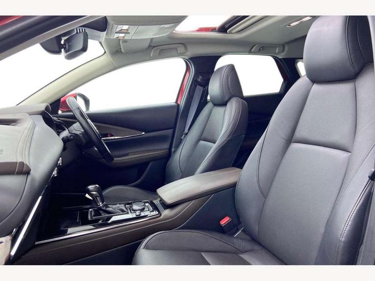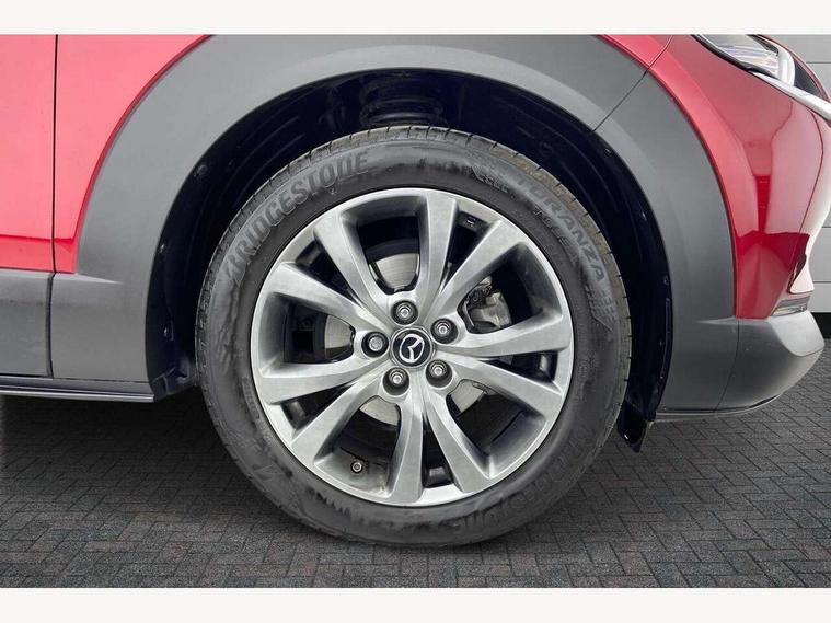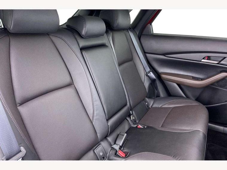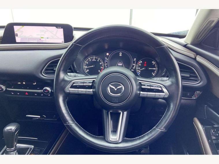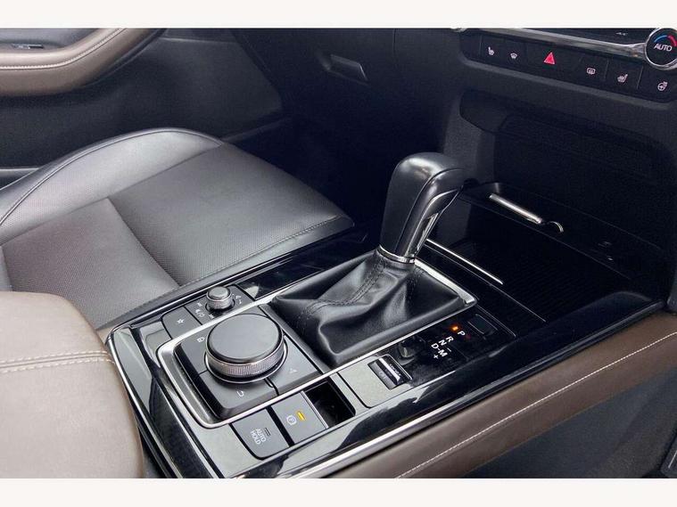 7" TFT Colour driver instrument panel display, 8.8" Colour centre touch screen display with Mazda Connect infotainment, Adaptive cruise control (Mazda radar cruise control) features stop and go, Apple car play/Android Auto, Blind spot monitoring with rear cross traffic alert, Drive mode selector, Driver attention alert system, E-call with GPS, Emergency stop signalling system, Engine start/stop button, Front and rear parking sensors, Integrated bluetooth, Integrated Mazda navigation system, Intelligent speed assist, Lane keep assist system (LAS) with Lane departure warning system (LDWS), Mazda connected services, PAS, Power lift gate, Reversing camera, Service indicator, Tailgate, Traffic sign recognition, Trip computer, Windscreen projected colour active driving display (HUD), i-stop, 2 USB charging ports in front inner central armrest, AM/FM and DAB radio, Bose surround sound system with 12 Speaker, Bose center point, Bass match and audio pilot technology, Multimedia Commander including separate volume dial, Steering wheel mounted audio/bluetooth controls, Adaptive LED Headlights, Auto dimming driver's door mirror, Auto headlight levelling, B-pillar and C-pillar garnishes in piano black finish, Body coloured, electrically adjustable, heated auto power folding door mirrors with integrated indicators, Chrome finish signature wing in front grille, Coming/leaving home lighting function, Door mirrors with adjustable memory and tilt-down function when reversing, Dual chrome exhaust, Dusk sensing headlights, Electric front/rear windows with one touch auto up/down, Frameless auto dimming interior rear view mirror, Front kodo turn signal, Gloss black front grille, Gloss black rear roof spoiler, High beam assist, LED signature daytime running lights, Privacy glass (rear side windows and rear screen), Rain sensing front wipers with adjustable speed and intermittent wipe, Rear fog lights, Rear side wing doors, Rear wiper, Signature LED rear combination lights, Third brake light, 12V power outlet in centre console, 3 seat bench in 2nd row, 60/40 split fold down rear seats, Chrome horn pad ring, Chrome interior trim accents with steering wheel centre bezel, surround of engine start / stop button and glove box handle, Dashboard, door cards and front centre armrest in rich brown leather, Driver and front passenger visors with covered vanity mirror and driver ticket holder, Driver's seat, power tilt, slide, recline, height and lumbar adjustment, Driver, front passenger and two rear door storage, Driver, Front passenger and two rear grab handles with coathooks, Dual zone climate control air conditioning with rear air vents, Folding rear centre armrest with two cup holders, Front and rear (x3) head restraints, Front and rear LED lighting, Front armrest, Front centre storage with two cupholders with lid, Front passenger seatback pockets, Front passengers seat manual slide, recline and height adjustment, Glovebox illumination, Heated front seats with 3 stage setting, Heated steering wheel, ISOFIX child seat anchorage points attached on outer rear seats, Leather upholstery with interior accents, Leather wrapped gear shift knob, Leather wrapped steering wheel with telescopic and tilt adjustment, LED luggage compartment lighting, Light roof headlining and pillars, Paddle shift controls, Rear armrest inner material in cloth, Roof mounted sunglasses holder, Single front passenger seat, 3 point ELR front seat belts x2 with pretensioners, 3 point ELR rear seat belts, Anti-lock braking system (ABS), Drivers knee airbag, DSC - Dynamic Stability Control, Electronic parking brake with auto disengage function and auto hold function, Front and rear curtain airbags, Front dual stage driver and single stage front passenger airbags, Front passenger airbag cut-off switch, Front side airbags, Front smart city brake support, G-Vectoring control plus, Hill launch assist, Manual child lock in rear doors, Mild Hybrid system with regenerative braking, Seatbelt reminder for driver/front passenger and rear seats, Traction control system (TCS), Tyre pressure monitoring system (TPMS), Remote central locking with deadlocking and automatic door lock when driving, Smart keyless entry, Thatcham accredited alarm and immobiliser, Dark vinyl door panel inserts, 18" Bright alloy wheels, Emergency tyre repair kit,