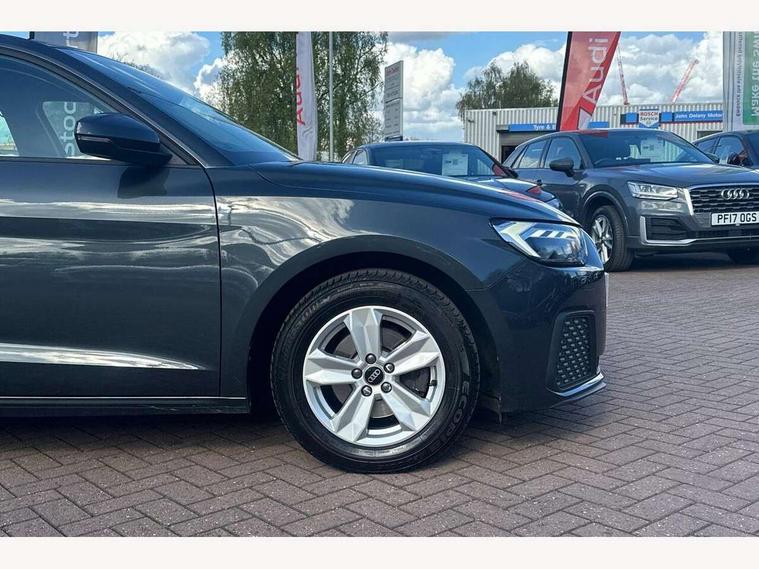 10.25" Digital instrument cluster display classis style instrument dials + speed, odometer, time, outside temperature, telephone menu + fuel level warning, Audi smartphone interface with connect compatible smartphone via USB directly MMI display + Nav, music, third party apps controlled via MMI controller, Automatic start/stop system, Bluetooth interface, Driver's information system, Electromechanical power steering, Emergency e-call, Emergency services call system, Lane departure warning system, Service interval indicator, Speed limiter, Voice control system, Washer fluid level indicator, Dynamic suspension, 1 x SDXC card reader, 2 x USB type C connection points, 6 passive loudspeakers, DAB Digital radio, MMI radio plus with 8.8" colour MMI display screen and MMI touch, Auto dimming rear view mirror, Body coloured bumpers, Body coloured door mirrors, Electric front and rear windows, Electrically adjustable, heated, folding door mirrors with integrated LED side indicator, Front side air inlets with front spoiler lip and rear diffuser in matt black grained, Heat insulating glass windscreen and side windows, Heated rear windscreen, High level LED brake light, LED headlights with LED rear lights + dynamic rear indicators + headlight adjustment and high beam, turning light + LED daytime running lights, Radiator grille in matt black, Rain and light sensors, Rear fog lights, Rear side wing doors, Rear wing door, Rear wiper, 12V socket in centre console with two cup holders, 3 rear seats with headrests, 3 seat bench in 2nd row, 3 spoke leather multifunction plus steering wheel, 40:60 Split folding rear seat or folded fully, Air vents, door handle recesses and centre console in black, Delta cloth upholstery, Driver and passenger seat with manual height adjust with forward and backwards adjustment, Front head restraints, Front passenger seat, Front/rear floor mats, Height and reach adjustable steering wheel, ISOFIX child seat mounting for front passenger and outer rear seats including top tether attachment point of outer rear seats, Leather gear knob with aluminium trim, Leatherette handbrake grip, Luggage compartment light with front and rear reading lights, Manual air conditioning, Titanium grey cloth headlining, Luggage compartment pack - A1, 3x3 point rear seatbelts, Brake assist function, Driver and front passenger airbag with front side and head airbags, Electronic Stability Control including ABS, EBD, ASR and EDL, Front passenger airbag deactivation switch, Hill hold assist, Manual rear child locks, Seatbelt height adjustment for front seats, Seatbelt monitoring, Tyre pressure warning light, Warning triangle and first aid kit, Anti theft alarm, Anti theft wheel bolts and loose wheel warning, Audi pre-sense front with pedestrain and cyclist recognition, Immobiliser, Remote central locking with 2 foldaway keys, Black inlays polygon structure, 15" 5 arm design alloy wheels,