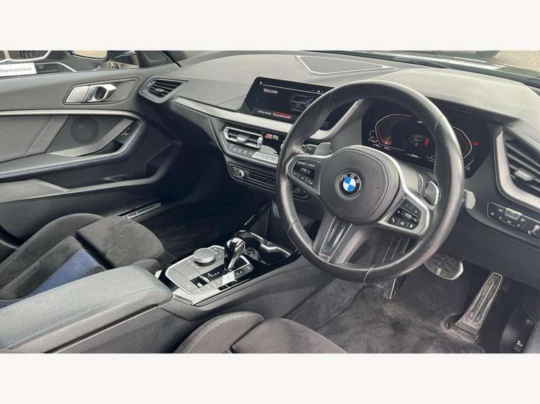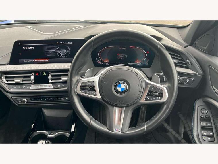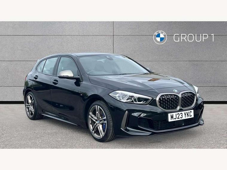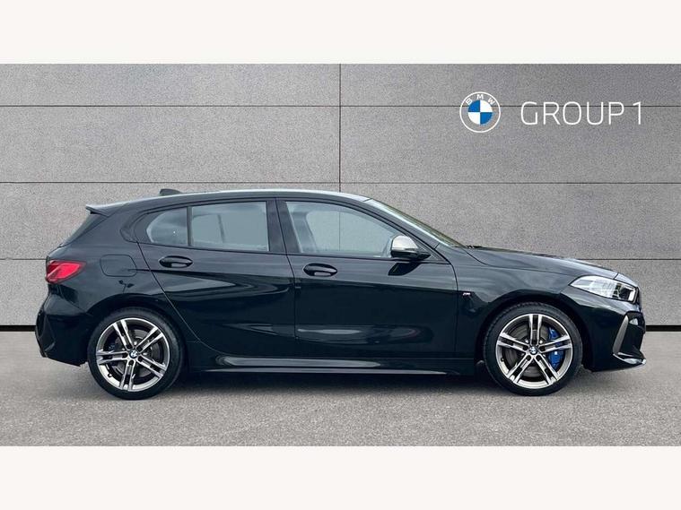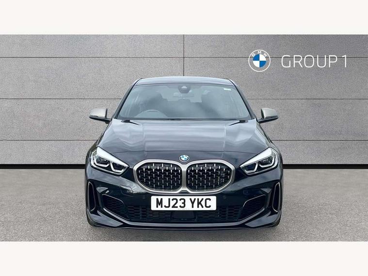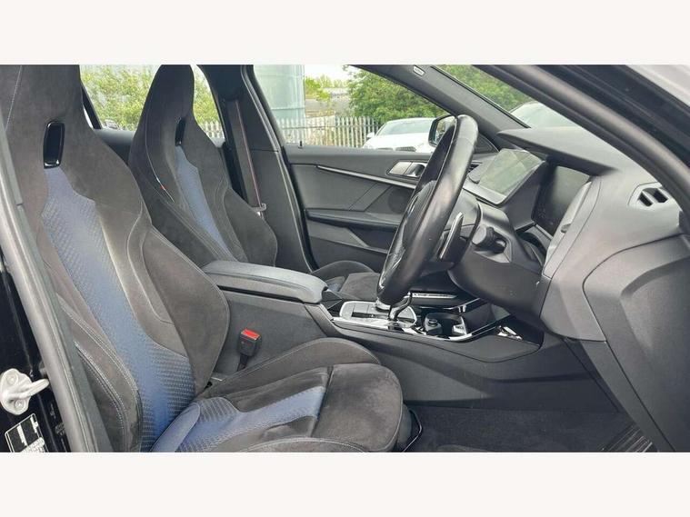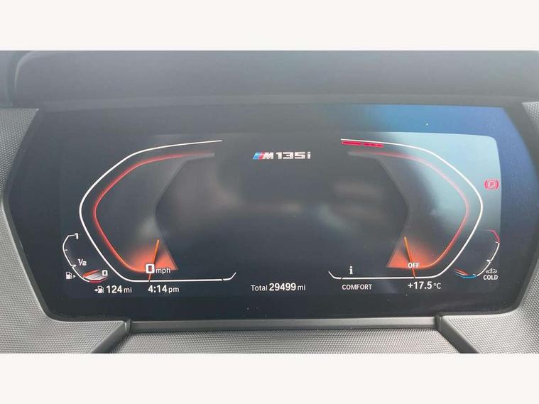 Active guard plus, Attentiveness assist, BMW ConnectedDrive online services, BMW Teleservices, Check Control warning system for monitoring of lights and door/luggage compartment open warning, Cruise control with speed limiter, Eco pro mode, Electric power steering, Electro hydraulically controlled multi-plate clutch transfers drive to rear axle and with power take-off device located on the front differential., Energy efficient operating strategy, Front axle single joint with specific axle kinematics to minimise drive influences on steering + provide increased rigidity agile driving behaviour, Gearshift time display in manual mode, Integrated owners handbook, Lane departure warning system, M Sports steering with M135i xDrive specific settings, Oil sensor for level and grade, On board computer, Optimum shift indicator, Personal Profile, Pull away assistant, Rigidly mounted rear subframe - Multi link construction with separate spring / damper configuration and excellent driving characteristics, Speed limit Info including no-overtaking indicator, Sporty fast gear shifting in sport mode, Aluminium lightweight construction, Anti roll bar front and rear, Balancer shaft, Double VANOS, Drive Performance Control, Eight speed sport automatic transmission with gearshift paddle switches, Electronic differential lock, Electronic selector lever, Engine cover with M performance designation, High precision injection, Larger fuel tank capacity (50 litres), Launch control, M135i specific heavily de-throttled engine intake air guide, M135i specific high-performance cooling package, M135i specific larger turbocharger with integrated divert-air valve, Petrol Particulate Filter, Twin tube gas filled shock absorbers with degressive characteristic curve, VALVETRONIC engine management, Variable, stepless and infinitely adjustable distribution of drive torque between the front and rear axles, xDrive intelligent all wheel drive with M135i specific reinforced components, DAB Digital radio, Auto dimming rear view mirror, Automatic headlight beam throw control, Automatic windscreen wipers and automatic headlight, Body colour door handles, Body colour roof trims, Cerium grey exterior mirror caps, Direction indicator side lights in exterior mirrors, Electrically adjustable exterior mirror with mirror adjustment switch on drivers armrest and aspheric on driver side, convex on passenger side, Exhaust tailpipe, Cerium Grey with bevelled finish - twin, round 100mm, left and right split, Fading support, Folding side mirrors with auto dimming/folding wing mirrors with auto dimming, Follow me home headlights, Front and rear bumper system with replaceable deformation elements, Front and rear electric windows with open and close fingertip control, anti trap facility and comfort closing, Front door sill finishers with M135i designation, Green tinted heat protection glazing, High gloss shadowline window frame, Recess cover mirror frames and B/C pillar embelisher trim, High level third brake light, Integrated front windscreen with washer jets, Kidney grille frame in Cerium Grey with Mesh design, LED daytime running lights, LED eyebrow turn indicators, LED front fog lights, Lightweight engineering, M logo designation side in cerium grey, M Performance exhaust system with valve control and minimised exhaust back pressure, M Performance specific setup, M Sport spoiler, Matt black air guide grilles, Matt black wheel arch trim, Model designation on electric bootlid includes xDrive designation for M135i xDrive, Nearside reverse light in rear light cluster, Preparation for high beam assistant, Rear fog lights, Rear side wing doors, Rear window wiper, Reinforced crank drive, new pistons and adapted con rods, Shark fin antenna, Trailer stabilisation logic, Visible VIN plate, Welcome lighting, 12V power socket in front centre console with blanking plug, 3 rear seat head restraints, 3 seat bench in 2nd row, 3 spoke sports leather steering wheel with black leather and stitching, pearl chrome decorative finish, specific M Badge, Anthracite headlining, Black boot net with lashing eyes, Cargo function on 2nd seat row, Child seat ISOFIX attachment for two outer rear seats and front passenger seat with anchorage points, Conditioned based service, Driver and front passenger backrest net on rear, Driver and front passenger seat heating, Driver side folding compartment in instrument panel, Folding rear clothes hook, Four grab handles integrated in roof lining, Front and rear door pockets with bottle holders, Front and rear side armrest integrated into door trim, Front armrest, Front M sports seats, Glove compartment, Height adjustable front head restraints, Luggage compartment for bag hooks on left and right, foldable luggage compartment liner and four lashing eyelets, Manual adjust steering wheel, Multi-function controls for steering wheel, Single front passenger seat, Storage compartment in centre console, Storage compartment in luggage compartment, Stowage of the parcel shelf in luggage compartment trim, Sun visors with vanity mirrors and insert tab, Two front centre console cupholders, Two zone automatic air conditioning, Type C two USB ports in rear centre console, Velour floor mats, Additional interior lighting pack - 1 Series M135i, BMW live cockpit professional pack- 1 Series, Connected pack professional - 1 Series, Interior lights pack - 1 Series, M Sport exterior styling aerodynamics pack - 1 Series 135i, 2 tone horn, 3 point seatbelts on all seats, front pyrotechnic belt tensioners, stopper and belt force limiters, rear coded belt buckles, Airbags - Front driver/passenger, front and rear curtain head protection, front side, manual deactivation of front passenger airbag, Anti lock braking system (ABS) with brake assist, BMW emergency call, Brake drying, Braking readiness, Child proof locking system in rear door, City braking function, Comfort modes, Cornering brake control, Crash sensor activating of airbags, Unlocking doors, hazard warning 