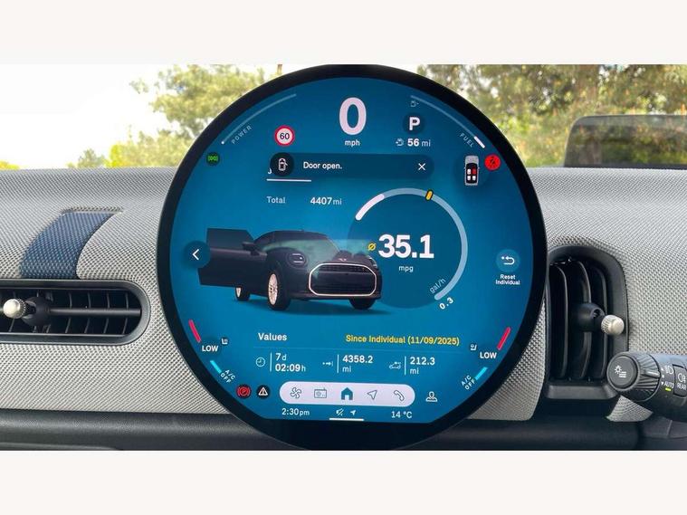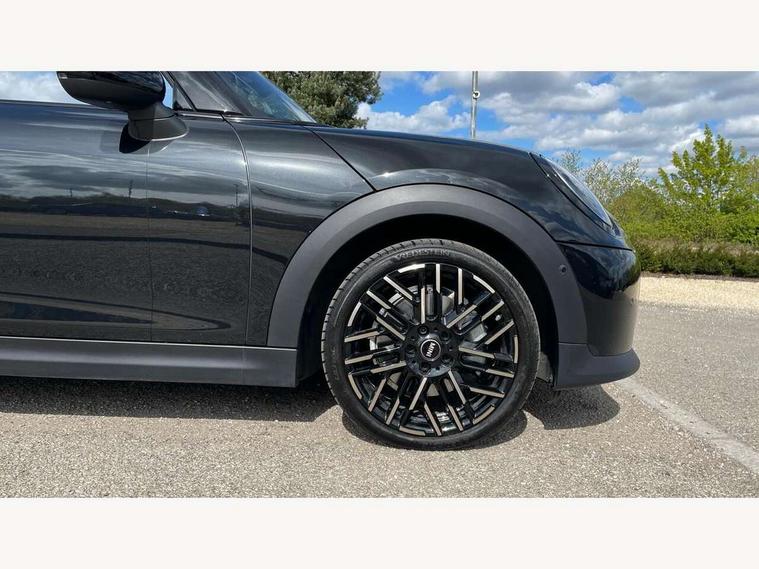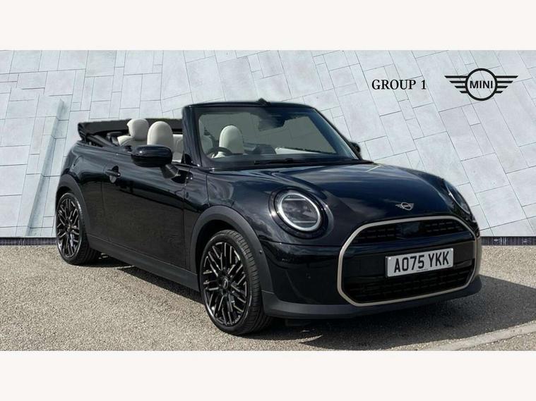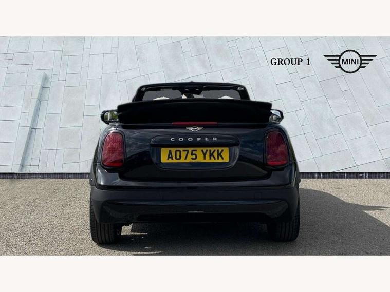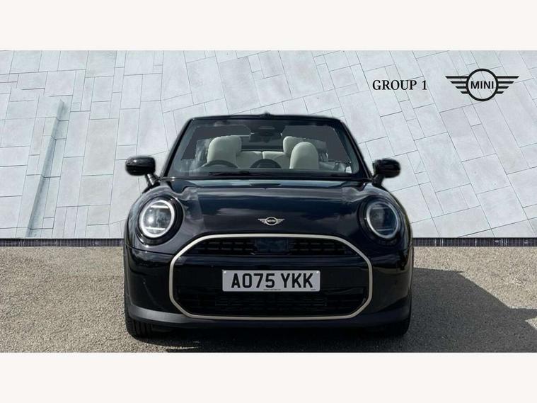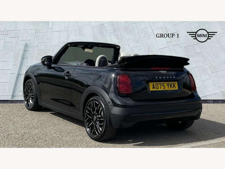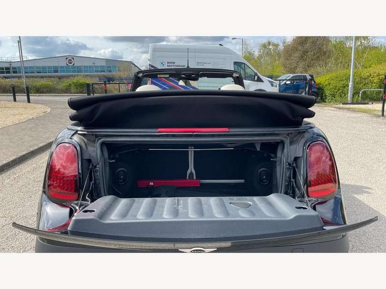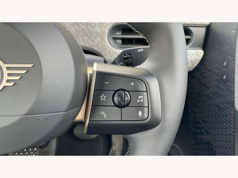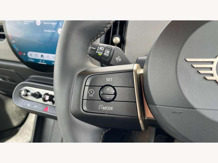 Always open timer, Central toggle bar, Circular OLED Screen, Compatible mobile phone bluetooth with audio streaming, Cruise control, Digital instrument cluster, e-Call (emergency call), MINI Experience Modes, Mini navigation system, On board computer, PAS, Service interval indicator, 7 speed steptronic transmission with double clutch, DAB Digital radio, Personal eSim, Auto headlights, Electric front windows, LED 3rd brake light, LED daytime running lights, LED Headlights, LED indicator lights, LED rear lights, Logos in Vibrant Silver, Rain sensor window wipers, Rear boot, Rear fog lights, Vibrant silver grille surround, Wind deflector, 2 seat bench in second row, 2 zone automatic air conditioning, 60/40 rear seat bench, Ambient lighting, Floor mats, Front and rear head restraints, Front compact armrest, Heated steering wheel, Height adjustable passenger seat, Lidded storage box in grey knit, Light headliner, Luggage compartment lighting, Single front passenger seat, Sport Vescin Steering Wheel black with vibrant silver accents, Sunvisors with vanity mirrors, Vescin synthetic leather upholstery includes dash knit in beige with grey accents, Driving assistant pack - Cooper Convertible, Park assistant pack - Cooper Convertible, 3 point seatbelts on all four seats, 6 Airbags - front, side, head and seat belt tensioners, Anti-lock braking system (ABS), DSC - Dynamic Stability Control, Electronic parking brake, Front and rear disc brakes, Front ISOFIX (iSize), Front passenger airbag deactivation, Traction control, Tyre pressure monitoring system, Alarm, Immobiliser, Physical spare key (not digital), Remote central locking, Blue decorative dash strap, Tyre repair kit,