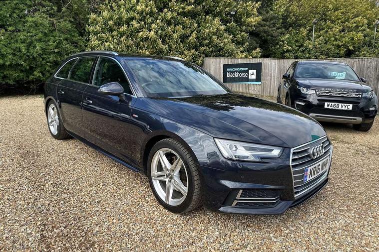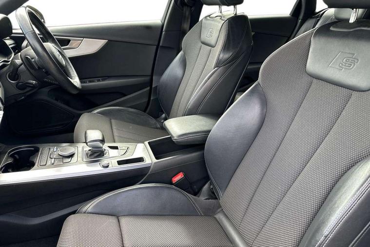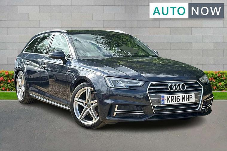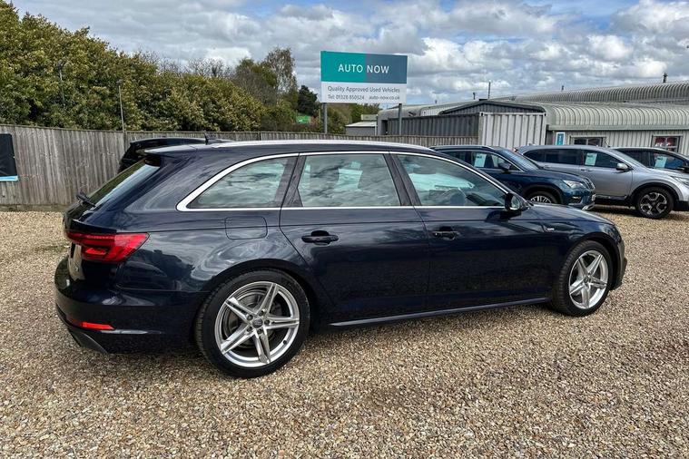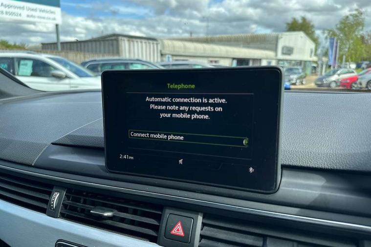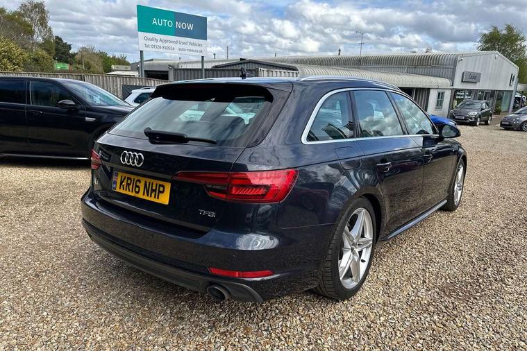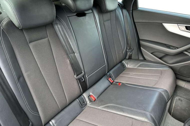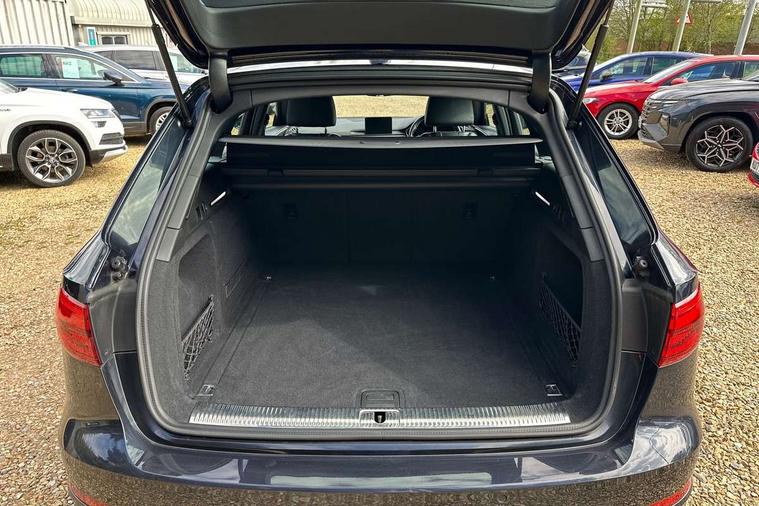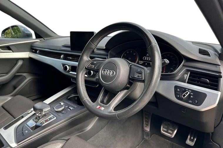 Audi drive select, Audi parking system plus with front and rear sensors, Audi Pre sense collision avoidance, Audi smartphone interface, Electro-mechanical PAS, Power boot opening and closing, Service interval indicator, Stop/start button, Voice control system, 2 USB ports, Aux input, DAB digital radio module, MMI radio plus with CD player, Acoustic windscreen, Aluminium roof rails, Auto dimming rear view mirror, Automatic headlights + automatic windscreen wipers, Body colour bumpers, Body colour door mirrors, Chrome rolled exhaust, Electric adjustable heated door mirrors, Electric front windows, Electric rear windows, Headlight range control, LED daytime running lights, Rear diffuser in Twilight grey matt, Rear wiper, Twilight grey matt radiator grille with chrome inlay, 3 zone climate control, 4 way electric lumbar support for driver and front passenger, Black cloth headlining, Front centre armrest with 12v socket, Front sport seats, Front/rear floor mats, Gearshift paddles, Illuminated door sill finishers, Isofix child seat preparation for front passenger/outer rear seats inc passenger airbag deactivation, Jack and tool kit, Perforated leather gearknob, Reach + rake adjustable steering column, Rear headrests, Retractable load area cover, Split folding rear seats, Stainless steel pedals, Sunvisors with vanity mirrors, Top tether anchor plate for isofix child seat, Exterior aluminium pack - A4, S line exterior styling pack - A4 Avant, 3 point seatbelts on all rear seats, ABS/EBD, Adaptive driver and front passenger airbags, Electromechanical parking brake, ESP, First aid kit, Front head airbags, Front seatbelt pretensioners + load limiters, Front side airbags, Seatbelt warning, Traction control, Tyre pressure monitoring system, Warning triangle, Locking wheel bolts, Remote central locking, Thatcham category 1 alarm + immobiliser, Space saver spare wheel,