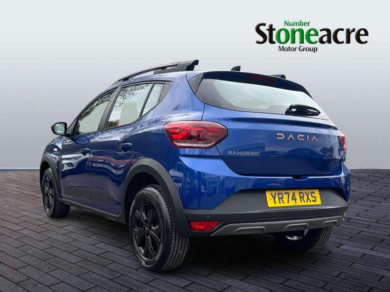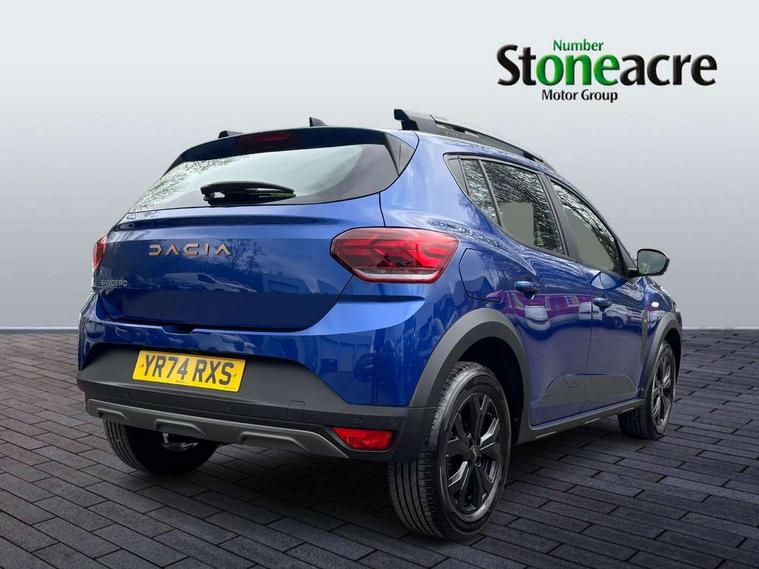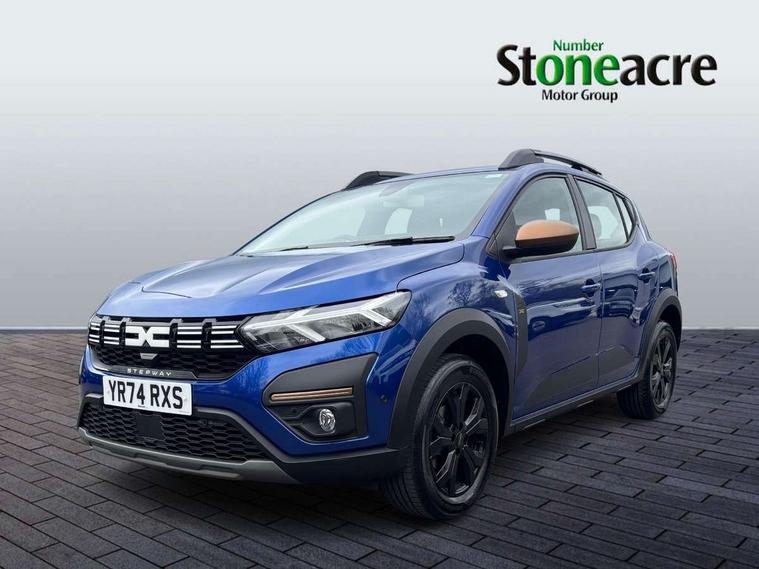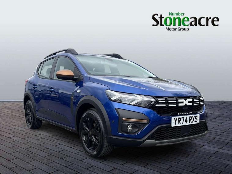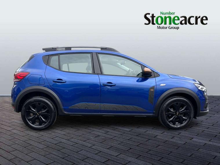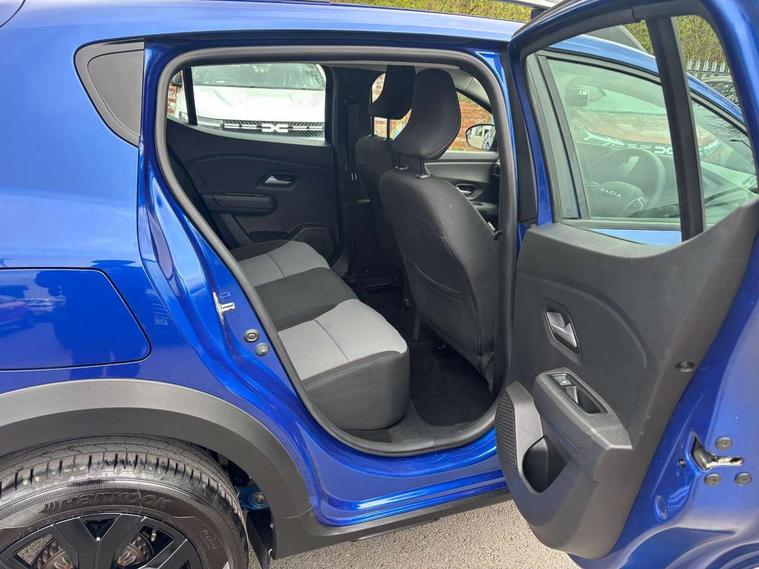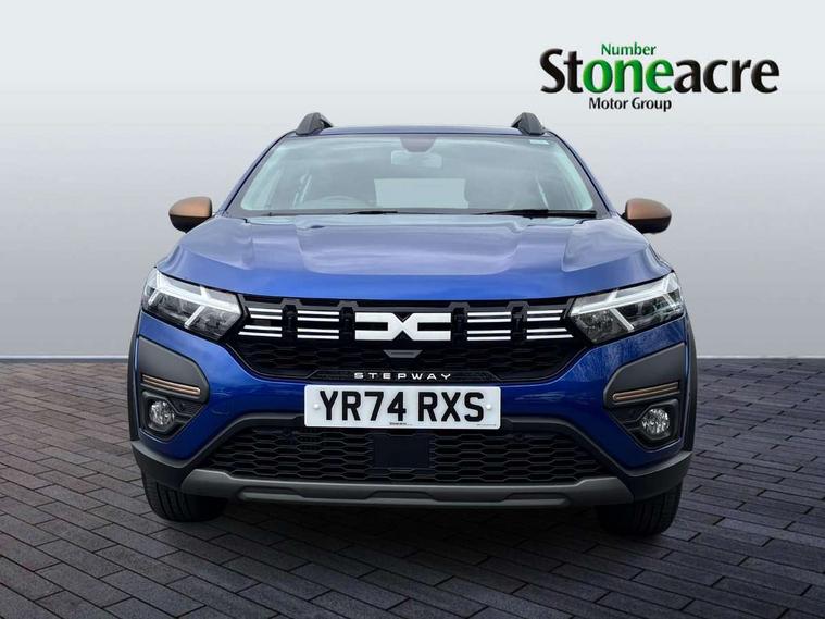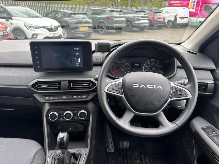 3.5" TFT instrument panel with on-board computer, Blind spot warning, Cruise control with speed limiter, Driver attention warning, eCall emergency call system, Eco mode, Electric power assisted steering, Emergency Stop Signal (ESS), Event data recoder, Extended grip switch, Front parking sensors, Lane departure warning, Lane keep assist, Rear parking sensors, Rescue code, Rev counter, Reversing camera, Stop/start system, Traffic sign recognition with speed alert/Intelligent speed assist (ISA), 8" MediaNav with DAB Radio + Smartphone replication + Bluetooth + 6 Speakers with Apple Carplay and Android Auto, USB connection for data transfer and charging, USB socket, USB-C plug, USB-C plug rear, 3 speed windscreen wipers, Auto lighting, Automatic wipers, Black radiator grille with white inserts stepway inscription, Body colour door handles, Body coloured bumpers, Copper Brown Dacia inscription on tail gate, Copper brown deco part on fog lamp area, Copper brown door mirrors, Copper brown stepway inscription on roof bars, Door sills in topographic pattern, Drivers one touch electric windows, Electrically adjustable and heated door mirrors, Front electric windows, Front fog lights, Heated rear window, High level third brake light, Lateral sticker with topographic pattern, LED automatic daytime running lights, LED Y-shape Dacia signature lighting, Megatith modular roof bars, Rear electric windows, Rear side wing doors, Rear wash/wipe, Shiny black shark antenna, Snorkel sticker with topographic pattern, Tinted windows, Topographic door protection decals and snorkel animation, 1/3 to 2/3 split folding rear seats, 12 volt front socket, 12 volt rear socket, 3 height adjustable rear headrests, 3 seat rear bench, Automatic air conditioning, Copper brown doors deco parts, Driver and passenger vanity mirror with cover, Fixed smartphone holder on dashboard, Fog grey animation on air vents, Fog grey interior door handles, Front and rear rubber mats with topographic pattern, Height adjustable drivers seat with armrest, Height adjustable front headrests, Height/depth adjustable steering wheel, High central armrest with console storage, Isofix points for child seats in both outer rear seats, Micro-cloud grey fabric on dashboard, MicroCloud fabric washable TEP upholstery, Single front passenger seat, Soft feel steering wheel, Steering wheel controls, 3x3 point rear seatbelts, ABS and Emergency brake assist, Advanced emergency braking system, Alcohol imoboliser predisposal, Automatic emergency braking system, Child locks on rear doors, Door open visual and audible warning, Driver airbag, EBD - Electronic brakeforce distribution, Electronic parking brake, ESC (Electronic Stability Control), ESP + Hill Start Assist, Front curtain airbags, Front seatbelt pretensioners, Front side airbags, Height adjustable front seatbelts, Passenger airbag, Seatbelt reminder for driver and front passenger, Side impact protection, Tyre pressure monitor, Automatic central locking, Immobiliser, Keyless entry, Remote central locking, Decopart on instrument panel and door with textile, 16" Mahalia black alloy wheels,