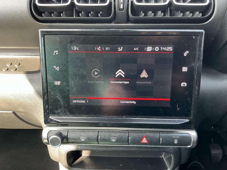 9" Touchscreen display, Citroen connect box emergency and assistance system, Citroen Connect Nav with 3D navigation, Coffee Break Alert, Cruise control with speed limiter, Driver instrument cluster including trip computer and rev counter with white text LCD display and white needles and chrome decor, eCall emergency call system, Engine start button, Lane departure warning system, Mirror screen with Apple CarPlay and Android auto, Outside temperature sensor, Rear parking sensors, Tailgate, Top rear vision reversing camera, Traffic signs and speed limit recognition and recommendation, Variable assistance power steering, Voice recognition for radio, navigation and telephone features, Bluetooth hands free and media streaming with USB socket, Citroen connected DAB radio with 6 speakers, Steering wheel mounted controls for stereo and telephone, 3D effect LED rear lights, Automatic Eco LED headlights, Automatic lights and windscreen wipers, Black roof bars, Body colour painted door handles, Chrome chevrons front grille, Electric front windows + one touch + anti-pinch, Electric rear windows with one touch/anti-pinch, Electrically adjustable door mirrors, Electrically folding door mirrors, Electrochrome rear view mirror, Fog lights integrated into front bumper, Front and rear body coloured bumpers, Heated door mirrors, Heated rear window, Integrated roof spoiler, LED daytime running lights, LED third brake light, Painted door mirrors to match colour pack, Rear side wing doors, Rear wiper, Roof aerial, Tinted rear windows and rear quarterpanel glass, Variable front intermittent wipers, 12v socket in front, 12V socket in rear of vehicle, 2 rear isofix mounting points (outside seats) with top tether, 60/40 split folding rear seats with sliding rear bench, centre armrest and ski flap, Automatic air conditioning, Boot light, Central adjustable armrest on drivers seat, Centre console with closed storage and chrome insert, Driver and front passenger cup holders, Driver and passenger sunvisor with courtesy mirror, Flex load/Pull out boot floor, Front and rear courtesy reading lights, Front and rear door storage, Front head restraints, Front passengers seat flat folding, Glovebox with closable lid, Height adjustable driver's seat, Height and reach adjustable steering wheel, Integrated retractable rear side window sun blinds, Leather steering wheel with satin chrome inserts and radio controls, Manual handbrake with chrome insert, Passenger compartment headlight adjustment, Row 2 - Three seats with individually adjustable head rests, Satin chrome interior door handles, Single front passenger seat, 3 point, height adjustable, pre tensioned front seatbelts, ABS with Electronic brakeforce distribution and Emergency braking assistance, Active safety brake including Forward collision warning, Automatic illumination of hazard warning lights, Curtain airbags, Driver airbag, Drivers/passengers and rear seats unfastened seat belt warning, ESC (Electronic Stability Control), Front lateral airbags, Front passenger airbag, Front passenger airbag deactivation switch, Hill start assist function, Mono-tone horn, Rear door child safety locks, Three 3 point rear seatbelts, Tyre pressure monitor, Automatic door and boot locking with automatic unlocking in case of impact, Automatic locking of the vehicle (after 30 seconds if door or boot unopened), Immobiliser, Keyless entry and keyless start, Perimetric and volumetric anti theft alarm, Remote central locking + deadlocks, Vehicle locater function (headlights illuminate when button on key pressed), Satin chrome air vent decors,
