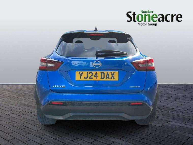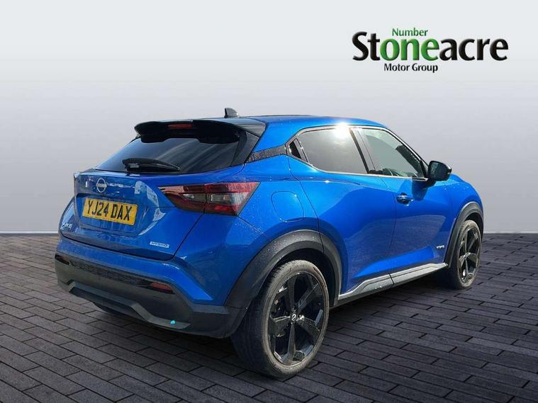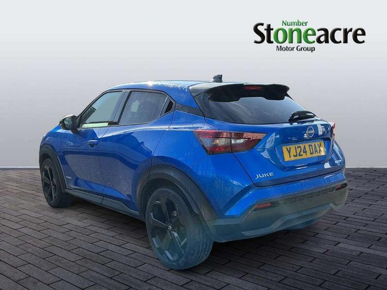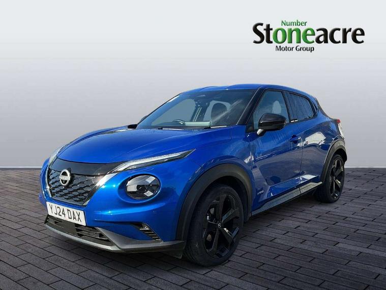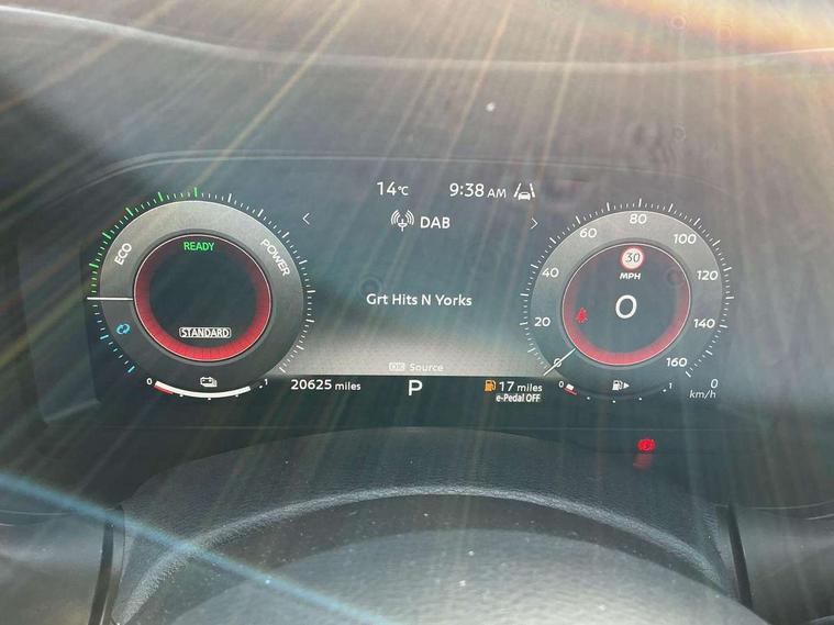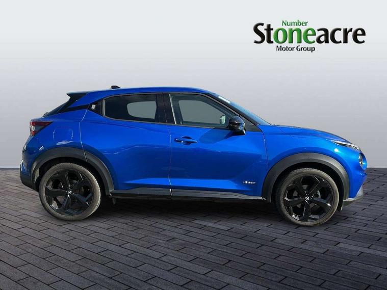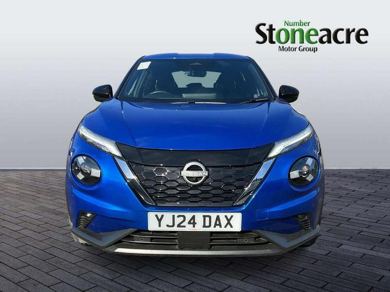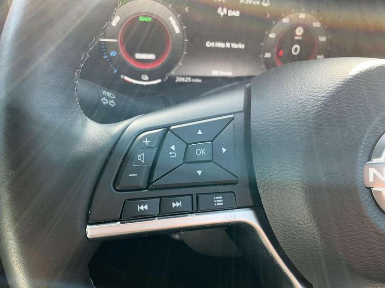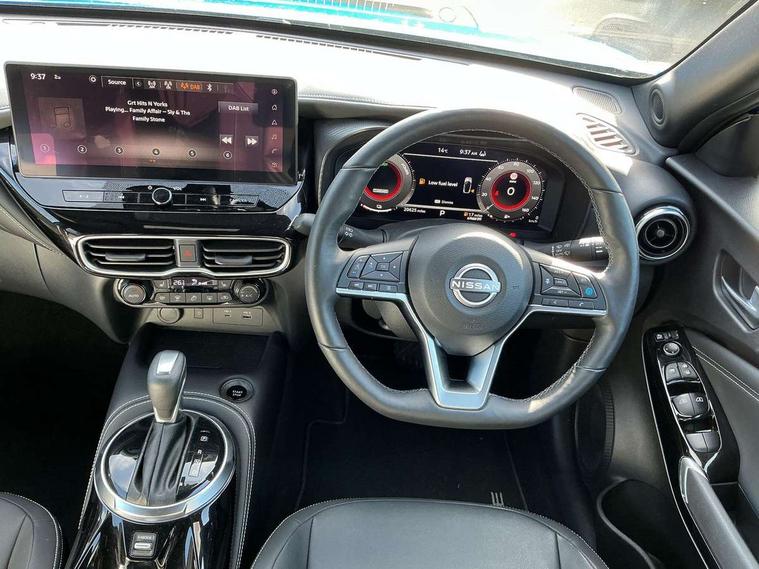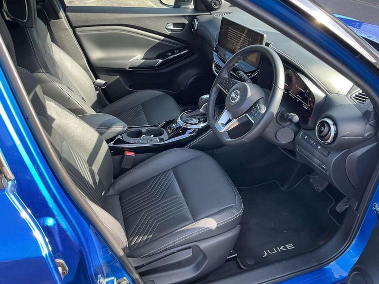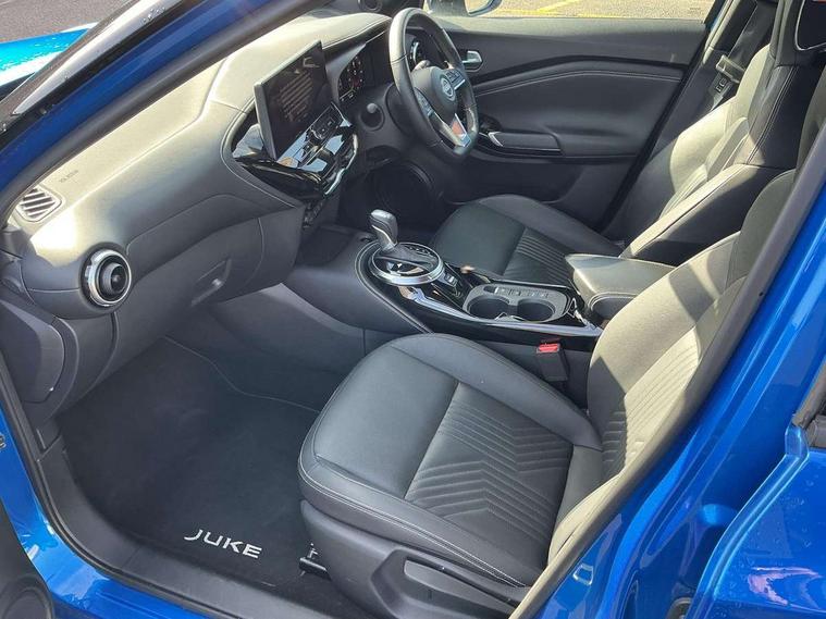 12.3" full colour TFT screen combimeter, Drive modes select (Eco, normal and sport), e-Pedal step, Emergency and breakdown call, EV mode selector, Front parking sensor, Intelligent driver alert system, Intelligent lane intervention, Lane departure warning system, Nissan connect 12.3" touch screen entertainment system, Nissan connect nav with TomTom traffic, Nissan connect services and Wifi connection, Outside temperature sensor, Power Steering, Rear parking sensor, Stop/start button, Traffic sign recognition, Trip computer, Voice recognition, Wireless Apple CarPlay and Google Android auto, Wireless Smartphone charger, 10 Bose speakers 6 speakers and 2 headrest speakers for driver/passenger seats, 2 X Rear console USB port, Bluetooth system, USB, Aux-in and 12V socket, Bose personal sound stage control, DAB Digital radio, Auto dimming frameless rear view mirror, Automatic hazard signal with emergency stop signal, Body colour door handles, Electrically adjustable door mirrors with integrated indicators, Follow me home headlights, Front and rear electric window with one touch driver window, Heated and auto folding door mirrors, High beam assist, LED 3rd brake light, LED daytime running lights, LED front fog lights, LED headlamps, LED rear fog lamp, LED rear lamps, One touch passenger window, Rain sensor windscreen wipers, Rear privacy glass, Rear side wing doors, Rear wiper, Roof spoiler, Shark fin roof antenna in solid Black, Three blink turn signal, 3 height adjustable rear headrests, 3 seat bench in 2nd row, 60/40 split folding rear seat, Automatic climate control, Card holder on driver sunvisor, Door ambient lighting, Driver seat back pocket, Driver side rear coat hanger, Driver/passenger sunvisors and vanity mirrors, Front and rear cabin lights, Front armrest, Front door pockets with bottle holders, Front head restraints, Front/rear passenger grab handles, Gear console ambient circle lighting, Height adjustable driver's seat, Internal chrome door handles, Leather gearshift knob, Leather steering wheel, Luggage space lighting, Monoform sporty seats, Multifunction steering wheel, Passenger seat back pocket, Rear door bottle holders, Single front passenger seat, Synthetic leather kneepad, Synthetic leather upholstery, Telescopic steering wheel adjustment, Two cupholders in front centre console, Two rear isofix child seat anchorage points with top tether, Welcome light and console tray ambient lighting, Heat pack with height adjustable passenger seats - Juke, ProPilot pack - Juke Auto, ABS with EBD and brake assist, Active ride control, Active Trace Control, Driver and passenger airbags, Driver and passenger side airbags, Electric handbrake with auto hold function, Electronic Stability Programme (ESP), Front and rear curtain airbags, Height adjustable seatbelts, Hill start assist, Intelligent emergency braking with pedestrian and cyclist recognition, Rear door child safety locks, Seatbelt reminder for driver/front passenger and rear seats, Three 3 point rear seatbelts, Traction control, Tyre pressure monitoring system, VDC Dynamic Vehicle Control, Alarm, Immobiliser, Intelligent key and start push button with walk away lock and approach unlock functions, Remote central locking, 19" Alloy wheels,