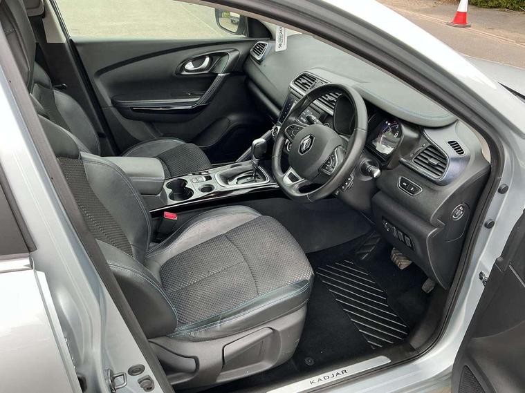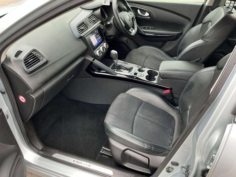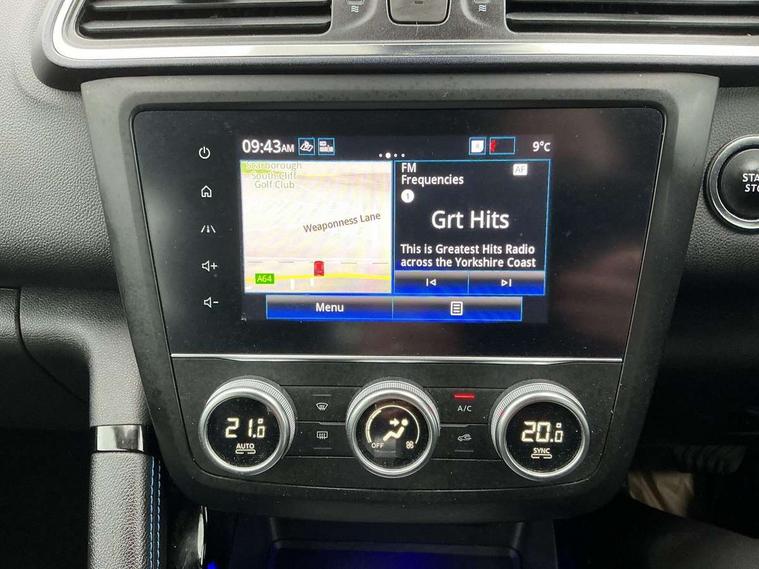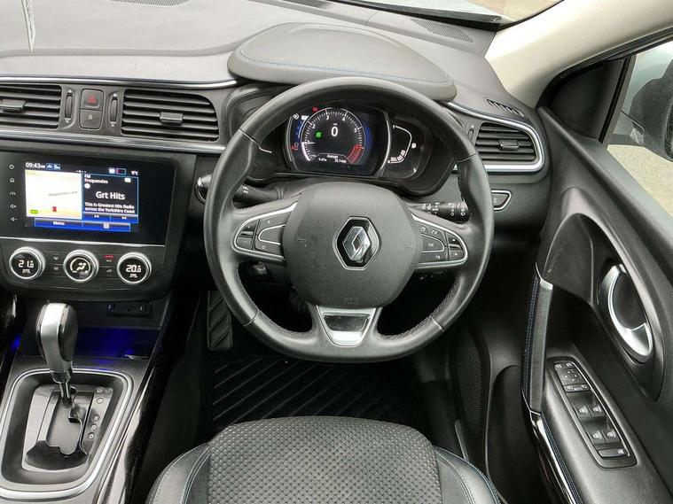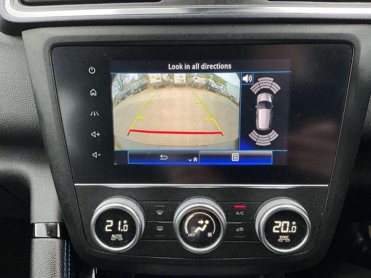 Cruise control + speed limiter, Digital speedometer with 7 TFT screen, Door/boot open warning light, Eco mode, Exterior temperature indicator, Front and rear parking sensors with rear parking camera, Gear change indicator, Lane departure warning system, Low fuel level warning light, Multi function trip computer, Oil level gauge, PAS, R-Link 2 Multimedia system + 7" touchscreen, TomTom + West European Map, DAB/FM/AM radio, bluetooth + hands free, USB/AUX, voice control, Rev counter, Smartphone integration, Gasoline particulate filter, 4x35W speakers with 3D sound, Fingertip controls for audio system, Two rear USB sockets, Auto dimming rear view mirror, Automatic headlights, Automatic high/low beam, Automatic windscreen wipers with variable speed adjustment, Body colour door handles, Body coloured bumpers, Body coloured door mirrors, Bodyside mouldings with chrome inserts, Chrome fog light surround, Chrome roof rails, Chrome window surround, Electric adjustable/heated/folding door mirrors, Extra tinted glass in rear windows and tailgate, Fixed panoramic glass sunroof, Front and rear electric windows, Front and rear towing rings, Heated rear windscreen, Integrated C shape indicators with side repeaters, Integrated fuel filler cap, LED daytime running lights, LED front fog lamps with cornering function, LED high and low beam headlights with LED turn indicators, LED rear fog light, Rear wiper, Saturn grey front and rear skid plates, Shark fin antenna, 12V socket in front, 3 height adjustable rear headrests, 3 seat rear bench, 3D TEP fabric with synthetic leather upholstery with blue top stitching, 60/40 split folding rear seat, Accessory power point, Adjustable dashboard illumination, Air recirculation system, Centre rear armrest with cup holder, Driver sunblind with illuminated mirror and ticket holder, Driver's seat with lumbar adjustment, Driver/passenger reading lights, Dual zone automatic climate control, Easy life quick folding rear seat, Faux leather wrapped steering wheel, Front courtesy lights, Front footwell illumination, Front/rear floor mats, Height adjustable driver's seat, Height adjustable front headrests, Height adjustable passenger seat, Height/reach adjust steering wheel, Illuminated boot, Illuminated centre console, ISOFIX child seat anchorage points attached on outer rear seats, Multi positional boot floor, Pollen filter, Rear courtesy lights, Rear passenger air vents, Sliding front centre armrest, Storage glovebox, ABS/EBD, Driver/passenger 2 stage auto adaptive airbags, Electronic parking brake, Emergency brake assist, ESP with ASR and UCL (understeer control logical), Front and rear curtain airbags, Front lateral airbags, Front seat belts warning, Height adjustable front seatbelts with double pretensioners, Hill start assist, Manual passenger airbag deactivation function, Rear seatbelt warning indicator, Side impact protection, Three point rear center seatbelt, Traction control, Tyre pressure monitor, Anti-drill door locks/ignition barrel, Deadlocks, Insurance approved Cat 1 alarm system, Insurance Approved Immobiliser, Key card hands free with walk away lock function, RAID (Renault Anti-Intruder Device) with automatic door locking, Remote central locking, 19'' Zeus diamond cut alloy wheels,