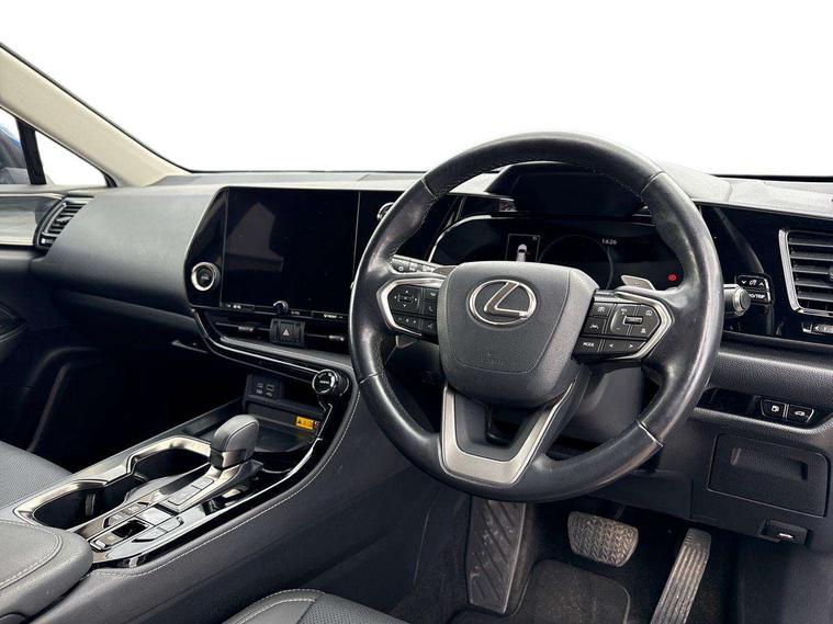 4 driving modes EV/Eco/Normal/Sport, 7" display in instrument binnacle, Blind spot monitoring with rear cross traffic alert, Bluetooth telephone connectivity, eCall emergency system, Electric speed sensitive power steering, Intelligent parking sensors - 4 front and 4 rear, Lane change flasher function, Lexus link connect - Cloud based navigation, cloud based voice assistant, always online and 9.8" VGA touchscreen, Push button starter, Reversing camera with back guidelines, Service interval indicator, Wireless Apple CarPlay and wired Android Auto, Wireless Smartphone charger, 6.6 kW onboard charger, All Wheel Drive (AWD), Hybrid automatic transmission, Vehicle Dynamics Integrated Management (VDIM), Vehicle Stability Control (VSC), 10 speakers, 4 USB ports - 2 front, one USB C, 2 rear USB C, DAB Digital radio, Auto dimming interior rear view mirror, Automatic headlights, Bi LED headlights, Double hidden exhaust pipes, Front and rear one touch power windows, with anti-jam protection, Heated, auto-folding, auto-dimming outside mirrors with reverse tilt function and turn indicators, Illuminated door handles with puddle light, LED brake lights and rear lights with emergency brake signal, LED daytime running lights, LED front fog lights, LED Indicators, Power back door with kick sensor, Privacy glass, rear doors and tailgate, Rain sensor windscreen wipers, Rear side wing doors, Rear wiper, Roof rails, 12V accessory port centre console and luggage compartment, 2 cupholders in front centre console, 2 way electrical lumbar adjustment for driver, 2 x fixed shopping bag hooks in boot, 2 x sun visors with vanity mirror and lamp, 3 seat bench in 2nd row, 4 x tie down hooks in the boot, 6 way manually adjustable front seats, 60/40 split folding rear seat, Adjustable rear seat backrest, Card holder installed in driver and passengers sun visors, Centre armrest with storage box, Dual climate control air conditioning system, Front and rear head restraints, Front and rear textile carpet mats, Front passenger seat, Heated front seats, Heated steering wheel, Leather gear lever, LED interior illumination, Power adjustable leather steering wheel with paddle shifts, Rear centre armrest with 2 cupholders, Tahara leather upholstery, Whiplash Injury Lessening (WIL) feature (active headrest) for seats, 2 x Isofix child rear seat restraints, 3 point ELR front seatbelts with pretensioners, 3x3 point rear seat belts, ABS, Adjustable seat belt anchor points, Driver and front passenger 2 stage airbag, Driver/front passenger side airbags, Drivers knee airbag, E-Latch with safe exit assist, EBD + Brake Assist, ECB (Electronically Controlled Brake System), Electronic parking brake, Front and rear curtain shield airbags, Front center airbag, Front passenger seat cushion airbag, Hill assist control, Lexus safety system - dynamic radar cruise control, pre collision system day and night, lane tracing assist, road sign, automatic high beam, OTA, Manual rear child locks, Passenger airbag cut-off device, Traction control, Tyre pressure warning, 2 x remote key fobs, Anti-theft system with alarm, intrusion sensor, glass breakage sensor, tilt sensor and engine immobiliser, Locking wheel nuts, Smart keyless entry, Speed sensitive auto door locking, Two motion door lock with double lock, VIN Window etching, 3D prism black Inlay, Tyre repair kit,