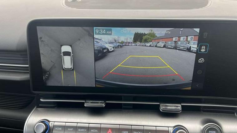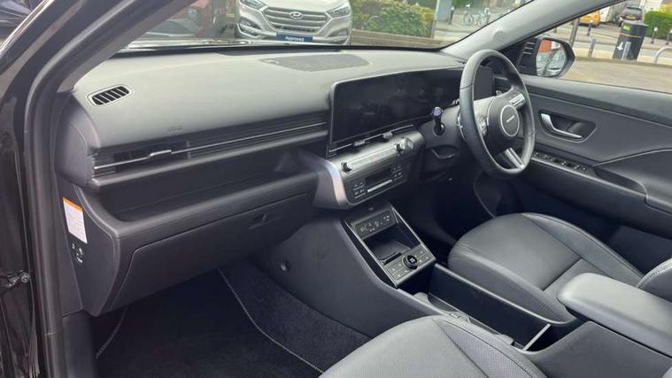 12.25" digital instrument cluster, 12.3" touchscreen centre console display satellite navigation with bluelink, live services and mapcare, Blind spot collision avoidance assist, Blind spot view monitor, Bluetooth connectivity with voice recognition, Driver status monitor (DSM), Driver supervision instrument cluster with 12.3" LCD display, eCall emergency call system, Feature on demand - Enabled, Forward collision avoidance assist (FCA 1.5) - Car, pededstrian, cycle and junction turning, Front parking sensor, HDA - Highway Drive Assist Level 1.5, Height adjustable power tailgate, Intelligent speed limit assist, Lane follow assist, Lane keep assist, Leading vehicle departure alert (LVDA), Parking Collision Avoidance Assist-Reverse (PCA-R), Parking distance warning - side, Parking system with rear camera and guidance system, PAS, Rear cross traffic collision avoidance (RCCA), Rear parking sensor, Rear view camera with dynamic guidelines, Roadside assistance, Safe exit warning (SEW), Smart cruise control with stop and go functionality, Surround view monitor, Wireless phone charging pad, Wireless Smartphone Integration includes Apple CarPlay and Android auto, 2 front USB C and 2 rear USB C charging points, Bose Premium Audio system with 7 premium speakers + subwoofer, DAB Digital radio, Steering wheel audio, phone and cruise controls, Auto dimming rear view mirror, Automatic headlights with dusk sensor, Automatic windscreen wipers with rain sensor, Black painted wheel arch inserts, Body colour exterior door handles, Body coloured door mirrors, Door mirror LED indicator lights, Electric front windows with anti-trap mechanism and one touch control, Electric rear windows, Electric sunroof, Electrically adjustable and heated door mirrors, Horizon centre LED DRL, LED projector headlights, LED taillights, LED upper and lower rear lights, Power folding door mirrors, Privacy glass - Rear windows and tailgate, Rain sensor, Rear roof spoiler with integrated LED brake light, Rear side wing doors, Rear skid plate - silver, Rear wiper, Roof rails, Solar glass with front door glass and windscreen, Tinted glass in front and rear doors, Windscreen auto defog function, 12V power outlet in front console, 2 zone climate control, 3 seat bench in 2nd row, 40/20/40 split folding rear seat, Adjustable head restraints, Ambient lighting, Driver and passenger front seat pockets, Driver's seat electric adjustments, Driver's seat lumbar support, Driver/passenger sunvisors and illuminated vanity mirrors, Floor mats, Front passenger's seat electric adjustments, Heated front seats, Heated rear seats, Heated steering wheel, Height/reach adjustable steering column, Leather steering wheel, Leather upholstery, LED centre interior light, LED front interior light, Luggage compartment LED lighting, Luggage net, Luggage shelf, Metal paint effect interior door handles, Rear centre armrest with cupholders, Shift by wire SBW, Single front passenger seat, Ventilated front seats, Vertical adjustment rear head restraints, Trailer wiring package - Kona, Airbag - front, front side, curtain and centre front airbag, Anti-lock brake system (ABS), Childproof rear door locks, Downhill brake control, Electric parking brake, Electronic stability control, Fixed 3 point for second row centre passenger seatbelt, Hill start assist control (HAC), Rear seat alert, Tyre pressure monitoring system, Alarm/immobiliser, Rear occupant alert, Remote central locking, Smart key with keyless entry and start/stop button, Five year annual vehicle health checks, 18" Alloy wheels, Temporary mobility kit (TMK),
