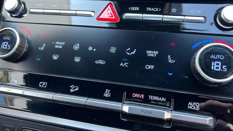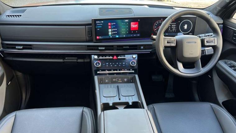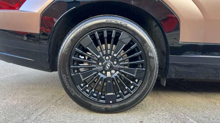 12.3" Drivers supervision instrument cluster with LCD display, 360 degree parking sensors, Blind spot collision avoidance assist (BCA), Blind spot view monitor (BVM), Bluelink and Wireless Apple Carplay/Android Auto, Bluetooth connectivity with voice recognition, Drive mode selector, Driver status monitor (DSM), Dual wireless phone charging pad, Emergency services call system, Forward collision avoidance assist (FCA 2.0), Head up Display, Highway drive assist 2 (HDA 2), Intelligent speed limit assist (ISLA), Lane departure warning system (LDW), Lane Follow Assist 2 (LFA 2), Lane keeping assist (LKA), Low washer fluid warning, Navigation based smart adaptive cruise control with stop and go, Over the air software updates (OTA), Parking Collision Avoidance Assist-Reverse (PCA-R), Power assisted steering, Remote smart parking assist, Safe exist assist (SEA), Smart electric tailgate with hand's free opening function, Surround view monitor, Self levelling suspension, Shift by Wire Gear Selector (SBW), 12.3" Touchscreen display with satellite navigation, 2nd Row USB C Ports x2 Charging, 3rd Row USB C Ports x2 Charging, Front USB C port 1 charging and 1 data/charging, Premium BOSE sound system with 12 speakers and subwoofer, Steering wheel audio, phone and cruise controls, Automatic headlights with dusk sensor, Automatic windscreen wipers with rain sensor, Black Styling (Skid plate, Fender upper garnish, Door side garnish, C/D pillars, Rear bumper moulding, DLO), Body colour bumpers, Digital centre mirror, Dynamic welcome lights, Electric adjustable/heated/auto power folding door mirrors, Front and rear electric windows, Heated rear window, Hidden C pillar assist handle, Hidden rear wiper, High beam assist, LED daytime running lights, LED Headlights, LED indicator lights, LED indicators in door mirrors, LED positioning lights, LED taillights, LED third brake light, Manual rear door blinds, Rear side wing doors, Rear windows and tailgate privacy glass, Roof rails, Solar glass windscreen and front windows, Windscreen acoustic film, Windscreen auto defog function, 2nd and 3rd row center armrest with cupholder, 3rd row head restraints, Centre rear head restraint, Driver and front passenger premium relaxation seats, Dual zone climate control air conditioning, Electrically adjustable front seats with 2 way electric lumbar support, Front head restraints, Front seats with memory, Heated front seats, Heated rear seats, Height and reach electrically adjustable steering column, Leather wrapped heated steering wheel, Luggage cover, Luggage hooks, Luggage net, Multi colour LED ambient lighting, Nappa leather upholstery, Rear head restraints, Single front passenger seat, Split folding (50/50) third row seats, Split folding (60/40), sliding and reclining second row seats, Sun Visors with driver and passenger illuminated vanity mirrors, Two front cup holders, UV-C Tray, Ventilated front seats, Trailer wiring pack - Santa Fe, 3 point seatbelts on all seats, Adjustable regenerative braking paddle shifters, Airbag - Front, front side, curtain and centre front airbags, Anti-lock brake system (ABS), Dynamic brake control, Electric parking brake with auto hold function, Electronic Stability Control (ESC), Hill start assist control (HAC), Manual child lock in rear doors, TSA (Trailer Stability Assist), Tyre pressure monitoring system, Immobiliser, Smart Key - Keyless entry with Power On/Off button, Black ink interior decals, 20" Black calligraphy alloy wheels, Tyre mobility kit,