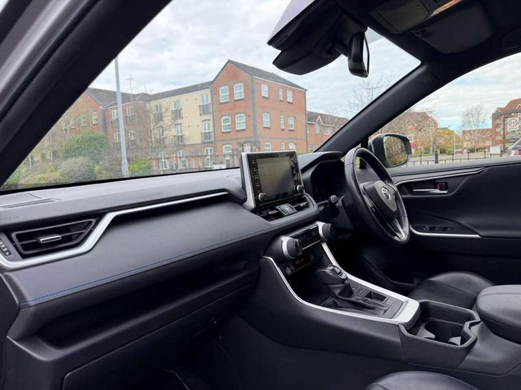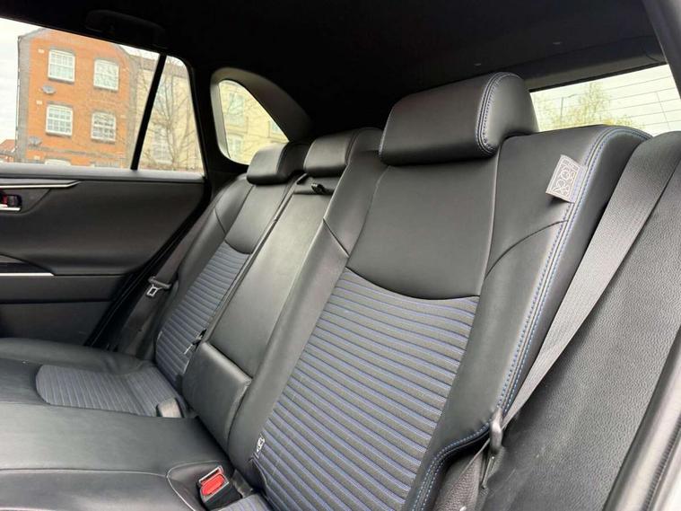 7" colour TFT display, Adaptive cruise control with lane trace assist, Adjustable speed limiter, Apple car play and Android auto, Blind spot monitoring with rear cross traffic alert, Bluetooth system, Cyclist Detection, Drive mode selector, eCall emergency call system, ECO-driving indicator, Electric power steering, EV audible alert, Hybrid system indicator, Lane departure warning system, Lights on warning, Night Time Pedestrian Detection, Pedestrial detection, Power boot opening and closing, Rear parking camera, Rear parking sensors, Remote boot door release in cabin, Tachometer, Touch 2 Go navigation system including 3D maps and voice control, Traffic sign recognition, Trip computer, Voice control system, Vehicle Stability Control (VSC), 6 speakers, 8" Multimedia display touch screen, Auxiliary socket for external MP3 player, DAB audio, Steering wheel mounted audio controls, Toyota touch media system, USB connection, Auto dimming interior mirror, Auto high beam, Automatic headlamp levelling, Automatic headlights, Automatically retractable door mirrors, Bi-tone black roof, Black door mirrors, Black rear spoiler, Black roof rails, Black Shark-fin antenna, Body colour door handles, Body coloured bumpers, Door mirror puddle lights, Electric adjustable door mirrors, Emergency brake-light signal (EBS), Follow me home headlights, Front fog lights, Gloss black front bumper insert, Gloss black rear bumper insert, Headlight cleaners, Heated door mirrors, LED daytime running lights, LED High mounted stop lamp, LED rear lights, Meshed shape upper front grille, Power front windows, Power rear windows, Privacy glass, Projector LED headlights, Rear screen wiper - intermittent, Rear windscreen defogger, Silver front under-run, Silver rear under-run, Trailer sway control, Turning signal integrated indicators in door mirrors, 3 rear headrests, 60/40 split fold rear seat back, Black roof lining, Boot light, Clean air filter, Driver and front passenger personal light, Driver and front passenger Whiplash Injury Lessening seats, Driver and passenger sunvisors with illuminated vanity mirrors, Dual sided deck board in boot, Dual zone automatic air conditioning, Floor mats, Folding rear centre armrest, Front and rear bottle holders, Front centre armrest, Front footwell lights, Front headrests, Front seat and rear pockets, Front sport seats, Front/rear roof mounted assist grips, Heated driver and front passenger seats, Isofix child seat preparation, Leather gear shift with chrome surround, Light blue ambient lighting on front cupholders and open tray, Manual telescopic and tilt 3-spoke leather steering wheel with Chrome insert, Manually reclining and sliding front passenger seat, Pollen filter, Power height-adjustable sliding reclining and lumbar support for driver seat, Rear coat hooks, Rear door armrests, Rear passenger air vents, Reclining rear seats, Satin chrome interior door handles, Sunglasses holder, Synthetic leather upholstery, 3x3 point rear seatbelts, ABS/EBD, Adjustable front driver and passenger seat belt extender, Brake assist function, Child proof door locks, Collision mitigation braking system, Driver/Front Passenger airbags, Driver/front passenger side airbags, Drivers knee airbag, Electronic parking brake, Electronic Stability Programme (ESP), Emergency brake light system (EBS), Front and rear curtain airbags, Front and rear seatbelt reminder, Hill start assist, Passenger airbag cut-off device, Seatbelt pretensioners with load limiters, Traction control, Tyre pressure warning, Alarm/immobiliser, Glass-breaking alarm sensors, Light - on and Key in reminder, Remote central locking, Smart entry + Smart start, Speed sensitive auto door locking, Tilt detection sensors, Piano black centre console with silver insert, Soft-touch black lower dashboard, Soft-touch black upper dashboard with silver insert, Full size spare wheel,