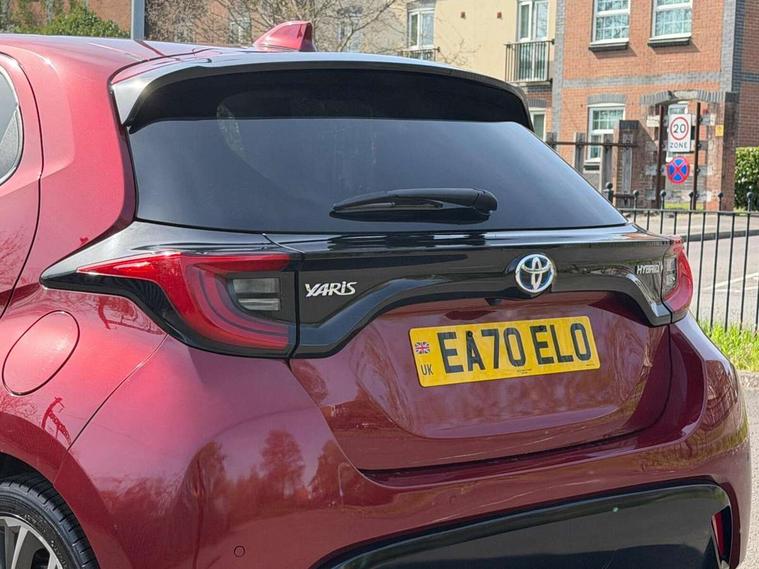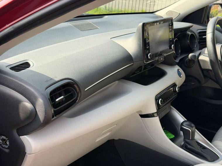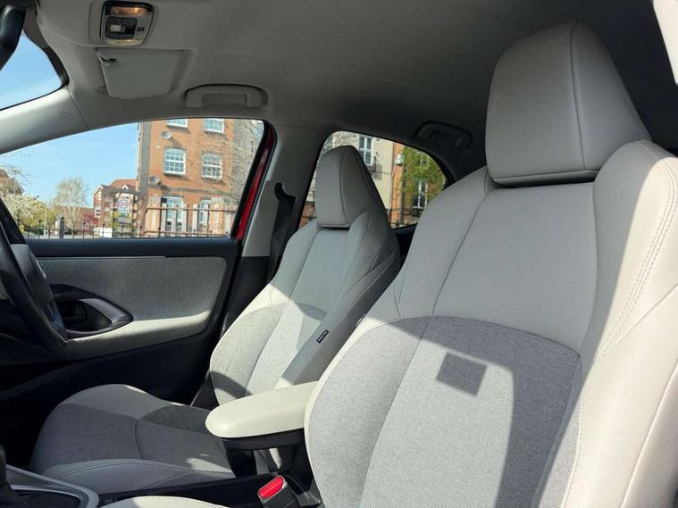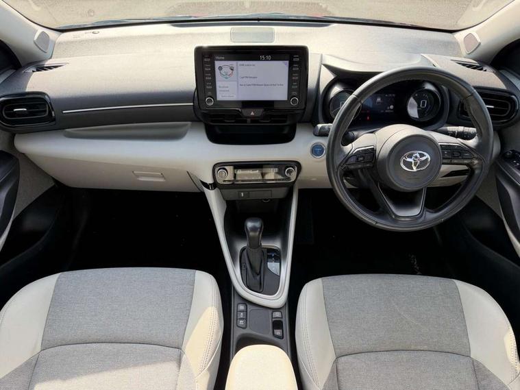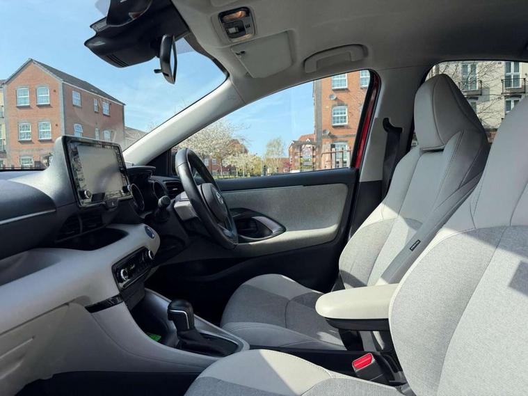 Adaptive cruise control, Adjustable speed limit with speed warning, Blind spot monitoring, Bluetooth connectivity, Colour binocular inspired displays with digital speedometer, E-call, Electric power steering, Front and rear parking sensors and intelligent clearance sonar with automatic braking, Hybrid energy display, Multi information display switches on steering wheel, Reversing camera, Smartphone integration with Apple CarPlay and Android auto, Vehicle Stability Control (VSC), 6 speakers, 8" Multimedia display touch screen, Toyota Touch 2 with DAB, USB connection, Acoustic windscreen glass, Auto windscreen wipers, Automatic headlights, Automatically retractable door mirrors, Body coloured door mirrors, Electric adjustable heated door mirrors, Follow me home headlights, Front auto power windows with anti jam protection, Full LED rear lights, LED daytime running lights, LED front fog lights, LED Headlights, LED High mounted stop lamp, Painted front grille, Rear auto power windows with anti jam protection, Rear privacy glass, Rear spoiler, Satin lower front grille, Shark fin antenna, Turning signal integrated indicators in door mirrors, 3 adjustable rear headrests, 3 spoke leather steering wheel, 60/40 split folding rear seat, Adjustbale boot height, Coat hooks in rear grab handles, Cup holders (2 front & door), Data Communication Module (DCM) connected services, Dual zone automatic air conditioning, Fabric seat with partial synthetic leather upholstery, Front armrest, Front sport seats, Glovebox, Height adjustable driver's seat, Height adjustable passenger seat, Isofix seat fixing, Leather gearshift, Map pockets on the backs of the front seats, Pollen filter, Shopping bag hooks, Tilt/telescopic steering column, 3 point seatbelts on all rear seats, ABS+EBD+Brake assist, Active headrests, Electronic parking brake, Emergency brake light system (EBS), Front passenger airbag on/off switch, Front seatbelt reminder, Hill start assist control (HAC), Rear child proof door locks, Rear seat belt reminder, Supplemental Restraint System (SRS) 8 airbags: Driver & passenger's airbags, dual side curtain airbags, side impact airbags, front centre airbag, Toyota Safety Sense 2, Precollison + Night time Pedestrian & Cyclist Detection, Lane Trace Assist, Auto High Beam, Intelligent ACC & Road Sign Assist, Tyre pressure warning system, Alarm/immobiliser, Keyless smart entry with push button start, Remote powered central double locking doors, Satin chrome interior styling, Soft touch instrument panel, Space saver spare wheel,