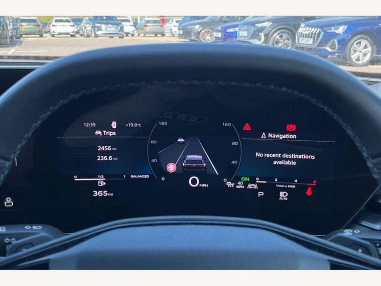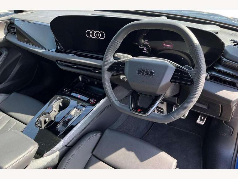 Adaptive cruise control, Advanced driver attention and fatigue montior, Audi application store, Audi assistant, Audi connect emergency call and service, Audi digital key, Audi drive select, Audi smartphone interface, Audi virtual cockpit plus with 11.9" OLED colour display, Automatic start/stop system with coasting functionality, Camera based traffic sign recognition, Intersection assist, Lane change assistant with exit warning system, rear cross traffic alert and rear turn assist, Lane departure warning with emergency assist, MMI 10.9" front passenger touch display, MMI navigation plus with high resolution 14.5" OLED touchscreen colour display, Park assist plus, Parking system plus with 360 display, Progressive steering with servotronic, Swerve assist and turn assist, Top view camera, Traffic sign based speed limiter, Sports suspension lowered by 20mm, 2 USB-C ports in both the front and rear, Audi sound system impressive sound with 10 loudspeakers including centre speaker and subwoofer, 6-channel amplifier with a total output of 180 watts, DAB digital radio reception, Smartphone compartment with wireless charging, Aluminium window trims, Auto dimming rear view mirror, Black door handles, Black roof rails, Dark chrome-plated tailpipe trims, Door mirrors - electrically adjustable, heated, folding and auto dimming on both sides, Front and rear electric windows, Front door sill trims with aluminium inlays, illuminated with 'S' logo, Headlight cleaning system, High beam assist, LED daytime running lights, LED rear lights pro incl. dynamic rear indicators and illuminated light strip with animated coming and leaving home function, LED third brake light, Matrix LED headlights with eight light signatures selectable via the MMI or the myAudi app, Privacy glass, Rear and side windows with heat insulating glass, Rear side wing doors, Rear wash/wipe, Red S line rhombus badging on rear, S line bumpers, radiator grille and diffuser in phantom black and diffuser insert in matt anthracite, White rhombus logo projection light in exterior mirrors, Windscreen with acoustic glazing, 3 rear headrests, 3 seat rear bench, 3 spoke leather steering wheel with multi-function buttons with touch control, flattened on top and bottom, with S badging and contrast stitching, 3-zone automatic climate control, 40:20:40 split folding rear seat bench with centre armrest and cup holders, Comfort front centre armrest, Electrically adjustable front seats, Front and rear floor mats, Front sport seats with integrated headrest and S embossed logo, Headlining in black cloth, Heated front seats, i-Size child seat mounting on the front passenger side and outer rear seats, i-Size and top tether on the outer rear seats, Luggage compartment lid, electrically opening and closing, Manual steering column height and depth adjustment, Memory function for driver seat, Single front passenger seat, Stainless steel pedals and footrest, Steering wheel grips in perforated leather and shift paddles, Ambient lighting package plus - A5, Black styling package plus - A5, 3x3 point rear seat belts, Acoustic vehicle alerting system, Convenience key with safelock, Driver airbag, Electric child safety locks, First aid kit with warning triangle and vests, Front emergency brake assist, Front passenger airbag, Front passenger airbag deactivation, Hill hold assist, Occupant detection in rear seat area, Proactive passenger protection system for front, sides and rear, Red brake calipers, Seat belt monitoring with rear seat occupant reminder, Side airbags in front and rear with head airbag system and front interaction airbag, Tyre pressure loss indicator, Anti theft alarm, Anti-theft wheel bolts, Keyless Go, Accent surfaces and control buttons in gloss black, Black dashboard with contrast stitching, Softwrap in Dinamica with contrast stitching, Upper and lower interior elements in dinamica microfiber, 20" 5 arm fold design Audi sport alloy wheels in silk matt grey and gloss turned finish, Tyre repair kit,