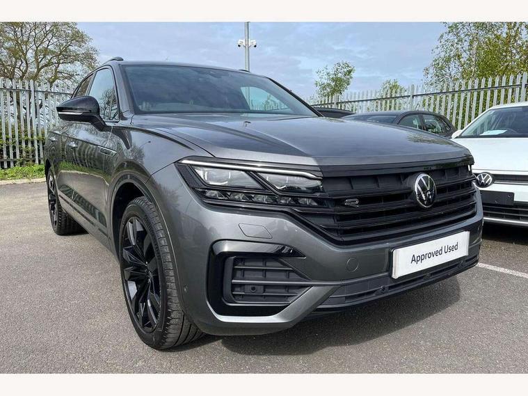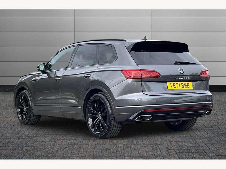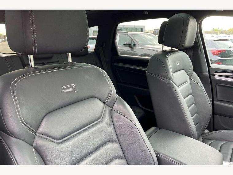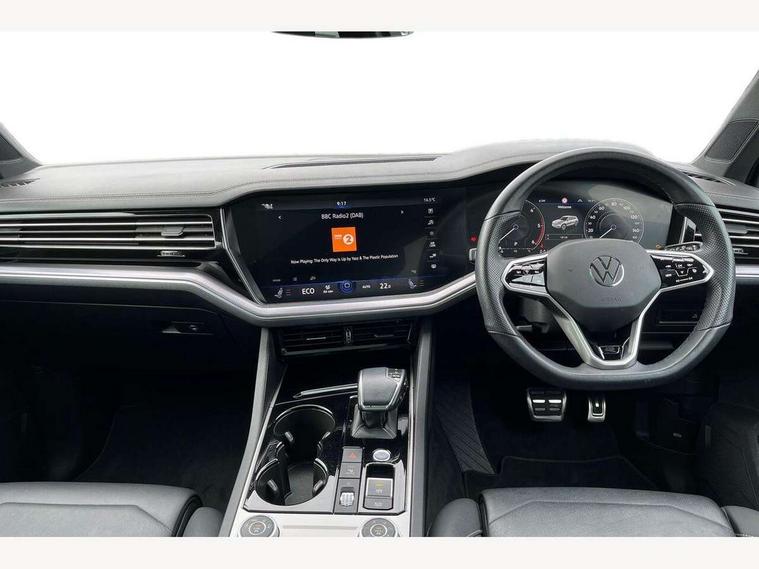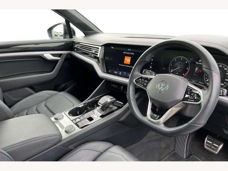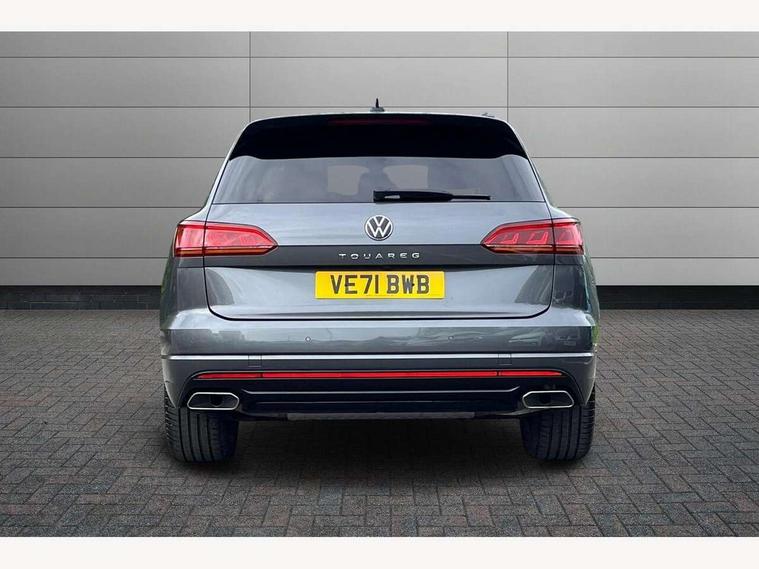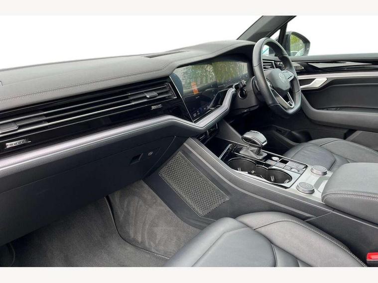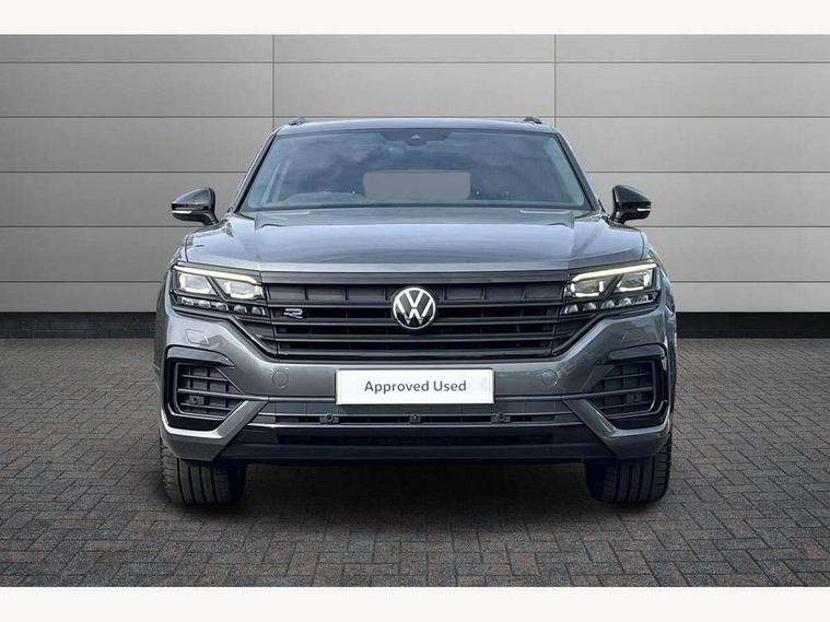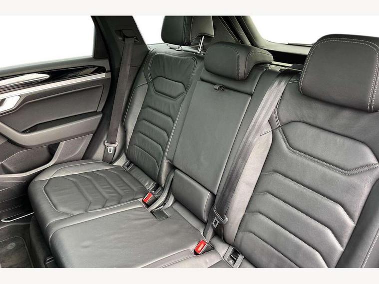 2D/3D map view, ACC - Adaptive cruise control with front assist, forward collision warning, distance monitoring, city emergency brake and speed limiter, Apple car play/Android Auto, Audible and visual fatigue detection system, Bluetooth hands free telephone connection, Car information display, Drive select with Damper control, Driver alert system, Driver profile selection, Dynamic road sign display camera controlled system with visual warning for traffic and road signs, eCall emergency system, Fully electric tailgate + keyless entry and start, Instrument cluster, MirrorLink, Multifunction camera with lane assist, Multifunction computer premium with 7" colour display, One touch indicators with repeat function, Service interval indicator, Speed sensitive power steering, Start/stop system with regenerative braking, Tailgate power latch, Think blue trainer driver tips and journey analysis, Traffic sign recognition, Voice control system, Wireless Smartphone charger, 24 litre AdBlue tank, Torsen limited slip differential, DAB Digital radio, Dynamic navigation based on TMC+, Gesture control for infotainment system, Multi device interface (MDI) with illuminated USB-C connection, Music playback - MP3, WMA and AAC files, SD card slot, Simultaneous pairing of 2 compatible mobile devices, SMS functionality - read, compose and send SMS messages using touch-screen display, Title and cover art display, Volkswagen media control, Adaptive low beam for urban and motorway use, Auto dimming rear view mirror, Automatic coming/leaving home lighting function, Automatic headlights, Black anodised roof rails, Black door mirrors, Black rear diffuser, Black side window surrounds, Black upper and lower grille louvres extending into headlights and radiator grille, Body colour door handles, Body coloured wheel arches, C signature gloss black front air intake, Chromed tailpipe on the left and right integrated in the bumper with trapezoid design, Dusk sensor, Dynamic headlight range control, Electric front tilt/slide panoramic sunroof and fixed rear sunroof, Electrically power adjustable, heated, folding, auto dimming, front passenger exterior door mirror lowering function, Front and rear electric windows, Galvanised body, Gloss black finish B pillar, Gloss black rear diffuser, Headlight washers, Heat insulating darkened glass in side and rear windows, Heated windscreen washer jets, IQ.Light-LED matrix headlight, daytime running light with dynamic cornering light and indicator, LED rear fog light, LED rear number plate lights, Plastic scuff plates in door apertures, Poor weather light, Puddle lights, Rain sensor, Rear side wing doors, Rear wiper, 12V socket in front and rear centre console and boot, 2 Coat hooks on B pillar, 3 rear head restraints, 3 spoke sport heated leather multi-function sports steering wheel with gear shift paddles - generation 2, 4 way adjustable front head restraints, 4 way electric lumbar support for driver and front passenger, 4 zone climate control, 40:20:40 split folding slide/recline rear seat, B pillar vents, Black lower edge of door extending sills, Branded points of interest, Double sun visor for drivier and passenger with LED illuminated vanity mirrors, Electric luggage compartment cover, Folding rear centre armrest with 2 cupholders, Front + rear carpet mats, Front centre armrest with storage box, Gear shift indicator, Height/reach adjust steering wheel, Illuminated air conditioned glovebox, Isofix preparation for 2 rear child seats, Jack and tool kit, Leather trimmed gear knob with gloss black inlay/aluminum trim, Leatherette door trim, LED luggage compartment lighting, Load through provision, Luggage compartment with load lashing rings, Plastic loading edge protection, Rear seat remote release levers, Soul black headlining, Stainless steel pedals, Innovision cockpit pack - Touareg, 3 point front seatbelts with pre-tensioners, ABS, Active bonnet, Automatic post collision braking system, Curtain airbags, Driver/Front Passenger airbags, EBD + Brake Assist, EDL, Electronic parking brake with auto hold, ESC with ASR, Front seat side impact airbags, Hill descent control, Hill start assist, Passenger airbag deactivate switch, Seatbelt warning lamp and buzzer, Three 3 point rear seatbelts, Two tone horn, Volkswagen roadside assistance, Warning triangle and first aid kit, Alarm with interior monitoring in cab, backup horn and towing protection, Child security locks for front and rear doors, Electronic engine immobiliser, Remote central locking, Black decorative trims on the side windows, High gloss black centre console,