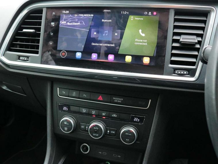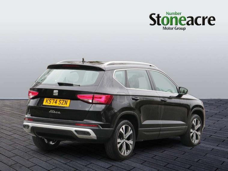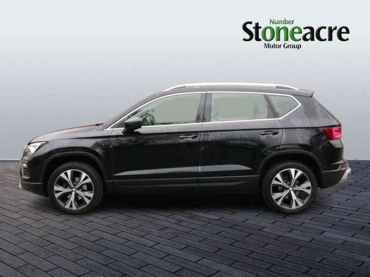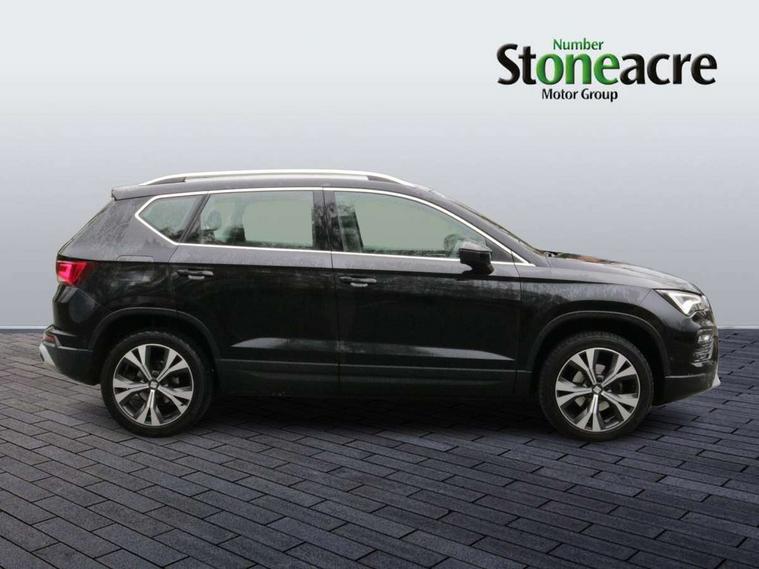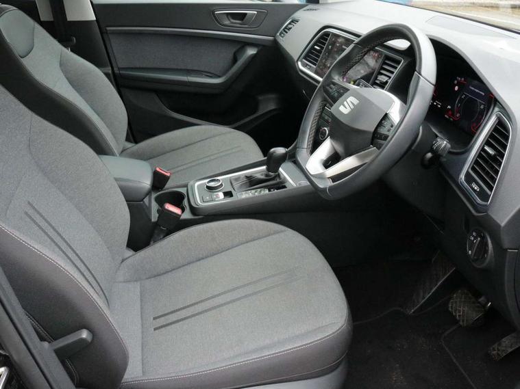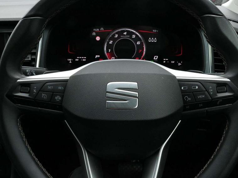 8" Digital cockpit, Colour multi-function on board computer display, Cruise control system with speed limiter, E-call, Outside temperature gauge, PAS, SEAT drive profile with driving experience button - Normal, Sport, Eco and Individual mode, gearshift, steering and throttle response, Self parking functionality (includes front and rear parking sensors), Start/stop system, Tailgate, Trip computer, wired and wireless full link smartphone integration, Wireless phone charger, Steering wheel mounted audio/phone controls, Black wheel arch surrounds, Body colour bumpers, Chrome front grille frame, Chrome roof rails, Chrome side window trim, Daytime running lights, Door mirrors with welcome light silhouette, Dynamic headlight range control with self adjusting whilst driving, Electric adjustable/heated/folding door mirrors, Front and rear electric windows, Full LED headlamps with lens and LED front fog lamps with cornering function, LED 3rd brake light, LED rear tail lights, Rear exhaust tailpipe, Rear fog lights, Rear side wing doors, Rear wash/wipe, Variable front intermittent wipers, 12V socket in front, 3 seat bench in 2nd row, 60/40 split folding rear seat, Cloth upholstery with front comfort seats, Drawer under right front seat, Dual zone climate control, Front and rear head restraints, Front centre armrest, Front seat back storage pockets, Height adjustable driver and passenger seat with lumbar adjustment, ISOFIX points in outer rear seats with top tether anchorage points, Leather sports steering wheel and gear knob, Rear armrest and easy back seat release mechanism from boot, Single front passenger seat, Steering wheel mounted gearshift paddles, Convenience pack - Ateca, Interior lighting pack - Ateca, Navigation system pack with DAB - Ateca, Safety and driving pack with attention and drowsiness assist - Ateca, 3x3 point rear seatbelts, ABS, Traction control system (TCS), Electronic stability control (ESC) and Electronic differential lock system (XDS), Airbags - Driver and front passenger airbag with deactivation, front side, two curtain and driver's knee airbags, Electric parking brake with auto hold function, Front and rear seatbelt reminder, Front assist with autonomous emergency braking, Hill hold control, Manual rear child locks, Single tone horn, Tiredness recognition system, Tyre pressure monitoring system, Alarm, Keyless entry, Locking wheel bolts, Remote central locking, Chrome interior detailing, 18" Performance machined alloy wheels 36/2 in nuclear grey,