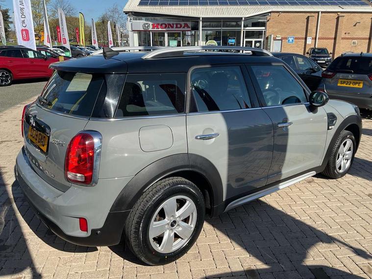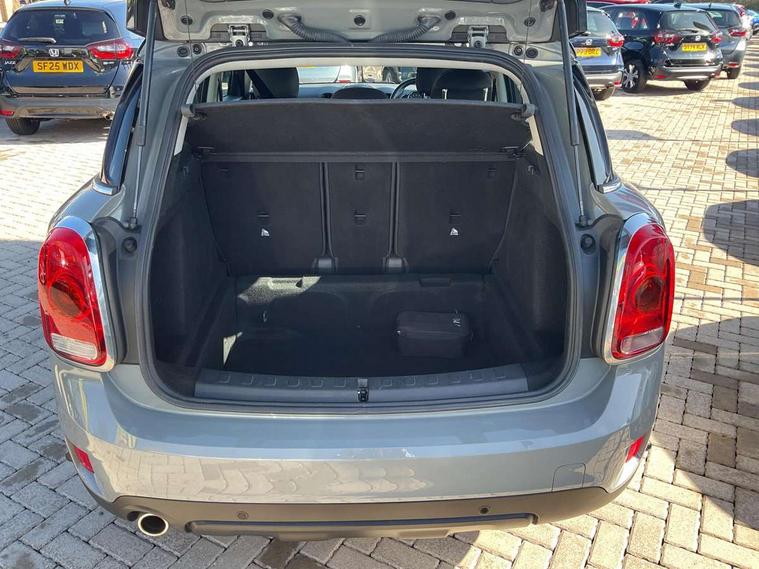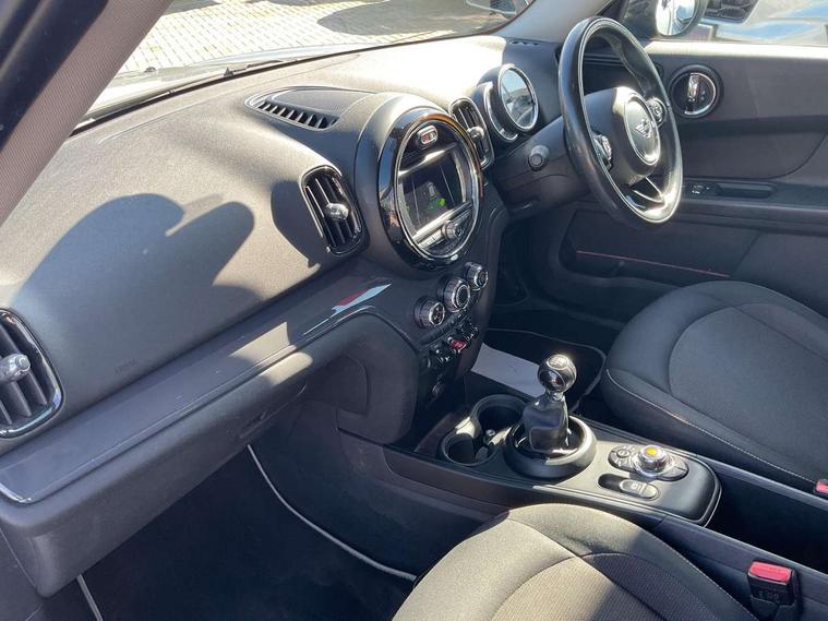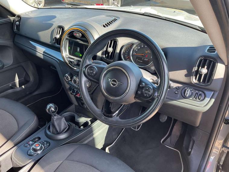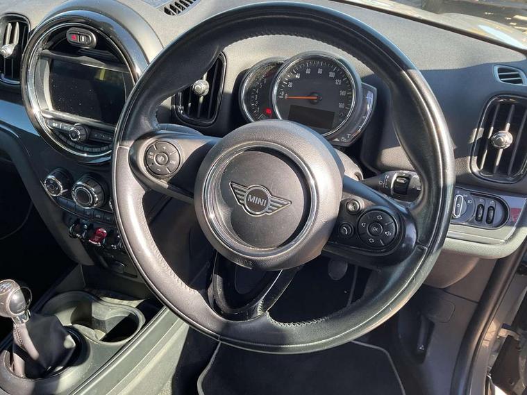 Active Guard incl speed limiting and lane departure functions with auto steering, and front collision warning with brake intervention, Automatic start/stop function with brake energy recuperation, Electro-mechanical speed dependant steering assistance, Instrument cluster, Mini E-call, MINI TeleServices, On board computer, Rear parking distance control, Double Vanos system, Fully variable valve control, High precision injection, FM tuner and DAB digital radio, Body colour fuel filler cap, Day time driving lights, Door sill strips, Dynamic brake lights, Electric windows, Heated rear window, Heated windscreen washer jets, Left exhaust tailpipe with chrome finisher, Model logo, Model logo on Tailgate, Radiator grille, Rain sensor with auto headlights, Rear fog lights, Rear window wiper, Side scuttle panel with integrated indicator, Split rear doors, Sun/heat protection glass, White indicator lenses, 12V Accessory socket in centre console, 360L luggage compartment capacity, 4 lashing eyes in luggage compartment, 40:20:40 split folding rear seats, Chrome interior highlights, Colour line - Carbon black, Cupholders, English handbook, Front headrests, Glove compartment, Headliner with grab handles and clothes hooks, Height and length steering column adjustment, Isofix rear child seat preparation, Leather gearshift lever and handbrake gaiters, LED reading lights, vanity mirror lights, front foot well light and spotlight on front seats, Manual air conditioning, Mechanical seat adjustment, driver seat height adjust, forward/back and front seats backrest, Multifunction steering wheel, Passenger seat height adjuster, Rear headrests, Storage compartments in doors, Sunvisors with vanity mirrors, Tool kit, Excitement pack - Countryman, Navigation pack - Countryman, 2 tone horn, 3 point seatbelts on all seats, 6 Airbags - front, side, head and seat belt tensioners, Anti-lock braking system (ABS), DSC - Dynamic Stability Control, Electronic handbrake, Front and rear disc brakes, Hill start assist, Tyre pressure monitoring system, Alarm system with tilt sensor, monitoring doors, bonnet interior and tailgate, Auto drive away locking, Deadlocking function, Electronic vehicle immobiliser, Locking wheel bolts, Start/stop toggle with keyless go,