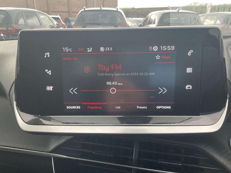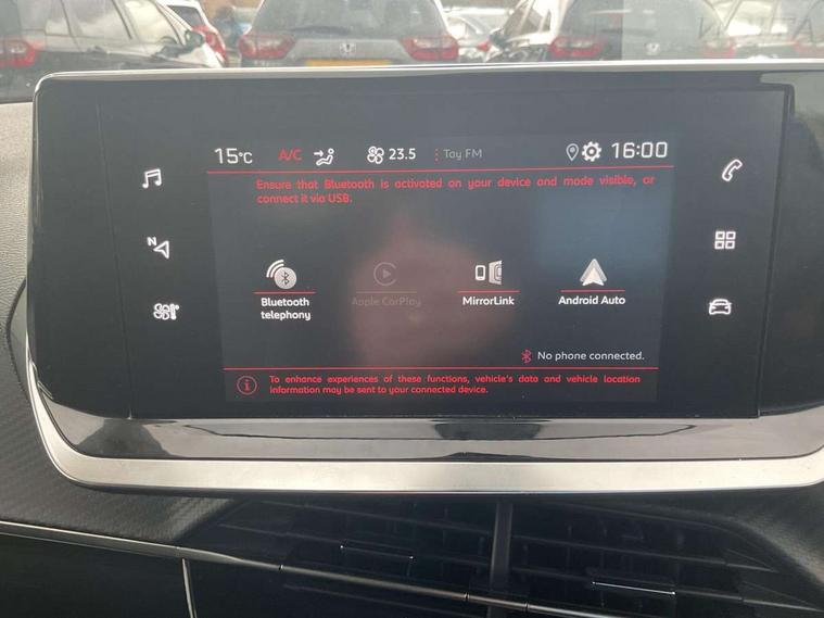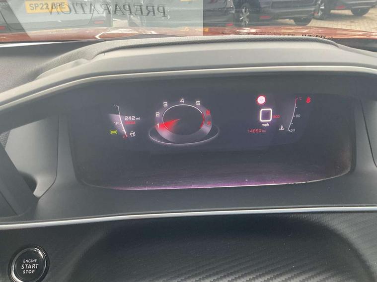 Bluetooth telephone facility, Driver attention warning, E-call, Exterior temperature indicator with ice warning, Lane keep assist, Mirror screen with mirror link, apple carplay and android auto, Multi function trip computer, PEUGEOT i-Cockpit with compact steering wheel, PEUGEOT i-Cockpit with configurable 3D headup instrument panel, PEUGEOT SOS and assistance, Rear parking sensor, Smart phone docking station, Speed limit recognition and recommendation, Start/stop system, Visio Park 1 with 180 degree Colour reversing camera, 2 front USB socket with USB-C, 2 USB sockets in rear, 6 speakers radio with mp3 compatible, DAB Radio (Digital Audio Broadcasting), Voice recognition for radio, navigation and telephony features, 2 X Rear number plate lights, Automatic front windscreen wipers, Automatic hazard light activation upon heavy brake application, Black front wing trim with gloss black detail, Body coloured exterior door handles, Chrome Lion Badge front and rear, Colour coded rear spoiler, Colour coded roof, Dark tinted rear side and tailgate windows, Diamond black mirror shells, Eco LED headlights, Electric, heated, and power folding door mirrors, Electrochrome rear view mirror, Front bumper - Silver lower trim, Gloss black finish on B pillar, Gloss black longitudinal roof rails, Gloss black rear cluster connecting strip, Gloss black roof bars, Headlights left on audible warning, LED daytime running lights with distinctive tooth design, LED third brake light, Model designation badges front and rear, One touch electric front/rear windows with pinch protection, Radiator grille - gloss black top edge trim, Radiator grille chrome chequered, Rear full LED 3D peugeot signature claw effect lights with daylight function, Rear reversing lights, Rear side wing doors, Rear windscreen wiper triggered automatically in reverse gear, Tailgate with heated rear windscreen and wiper blade, Trailer Stability Programme, Variable front intermittent wipers, Wheel arch extensions, 1/3 to 2/3 split folding rear seats, 12v power outlet - front, 12V socket, 3 seat bench in 2nd row, Automatic air conditioning with pollen and active carbon filter, Central front armrest with storage compartment, Driver and front passenger comfort seats, Driver seat manual adjustment - height, longitudinal and back rest angle, Electric power steering with reach and rake adjustable steering column, Front centre armrest, Front LED interior light with 2 reading spotlights and rear interior light with timer, Front passenger seat manual adjustment - height, longitudinal and back rest angle, Gear lever top - manual in full grain leather, Gear shift indicator, High centre console, Leather steering wheel, Mint green contrast stitching to front centre console, door panels and dashboard facia, Modular boot floor, Multifunction steering wheel, Piano keys: Gloss black and chrome toggle switches to access main functions of the vehicle, Roof lining - light grey, Seatbelt unfastened on the move audible and visual alert for front and rear seats, Single front passenger seat, Switch for Push Button Start finished in black with chrome surround, Tri material cloth/leather upholstery, Visibility pack - 2008, 2x 2nd row ISOFIX child seat mountings, ABS (Anti-lock Braking System) with EBD (Electronic Brakeforce Distribution) and EBA (Emergency Braking Assistance), Acoustic vehicle alerting system, Active safety brake with night function/cyclists/pedestrians, Adaptive driver and front passenger airbags with passenger airbag deactivation function, Child locking functionality on rear doors, Driver/front passenger side airbags, Electric parking brake, ESP (Electronic Stability Program) + Hill Start Assist, Front and rear curtain airbags, Front and rear disc brakes, Front and rear three-point retractable seatbelts, with force limiters, Front optimised safety headrests and rear retractable headrests (x3), height adjustable, Tyre pressure sensor, Alarm system with anti-lift sensor, Automatic door locking when moving off, Deadlocks, Electronic code immobiliser, Exterior door lock x1 (Left-hand or passenger’s side), Remote central locking, Carbon effect Dashboard, front and rear door panel finish, 17" Salamanca diamond cut alloy wheels,
