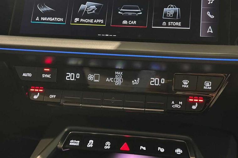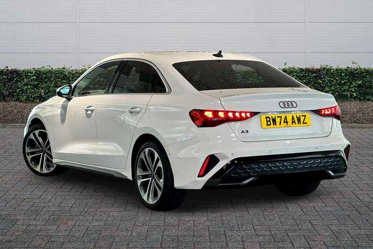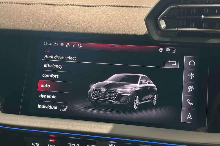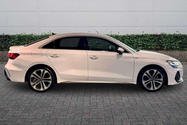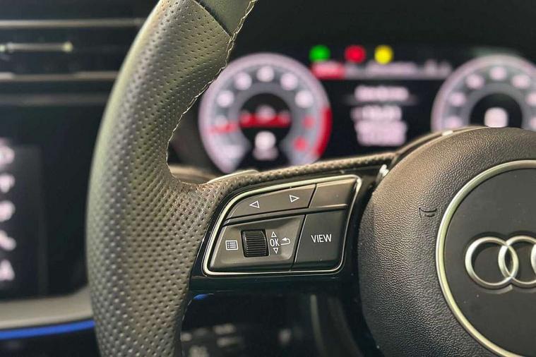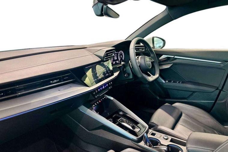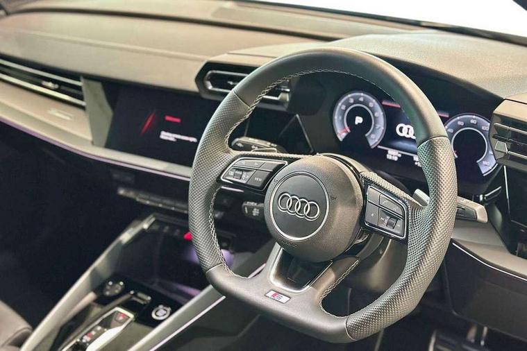 Adjustable speed limiter, Audi drive select, Audi smartphone interface with app store includes wireless Apple carplay, Android auto and Amazon alexa integration, Audi virtual cockpit plus - 12.3" full HD resolution dynamic digital instrument cluster, Automatic start/stop system with recuperation, Bluetooth interface, Camera based traffic sign recognition, Collision avoidance assistant, Cruise control, Distraction and Fatigue warning, e-Call (emergency call), Electromechanical power speed sensitive steering, Lane departure warning system, MMI Navigation Plus with high resolution 10.1" colour touch screen display, Park Assist with parking system Plus, Service indicator, Trip computer, Voice control system with natural language interaction, Sports suspension, Audi Phonebox light with wireless charging, Audi sound system - 10 loudspeakers including centre loudspeaker and subwoofer, DAB Digital radio, USB ports with charging function in the rear, Acoustic glass windscreen, Aluminium window trim, Auto dimming frameless rear view mirror, Body colour exterior mirrors, Chrome exhaust tailpipes, Electrically adjustable/heated/folding/auto dimming door mirrors with integrated LED indications + kerb view function for passenger side, Exterior model badging, Front and rear side air inlets in grained matt black with dark liquid chrome frame, Front electric windows, Front radiator grill in high gloss dark chrome, Heat insulating glass windscreen, Illuminated door sills with aluminium inserts at the front with S logo, LED 3rd brake light, LED daytime running lights, LED headlights with LED rear lights and dynamic rear indicators, Light and rain sensors, Privacy glass - dark tinted rear window, rear door and side windows, Rear boot, Rear diffuser and grill in grained matt black with inlay in dark liquid chrome, Rear electric windows, Rear side wing doors, S line bumpers, Side S line emblems on front wings, Side sill trim in dark liquid chrome, 12V socket and storage compartment in front centre console, 3 seat bench in 2nd row, 3 spoke flat bottomed leather multifunction sport steering wheel with gear shift paddles, 3-zone deluxe automatic air conditioning, 4 way electrically adjustable lumbar support for driver and front passenger, 40/20/40 split folding rear seat bench, Black cloth headlining, Front and rear centre armrest in artificial leather, Front and rear centre armrest in artificial leather with contrasting stitching on armrests and instrument panel, Front and rear headrests, Front/rear floor mats, Heated front seats, Height and reach adjustable steering wheel, Manual boot compartment lid, Manually adjustable front seats, Rear cup holders, S badging on the steering wheel, Seat side bolsters, Single front passenger seat, Stainless steel pedals and front footrest in black, Twin leather upholstery with front sports seats S embossed logo, Aluminium interior elements pack - A3, Multi-coloured LED interior lighting package - A3, 3x3 point rear seat belts, Driver and front passenger airbag with passenger airbag deactivation, Electronic Stabilisation Control (ESC) including ABS, ASR and EDL, First aid kit with warning triangle and 2 safety vests, Front side airbags with head airbags and interaction airbag, Hill hold assist, Pre-sense front with pedestrian and cyclist detection, Seatbelt monitoring, Tyre pressure loss indicator, Anti theft alarm, Anti-theft wheel bolts, Electronically operated child locks, Immobiliser, Remote central locking with safelock, Dash & door Inlay in dark aluminium Spectrum,