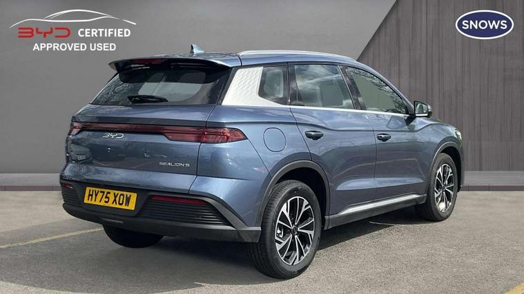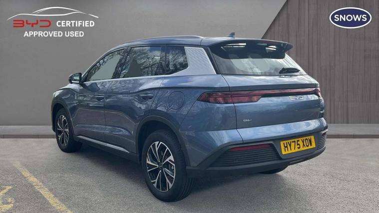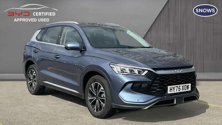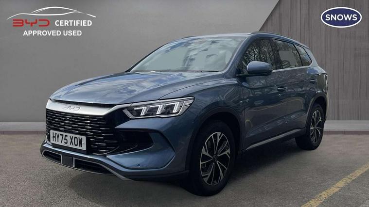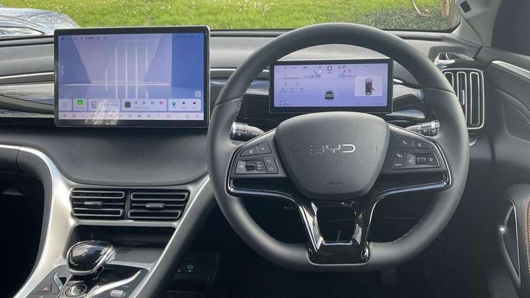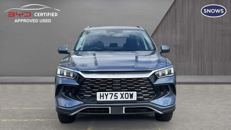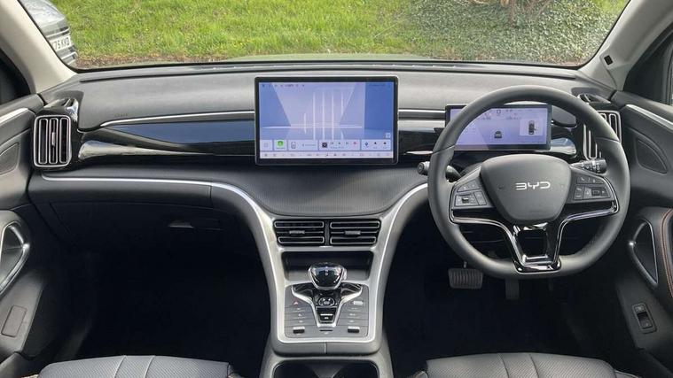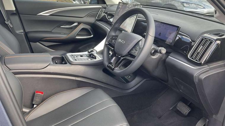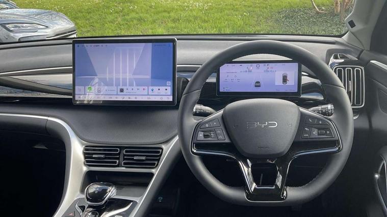 360 degree view camera, 8.8" TFT full LCD instrument panel, Adaptive Cruise Control (ACC) and Intelligent Cruise Control (ICC), Apple CarPlay and Android Auto, Automatic vehicle hold, Blind spot detection, Cloud service - BYD APP, Controller Deceleration Parking (CDP), Drive mode select (Eco, normal, sport, snow), Driver monitoring system, e-Call (emergency call), Electric tailgate, Emergency Lane Keeping Assist (ELKA), Forward collision warning, Front parking radar, Intelligent Speed Limit Control (ISLC), Intelligent voice control - "Hi BYD", Lane departure assistant with lane departure warning and lane departure prevention, Onboard 4G connectivity, PAS, Rear collision warning, Rear cross traffic alert and rear cross traffic brake, Rear parking radar, Smartphone wireless charging - 1 x 15W single charge, Traffic sign recognition (TSR), 3.3kW On-Board charger, 12.8" Electrically rotatable touchscreen, 6 speakers, FM/DAB+ radio, Front and rear USB ports - 1 x 18W Type C + 1x 60W Type C, Aluminium roof rails, Automatic headlights, Automatic rain-sensing boneless wipers, Dynamic welcome lights, Electric adjustable door mirrors, Electric folding and heated door mirrors, Exterior mirror footlights, Follow me home headlights (The headlights turned on in advance and delayed off function), Front windscreen, UV protection, thermal insulation and sound proofing, High beam assist, LED 3rd brake light, LED daytime running lights, LED Headlights, LED taillights, Manual dimming interior rear view mirror, One touch electric front/rear windows with pinch protection, Rear side wing doors, Rear wiper, 12V power outlet, 3 seat bench in 2nd row, 4 way electrically adjustable front passenger seat, 6 way electrically adjustable drivers seat, Boot parcel shelf, Driver and passenger sunvisors with illuminated vanity mirrors, Front centre armrest, Front LED reading lights, Front seat footlights, Heated front seats, Height and reach adjustable steering wheel, Integrated headrest in front seats, ISOFIX and i-Size for front passenger and outer rear seats, LED front door lights, PM2.5 air filter, Rear air vents, Rear armrest with 2 cupholders, Rear seats with manually adjustable headrest, Rear side LED reading lights, Single front passenger seat, Split folding rear seats - 40/60, Trunk light, Vegan leather multifunction steering wheel, Vegan leather upholstery, 3x3 point rear seatbelts, ABS, Automatic emergency braking system, Brake override system (BOS), Child presence detection, Comfort stop, Door open warning, Driver airbag, Electric parking brake, Electronic brake distribution, Force limiting pre-tensioned front seat belts, Front centre airbag, Front passenger airbag with deactivation switch, Front side airbags, Hill hold control, Hydraulic Brake Assist (HBA), Hydraulic brake boost, Mechanical child safety lock, Pre-tensioned outer rear seat belts, Rear middle seat force limiting seat belt, Side curtain airbags, Traction control system (TCS), Tyre pressure monitoring system (TPMS), Vehicle Dynamics Control System (VDC), 2 x Smart keys, Alarm, Automatic door locking, Immobiliser, Keyless entry and keyless start, 18" Bi-colour alloy wheels, Tyre repair kit,