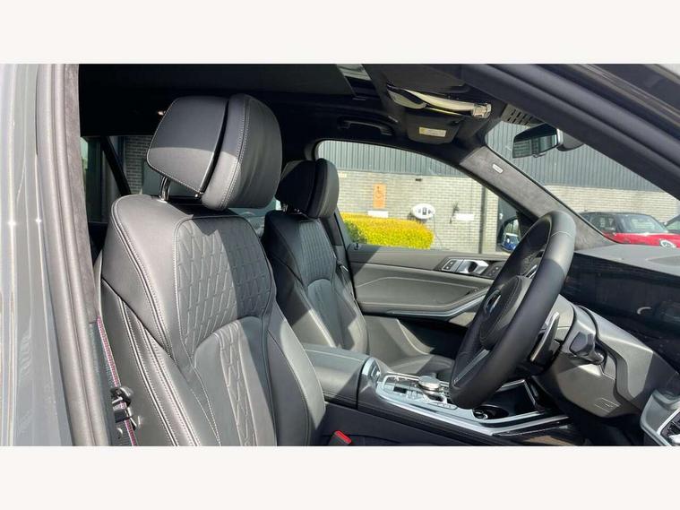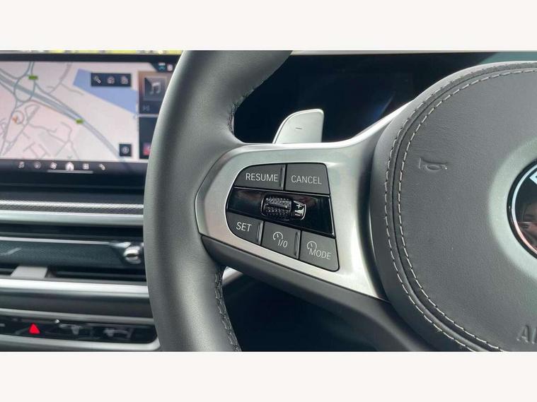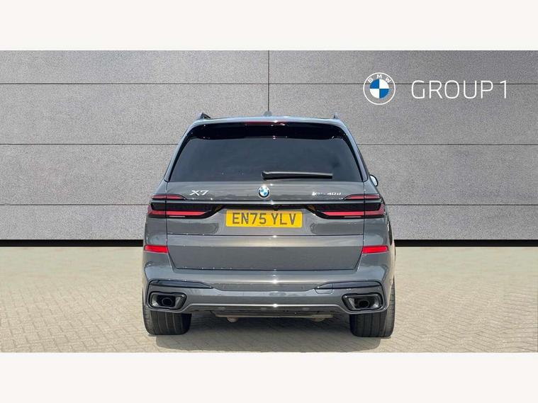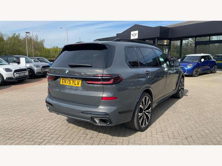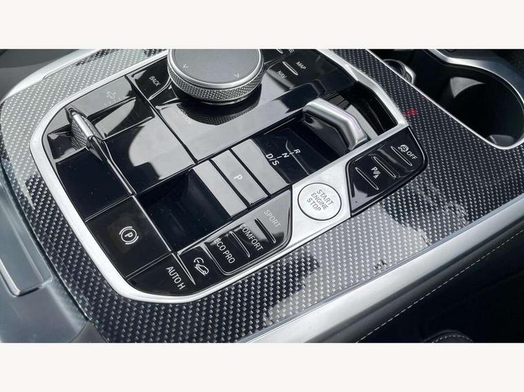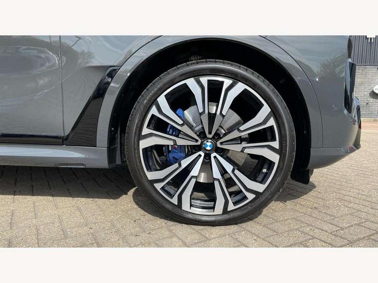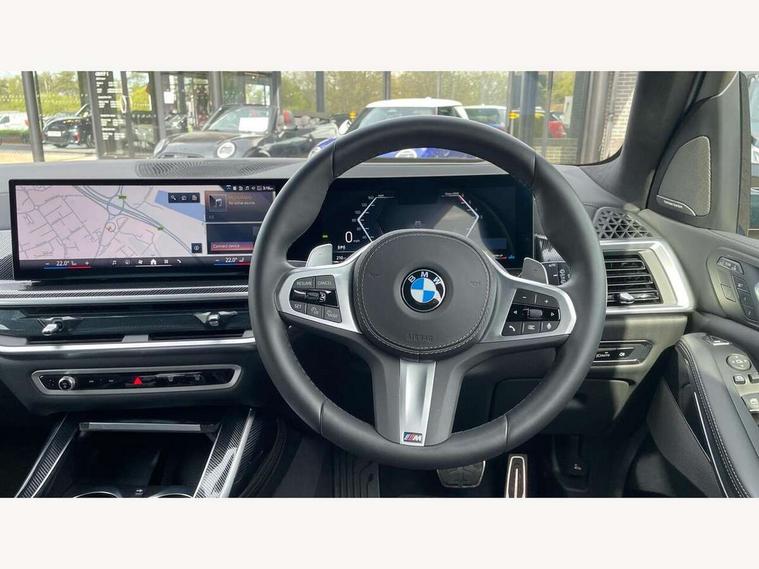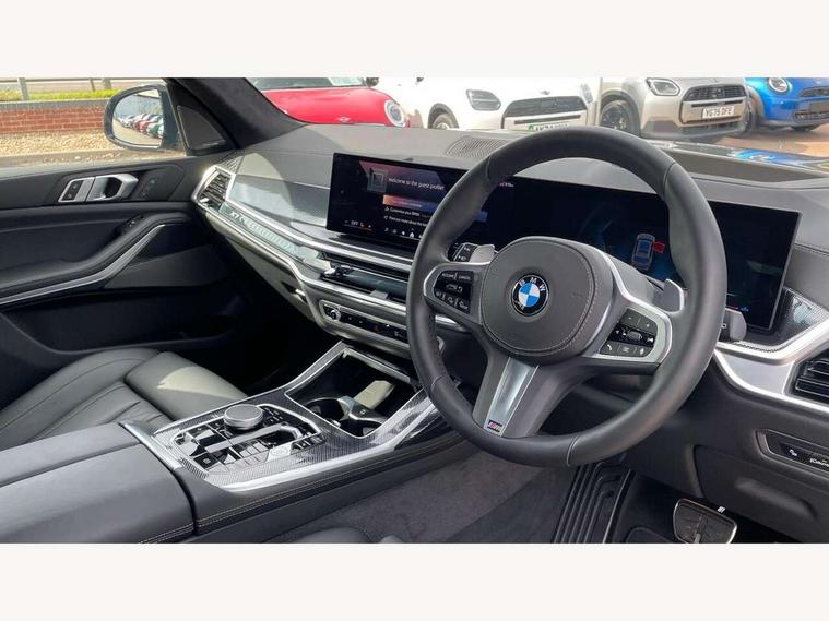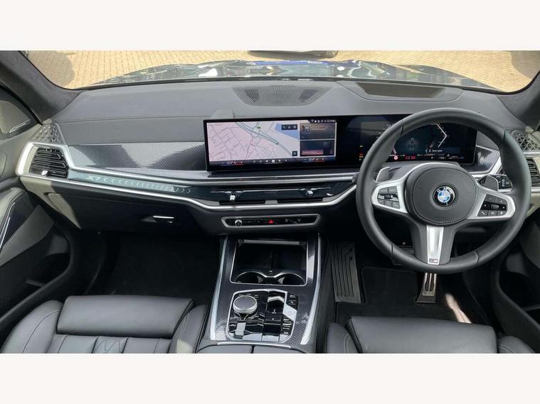 Attentiveness assist, Automatic start/stop function, Automatic tailgate operation, BMW ConnectedDrive online services, BMW Drive recorder, BMW gesture control, BMW Teleservices, Brake pad wear indicator in front and rear, Condition based service, Integrated owner's handbook, Live Cockpit Professional with head up display including 12.3" instrument cluster and 14.9" central display, Parking assistant pro including reversing assistant, PDC, lateral parking aid, reversing assist camera, parking drive off monitoring, 48V Mild hybrid technology, 8 speed automatic with steptronic transmission including automatic hold function and gearshift paddles on the steering wheel, Drive experience switch with comfort mode + ECO PRO + sport mode, Front and rear air suspension, Permanent all wheel drive, 2 rear USB-C ports, 2x Front USB (1x USB-C, 1x USB-A), DAB radio, Personal eSim, Acoustic glazing, Adaptive air flap control bars in high gloss black, Air breather and door claddings in high gloss chrome, Body coloured wheel arches, Dynamic brake lights with LED technology, Electrically adjustable and heated aspheric folding side mirrors with auto dimming, electric fold in function, automatic parking function, Exterior and central air inlets in front bumper painted pearl chrome, Follow me home headlight function, Frameless interior mirror, Front and rear electric windows, Heated windscreen washer nozzles, High beam assist, High gloss black shadow line roof rails, High gloss black shadowline trim in side/window frame, window recess cover, window guide, B and C pillar, mirror triangle, mirror base, mirror frame, Integrated turn indicators (door), LED daytime running lights, LED rear lights, LED third brake light in rear spoiler, Rain sensor with automatic headlight activation and windscreen wiper control, Rear side wing doors, Side window graphic bars + B and C pillar trim panels in black high gloss, Sump guard front and rear painted in silver, Trailer stabilisation logic, 12V - Power sockets with 2x centre console and 1x luggage compartment, 2 seat bench in 3rd row, 2x cupholders in front, rear centre armrest and two in third row seats, 3 seat bench in 2nd row, 3 spoke M leather multifunction steering wheel, 40:20:40 split folding rear seat backrests, Ambient lighting strip in the instrument panel with illuminated, Armrest in front centre console, Compartment in front of cupholder, Driver and front passenger sunvisors with illuminated vanity mirrors and ticket holder, Electrical steering column with adjustable height and length with activation and control on the steering column, Entry sills with illuminated M inscription, Fold down flush into floor of luggage compartment 50:50, Front and rear colour co-ordinated with all standard carpet colours, Front and rear door pockets, Front and rear side armrests integrated into door trim, Front seat back pockets, Grab handles, Height adjustable front headrests, Height adjustable rear headrests, Lockable glove compartment, Nano filter, Single front passenger seat, Soft close doors, Storage tray and compartment with lid in centre console, Wireless charging tray, Additional storage compartment pack - X7, Ambient light interior pack - X7, Connected Package Professional - X7, Interior lighting pack - X7, Luggage compartment pack - X7, M aerodynamics pack - X7, M Sport pack - X7, 3 point seatbelts on all seats, front pyrotechnic belt tensioners, stopper and belt force limiters, front and outer rear seats, Acoustic protection for pedestrians, Active protection, Airbag - Front driver and passenger, side airbags and Head airbags, Anti lock braking system (ABS) with cornering brake control, BMW emergency call, Child seat ISOFIX attachment rear outer seats in 2nd row and both seats in 3rd row includes top tether, Comfort access system with digital key plus, Comfort cushion seats for outer seats in 2nd row, Crash sensor inclu activation of airbags, interior light, safety battery terminal clamp, hazard warn flasher, unlock doors, deactivation of fuel pump, DSC - Dynamic Stability Control, Dynamic Traction Control - DTC, Electromechanical parking brake with automatic drive away release and auto hold function, Front and rear brake discs with interior ventilation, Hill descent control, Integrated braking system, Manual child lock in rear doors, PC iBrake PostCrash approach control warning with light braking function, Tyre pressure monitoring system, Tyre pressure sensors, Variable torque distribution, Warning triangle and first aid kit, Alarm, Central locking including 2 vehicle keys with integrated emergency key, Engine immobiliser, Locking wheel bolts, Galvanic embellisher for controls,