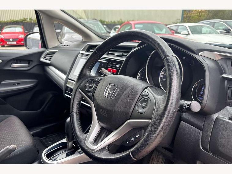 Adaptive motion for electric power steering, Bluetooth hands free telephone connection, Connect with 7" touchscreen, Digital Radio CD/Mp3, Aha app integration, internet browsing, Cruise control with speed limiter, Emergency stop signalling system, Forward collision warning, Front and rear parking sensors, Idle stop, Intelligent speed assist, Lane departure warning system, Multi-information display, Rear view camera, Traffic sign recognition, Vehicle stability assist, 'Shark fin' mobile antenna, 2x USB and HDMI, 6 speakers, Steering wheel mounted audio controls, Automatic coming/leaving home lighting function, Automatic headlights with dusk sensor, Automatic rain sensing wipers, Body colour door handles, Body colour door mirrors, Body coloured bumpers, Drivers one touch power window up/down, Electric heated + adjustable door mirrors, Electrically retractable door mirrors, Front and rear power windows, Front fog lights, High beam assist, LED daytime running lights, LED Headlights, LED high level brake lights, One touch passenger power window up/down, Rear privacy glass, Rear wiper with intermittent and reverse linked, Automatic climate controlled air conditioning, Centre console accessory socket, Cloth upholstery, Driver seat back pocket, Driver's seat height adjustment, Driver/passenger sunvisors and vanity mirrors, Front accessory power socket, Front map lights, Front/rear courtesy lights, Gear shift indicator, Height adjustable passenger seat, Isofix child seat restraint mechanism, Leather gear knob, Leather steering wheel, Luggage area under floor storage box, Magic seat flexibility system, Paddle shift controls, Passenger seat back pocket, Rear head restraints, Rear parcel shelf, Reclining rear seats, Tilt/telescopic adjustable steering wheel, Trunk light, 3x3 point rear seatbelts, ABS/EBD, Active city braking, Anti-whiplash front headrests, Brake assist function, Deflation detection system, Driver's side SRS airbag, Dual front SRS airbags, Front and rear curtain airbags, Front and rear seat belt with emergency locking retractor, Front side airbags, Hill start assist, Passenger SRS airbag cut-off device, Honda super locks, Immobiliser, Security alarm, Smart entry + Smart start, 16" alloy wheels, Tyre repair kit,
