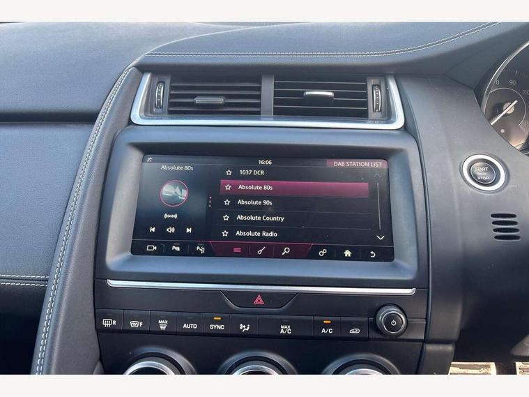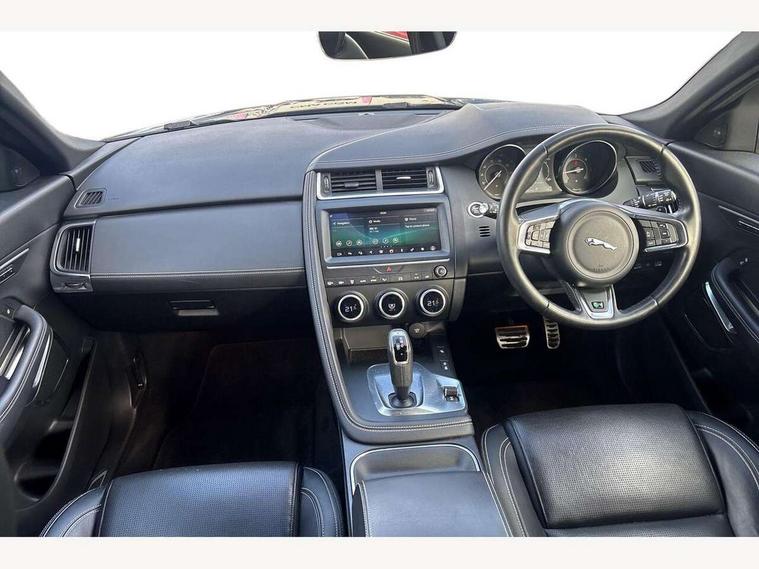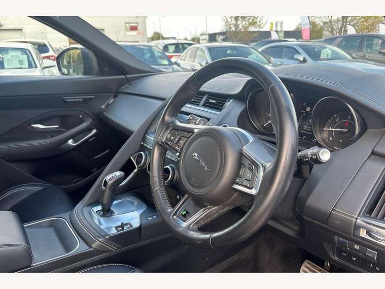 Driver condition monitor, Eco driving style assistant, Electric power assisted steering, InControl remote, InControl Touch navigation pro, Lane keep assist, Misfuelling protection device, Outside temperature gauge, Push button starter, Speed proportional steering, Start up sequence with movement in dials and lighting, Traffic sign recognition with adaptive speed limiter, Trip computer, Voice control system, Diesel particulate filter, Efficient Driveline, Passive suspension, AM/FM DVD MP3 radio, Bluetooth connectivity including audio streaming, DAB Digital radio, Dynamic volume control, InControl app, 3 flash lane change indicators, Approach Illumination, Auto dimming rear view mirror, Auto high beam assist, Automatic headlights, Body colour side cladding, Electric folding auto dimming and heated door mirrors with memory + Signature approach lamp, Electric front/rear windows with one touch/auto up/down, Front fog lights, Heated door mirrors, Heated front windscreen, Heated rear window with timer, Heated washer jets, Jaguar script and leaper, R Dynamic badge, R Dynamic body colour bumpers, Rain sensor windscreen wipers, Rear fog lights, Tailgate spoiler, Twin tailpipes with finishers, 12V power socket in rear, 2nd row 60/40 split/fold, 2nd row air vents, 3 seat bench in 2nd row, 4 Load area hooks, Black gearshift paddles, Centre armrest console, Centre headrest in row 2, Dual zone automatic climate control, Elasticated loadspace side strap, Front head restraints, ISOFIX on outer rear seats, JaguarDrive selector, LED lighting in overhead console, Loadspace cover, Loadspace lamp, Metal pedals, R branded leather steering wheel, Storage net in luggage compartment, Sunvisors with illuminated vanity mirrors, Tie down hooks in luggage area, Twin front covered cupholders, 3x3 point rear seatbelts, ABS, All surface progress control (ASPC), Customer configurable autolock, DSC - Dynamic Stability Control, Electronic brake force distribution, Electronic parking brake, Emergency brake assist, Front airbags with passenger seat occupant detector, Front and rear curtain airbags, Front and rear seatbelt reminder, Front side airbags, Hill start assist, Low friction launch, Power child locks, Torque vectoring brake, Tyre pressure monitoring system, Intrusion sensor and alarm, Locking wheel nuts,