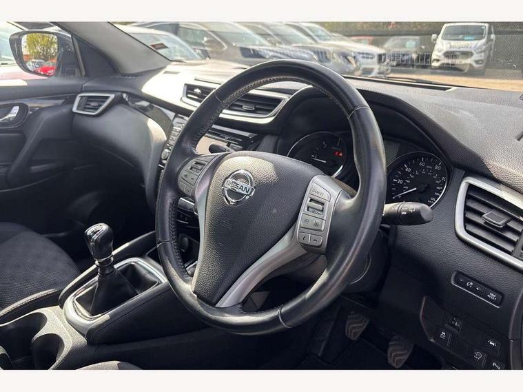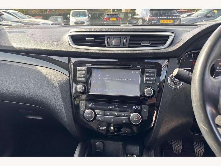 5" TFT driver information centre, 7" touch screen, Around View Monitor, Bluetooth phone integration system, Cruise control, Front and rear parking sensors, Lane departure warning system, Nissan connect sat nav system, Push button starter, Service interval indicator, Speed limiter, Speed sensitive power steering, Traffic sign recognition, Trip computer, Diesel particulate filter, 6 speakers, DAB radio/CD player, Steering wheel mounted audio controls, USB/aux input socket, 2 speed wipers+variable intermittent wipe, Automatic headlamp activation, Black honeycomb front grille, Body colour bumpers, Body colour door mirrors and handles, Chrome window surround, Electric folding and heated door mirrors, Electric front/rear windows, Front fog lights with chrome surrounds, High beam assist, Interior mirror with auto anti dazzle, LED daytime running lights, Rain sensor windscreen wipers, Rear privacy glass, Rear wiper, 12V socket, 60/40 split folding rear seat, Ambient interior lighting, Cloth upholstery, Driver's lumbar support, Driver/passenger front seatback pockets, Dual zone climate control, Footwell ambient lighting, Front armrest, Front cupholders x 2, Front headrests, Front seat belt pre-tensioners with load limiters, Height adjustable driver's seat, Height adjustable passenger seat with lumbar support, Illuminated glovebox, Isofix child seat preparation, Leather gearknob, Leather steering wheel, Luggage area divider, Map reading lamp, Pollen filter, Rake/reach adjustable steering wheel, Rear armrest with 2 cupholders, Rear headrests, ABS, brake assist and EBD, Active Trace Control, Child locks on rear doors, Curtain airbags, Driver/front passenger airbag, Electronic parking brake, ESP + traction control, Forward emergency braking, Height adjustable front seatbelts, Hill start assist, Side airbags, Three 3 point rear seatbelts, Tyre pressure monitoring system, Warning triangle and first aid kit, Alarm, Immobiliser, Intelligent Key, Remote central locking, Tyre puncture repair kit,