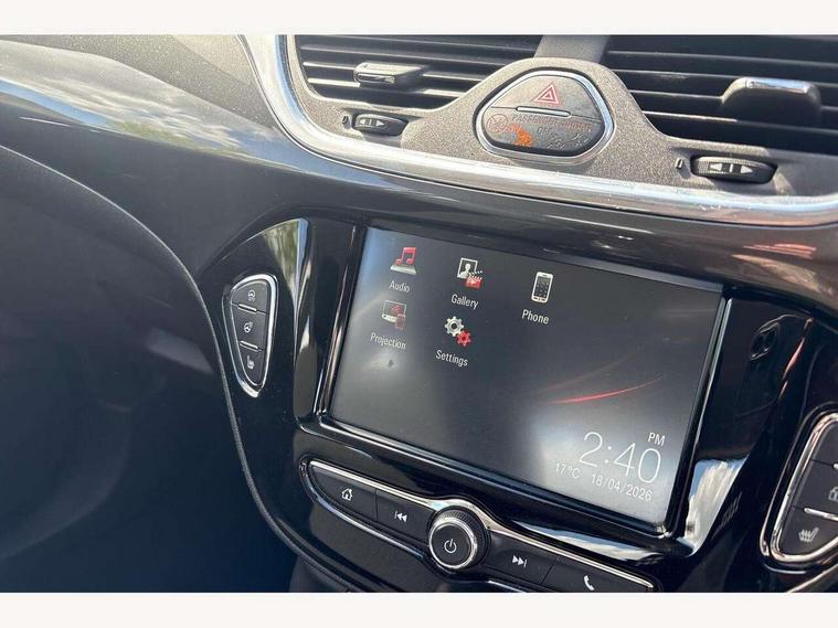 Apple car play/Android Auto, Bluetooth system, Cruise control + speed limiter, Exterior temperature gauge, Lights on warning, Low fuel level warning light, Multi function display, Rev counter, Service indicator, Speed sensitive power steering, Speed warning indicator, Trip computer, 6 speakers, Bluetooth audio streaming, DAB digital radio module, USB connection, Black fog light surrounds, Body colour bumpers, Body colour door handles, Body coloured door mirrors, Chrome front grille, Coming home function, Electric adjustable door mirrors, Electric front windows/one touch facility, Headlamp levelling, Heated door mirrors, Heated rear window, Heated windscreen, Laminated windscreen, LED daytime running lights, Rear wiper, Two speed windscreen wipers, 12V power outlet, 2 height adjustable rear headrests, Air recirculation system, Centre console with cupholders, Chrome gear knob, Chrome interior door handles, Delay courtesy light function, Driver/passenger reading lights, Driver/passenger sunvisors and vanity mirrors, Easy entry reclining front seats with memory, Electric reach + rake adjustable steering column, Front door pockets, Front seat belt pre-tensioners with load limiters, Glovebox, Grab handles, Height adjustable driver's seat, Height adjustable front headrests, Illuminated luggage compartment, ISOFIX on outer rear seats, Load restraining lashing points, Luggage compartment cover, Mora seat cloth upholstery, Multi function steering wheel, Pollen filter, Rear bottle holder, Reclining front seats, Winter pack - Corsa, ABS + EBD + EBA, Brake assist function, Driver/passenger 2 stage auto adaptive airbags, ESP + traction control, Front and rear curtain airbags, Front and rear seatbelt reminder, Front seat side impact airbags, Height adjustable front seatbelts, Hill start assist, Manual passenger airbag deactivation function, Side impact protection beams, Three 3 point rear seatbelts, Tyre pressure monitoring system, Deadlocks, Immobiliser, Key left in ignition audible warning, Locking wheel bolts, Radio frequency remote central locking, Rhutenium facia with chrome effect inserts, 16" Silver alloy wheels - Style 1,