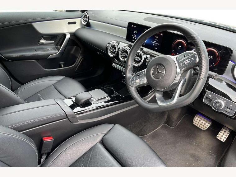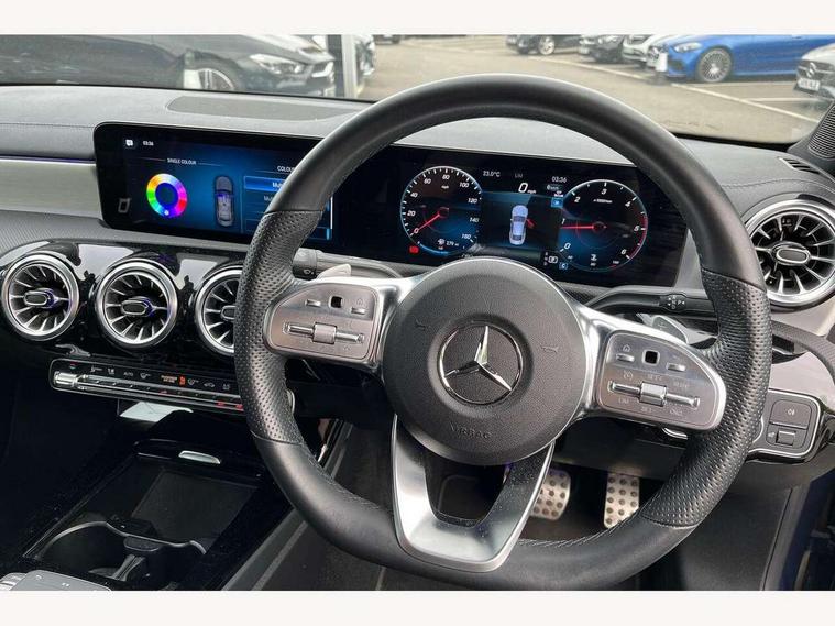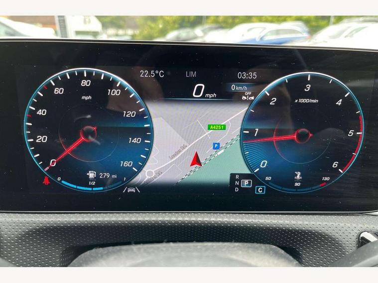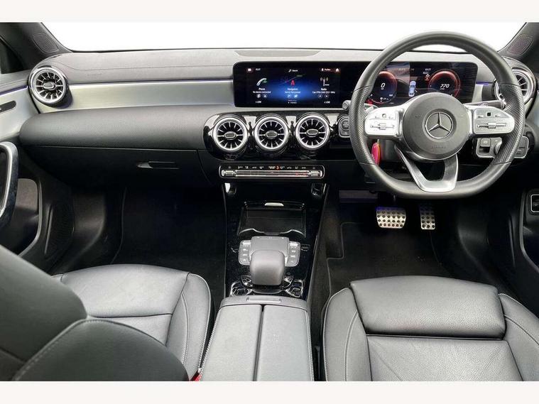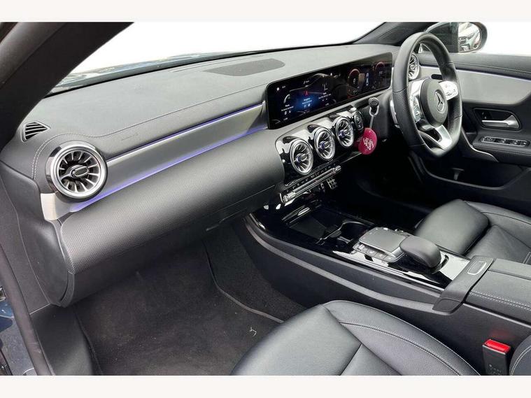 10.25 inch Instrument display with digital cockpit, 10.25 inch touchscreen central media display, Active lane keeping assist, Attention assist - Monitors steering behaviour and long journey fatigue, Blind spot assist, Bluetooth connection, Car wash mode, Cruise control with limiter, Direct steer system with speed sensitive power steering, DYNAMIC SELECT with a choice of driving modes (ECO, Comfort, Sport and Individual), ECO start/stop function, Fluid level warning indicator for fuel, oil, coolant and washer fluid, Hard-disk navigation, Hey Mercedes Voice activation, Lamp failure indicator, Mercedes me connect including emergency call system, accident recovery, breakdown and maintenance management, Mercedes me remote services, Outside temperature gauge, Owners manual and service booklet in English, Pre-installation of private car share, Preinstallation for Mercedes Benz link, Radio aerial integrated into front and rear windshields, Service indicator (ASSYST), Smartphone integration with Apple CarPlay and Android auto, Speed limit assist, Traffic sign assist, Trip computer in multifunction display with current consumption indicator, Lowered comfort suspension, Rear axle multi-link, DAB digital radio tuner, MBUX multimedia system, Mid-range sound system, USB (type C) ports (2) in stowage compartment and 1 in front of centre console, Adaptive brake lights, AMG body styling with AMG front apron and rear apron and visible exhaust tailpipe in chrome trim elements, AMG bodystyling side skirts, Body colour bumpers, Body colour door handles, Chrome beltline strips, Diamond radiator grille pins in chrome, Electric panoramic sunroof with automatic tilt and convenience closing fuinctions, rain sensor auto closing and electronic roller sunblind, Electric windows, Electrically adjustable and heated door mirrors with integrated LED indicators, Exhaust system with 2 Visible tailpipe trim elements and rear apron with trim in chrome, Headlamp assist automatic headlamp activation, Heated glass rear windscreen + timer control, High level LED third brake light, Integrated LED daytime running lights, Interior mirror with black reading lamps and frameless, LED tail lamp, Multibeam LED headlamps with adaptive highbeam assist plus, Privacy glass with dark tinting on rear side windows and rear window, Rain sensing windscreen wipers with two sensitivity settings, Rear boot, Rear fog lamp, Rear side wing doors, Variable front intermittent wipers, Window line trim strip in chrome, 3 seat bench in 2nd row, 3 spoke flattened bottom nappa leather multifunction steering wheel with perforated leather in grip area, 40:20:40 split folding rear seat backrests, Air condition air vents with surround in silver chrome, Air conditioning - Two zone thermotronic luxury automatic climate control with display, Artico man-made leather upholstery, Automatic child seat recognition sensor, Black roof lining, Brushed stainless steel sports pedals with rubber studs, Electrically adjustable front memory seats including lumbar support, Floor mats with stitched AMG lettering, Front centre armrest with stowage, Galvanished gear shift paddles on steering wheel, Heated front seats, Illuminated front door sills with changeable cover, Illuminated glove compartment stowage, Interior lighting - 64 colour Ambient lighting, Luggage net on driver/front passenger seat backrest, Manually adjustable front seats, Manually height and reach adjustable steering column, Rear armrest with two integral cup holders for drinks, Rear head restraints, Single front passenger seat, Sport seats with fixed head restraints, Stowage compartment in centre console with retractable cover, Sunvisors with illuminated vanity mirrors, Touchpad on center console, Twin front cupholders, Two outer rear seat isofix and top tether child seat fixing points, Keyless go comfort pack - CLA, Light and sight pack - CLA, Mirror pack - CLA, Night package - CLA, Parking package - CLA, Active bonnet pedestrain safety measure which detects an impact and raises bonnet by 65mm, Active brake assist includes forward collision warning system with autonomous braking, Adaptive brake assist with hold function and hill start assist, Anti lock braking system (ABS) with brake assist, Black seat belts, Bonnet with power domes, Brake pad wear warning indicator, Childproof locks manually operated for rear doors and electrically operated for rear power windows, Crash responsive emergency lighting, Driver and front passenger head and sidebags, Driver and front passenger windowbags, Drivers knee airbag, Dual stage driver and front passenger airbags, Electric parking brake, Electronic stability programme with acceleration skid control, ESP curve dynamic assist, Exit warning, Front and rear seatbelt reminder, Front passenger seat occupancy sensor, Three point rear seat belts, Tyre pressure monitoring system, Warning triangle and first aid kit, Guard 360 degree guard vehicle protection system with immobiliser and interior protection, Remote central locking and crash sensor with emergency opening function, Light aluminium with longitudinal grain interior trim, 19" AMG multi-spoke black painted light alloy wheels with high sheen rim finish, Summer tyres, Tirefit tyre sealant kit,