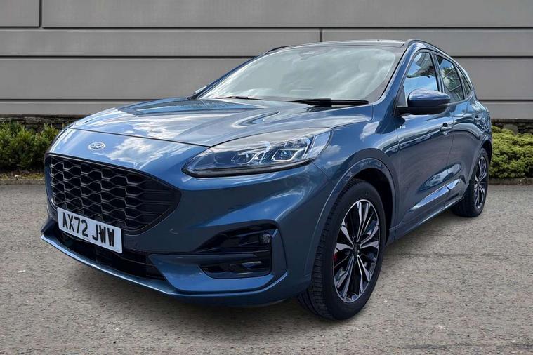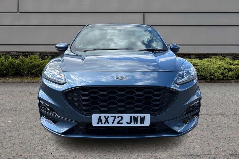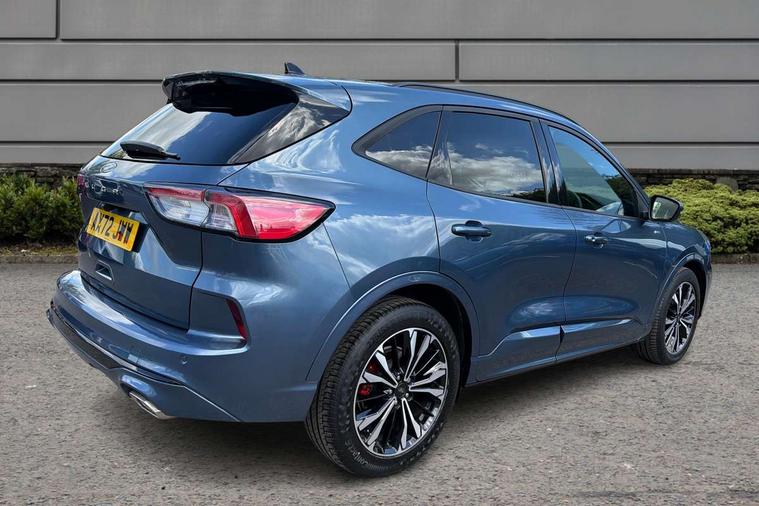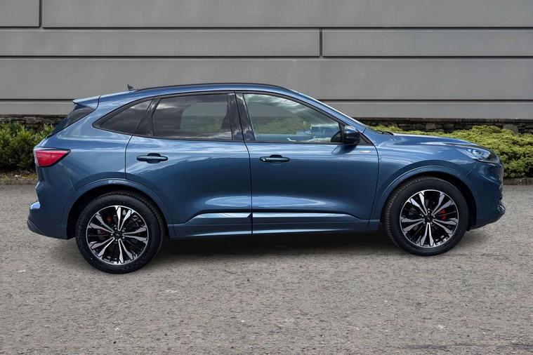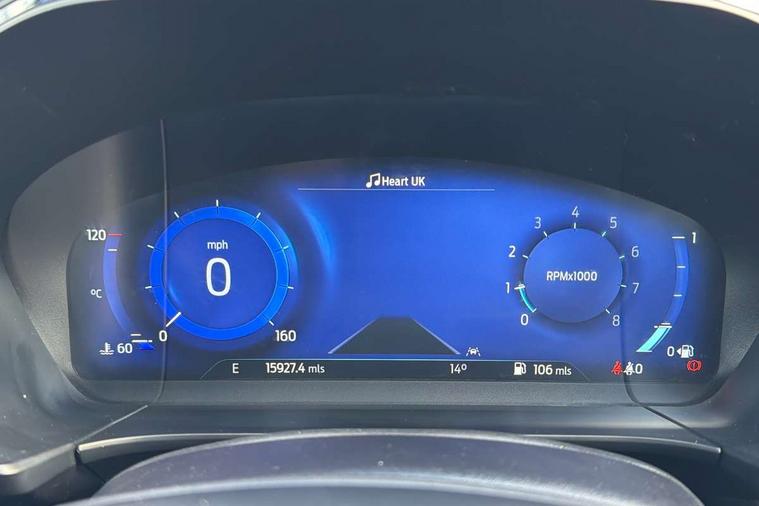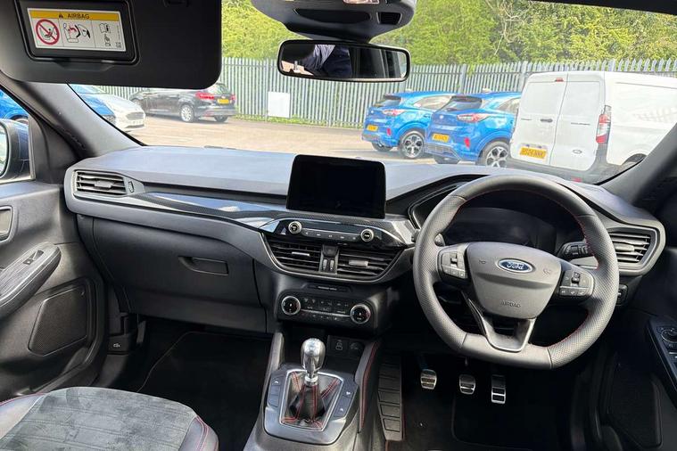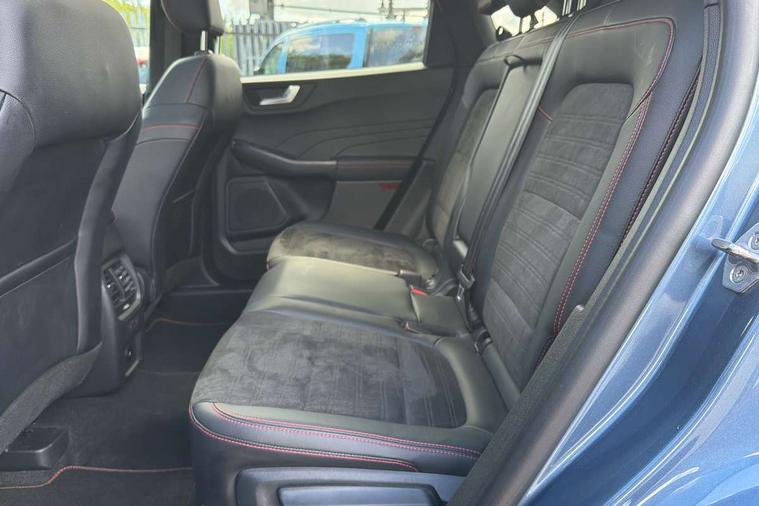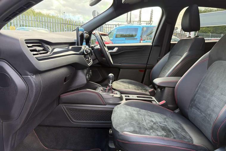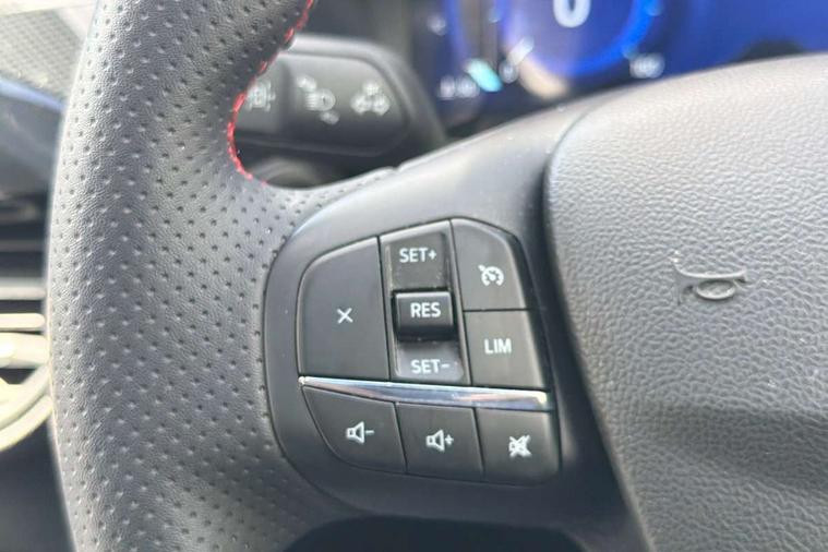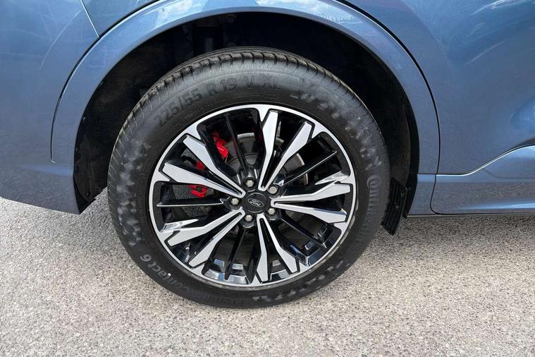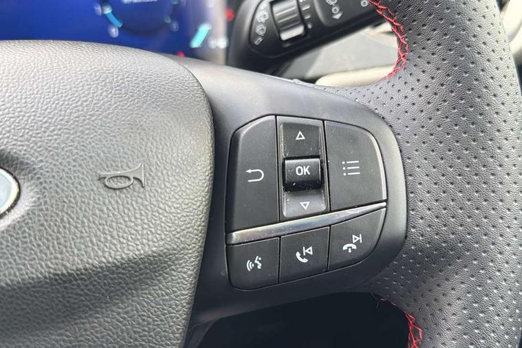 12.3" digital colour instrument cluster, Ford easy fuel, Ford SYNC 3 with 8" TFT LCD touchscreen, App Link, andriod auto/apple carPlay, emergency assistance and navigation with Ford pass connect, Front and rear parking sensors, Hands free power tailgate, Lane keeping aid with lane departure warning, Power assist steering, Rear view camera, Selectable drive modes, Service interval indicator, Sports suspension, Twist beam rear suspension, B&O premium audio system with 10 speakers and subwoofer, 2 USB ports, DAB radio/CD, Auto headlamps with high and low beam, Black roof rails, Day/night rear view mirror, Front LED fog lamps, Large rear spoiler, LED daytime running lights, LED rear lights, Power folding heated door mirrors with puddle lights, Power front/rear windows with global close, Power opening panoramic roof, Privacy glass, Quickclear heated windscreen, Rear side wing doors, Rear wiper, ST Line body styling kit with unique front and rear fascia and bumper, rear painted diffuser, front painted skid plates, dark mesh upper grille, ST Line front scuff plates, Third brake light, Twin exhausts, 10 way power adjustable drivers seat, 2nd row sliding seats with 60:40 split, 8 way manual passenger seat including lumbar support and height adjust, Alloy pedals, Centre console with electronic parking brake, Dark headlining and pillars, Electronic automatic temperature control (EATC), Flat bottomed leather steering wheel in sensico with red stitching, Front and rear head restraints, Heated passenger and driver seats, Heated rear seats, Heated steering wheel, Partial premium touch sensico leather upholstery with black cloth inserts and red stitching, Rear charging point, Single front passenger seat, Sports seats, ST Line front and rear floor mats, ST Line gear knob, 3x3 point rear seatbelts, Airbags - front driver/passenger, front and rear curtain, Drivers knee airbag, Electronic stability control (ESC) and ABS, Ford MyKey Gen 2 safety system, Manual child proof rear door locks, Post collision braking, Pre collision assist with autonomous emergency braking, Rear seat Occupancy alert, Red brake calipers, Tyre pressure monitoring system, Engine immobiliser, Keyless entry and Ford power start button (Keyless start), Locking wheel nuts, Remote powered central double locking doors, Thatcham category 1 alarm,