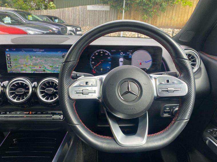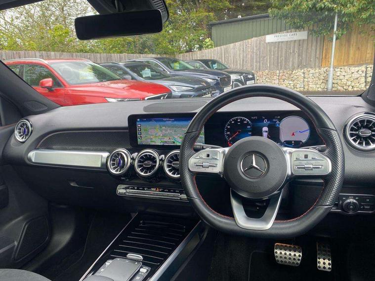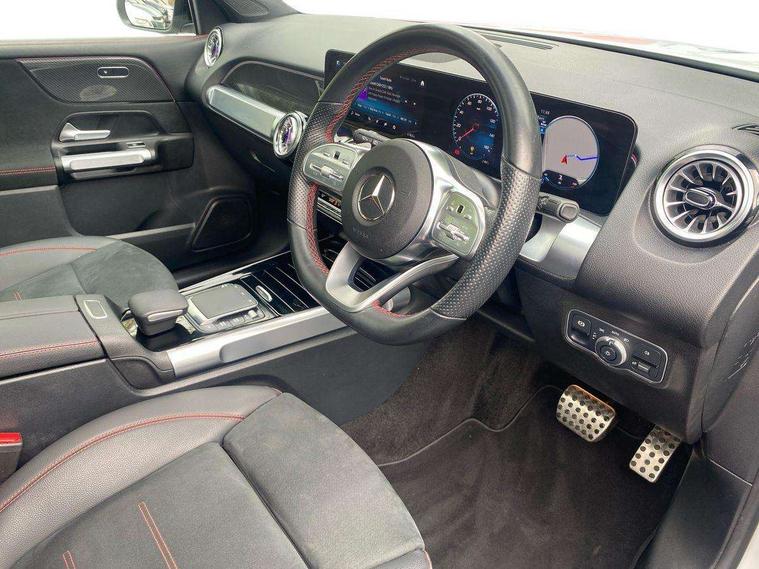 10.25" Digital instrument cluster display screen, 10.25" Digital media screen display, Active lane keeping assist, Attention assist - Monitors steering behaviour and long journey fatigue, Brake pad wear indicator warning light, Car wash mode, Cruise control with limiter, DYNAMIC SELECT with a choice of driving modes (ECO, Comfort, Sport and Individual), ECO start/stop function, Fluid level warning indicator for fuel, oil, coolant and washer fluid, Hard disk navigation, Hey Mercedes Voice activation, Lamp failure indicator, Mercedes me connect including emergency call system, accident recovery, breakdown and maintenance management, Mercedes me remote services, Outside temperature gauge, Owners manual and service booklet in English, Parameter steering system, Pre-installation of private car share, Preinstallation for parking damage notification, Radio aerial integrated into front and rear windshields, Service indicator (ASSYST), Smartphone integration with Apple CarPlay and Android auto, Speed limit assist, Traffic sign assist, Trip computer in multifunction display with current consumption indicator, Comfort suspension, Rear axle multi-link, DAB digital radio tuner, MBUX multimedia system with DAB digital radio and touchpad including satellite navigation, Mercedes Benz sound system (225 W) with 10 speakers, 1 central speaker, speakers on doors, a tweeter on door, one sub woofer + boost amplifier, Pre installation for Mercedes Benz Link, USB (type C) port in front stowage compartment, USB (type C) ports (2) in stowage compartment, Adaptive brake lights, Aerial for GPS, AMG bodystyling door panels black grained with chrome plated inserts, AMG bodystyling front apron with chrome splitter, AMG bodystyling rear apron with diffuser optics and chrome trim element, AMG specific front and rear bumper including underride guard in high gloss chrome, Auto headlights, Beltline strips and weather strip in chrome, Black door mirrors, Black roof rails, Body coloured bumpers, Body coloured door handles with chrome insert for keyless entry, Electric adjustable and heated door mirrors with integrated LED side indicators, Electric panoramic glass sunroof, Exhaust system with dual flow exhaust pipes (non-functional), Front and rear electric windows, Headlamp assist automatic headlamp activation, Heated glass rear windscreen + timer control, High level LED third brake light, Interior mirror with black reading lamps and frameless, LED daytime running lights, Multibeam LED headlamps and tail lamp with adaptive high beam assist, Privacy glass with dark tinting on rear side windows and rear window, Radiator grille with pins in chrome and single louvre with chrome insert, Rain sensor windscreen wipers, Rear fog lamp, Rear side wing doors, Rear wiper, Two visible tailpipe trim elements exhaust, 3 seat bench in 2nd row, 3 spoke multifunction sport steering wheel in nappa leather, Air conditioning - Two zone thermotronic luxury automatic climate control with display, AMG sports pedals with brushed stainless steel surfaces and black rubber studs, Artico man-made leather/Microcut microfibre upholstery with red contrast stitching, Automatic child seat recognition sensor, Black floor mats with AMG lettering, Black roof lining, Electrically adjustable front memory seats including lumbar support, Fore/aft adjustment rear seats, Freight packaging with tie-down hooks, Front centre armrest with stowage, Front door sills with illuminated changeable cover, Front passenger grab handle with brushed side silver chrome, Front sports seats with adjustable head restraints, Galvanished gear shift paddles on steering wheel, Heated front seats, Height/reach adjustable steering column, Interior lighting - 64 colour Ambient lighting, Luggage net on driver/front passenger seat backrest, Net in front passenger footwell, Rear armrest with two integral cup holders for drinks, Rear seat easy entry, Single front passenger seat, Stowage compartment in centre console, Stowage compartment with retractable cover, Third row of seats for two people on rear seat, Touchpad on center console, Twin front cup holders, Two outer rear seat isofix and top tether child seat fixing points, Interior lighting with light and sight pack - GLB, Keyless go comfort pack - GLB with easy pack tailgate, Memory package - GLB, Mirror pack - GLB, Parking pack - GLB, 3 rear 3 point seatbelts, Active bonnet pedestrain safety measure which detects an impact and raises bonnet by 65mm, Active brake assist includes forward collision warning system with autonomous braking, Adaptive brake assist with hold function and hill start assist, Airbags - kneebag for driver, Anti-lock braking system (ABS) with brake assist, Childproof locks manually operated for rear doors and electrically operated for rear power windows, Crash responsive emergency lighting, Curve dynamic assist, Driver and front passenger head and sidebags, Driver and front passenger windowbags, Dual stage driver and front passenger airbags, Electronic parking brake, Electronic stability programme with acceleration skid control, Front and rear seatbelt reminder, Front brake callipers with Mercedes Benz lettering, Front passenger seat occupancy sensor, Tyre pressure monitoring system, Warning triangle and first aid kit, Guard 360 degree vehicle protection - Anti theft alarm system, tow away protection with visual, acoustic warning and alarm, Interior monitoring system, KEYLESS-GO Spanner communicates with the vehicle within two metres of the door, Remote central locking and crash sensor with emergency opening function, Thatcham category 1 alarm system with immobiliser and interior protection, Vehicle key with decorative surround in chrome, Black air vents with chrome surround, Carbon structure trim, 20" AMG multi spoke light alloy wheels painted in high gloss black with high sheen rim flange, Summer tyres, Tirefit tyre sealant kit,