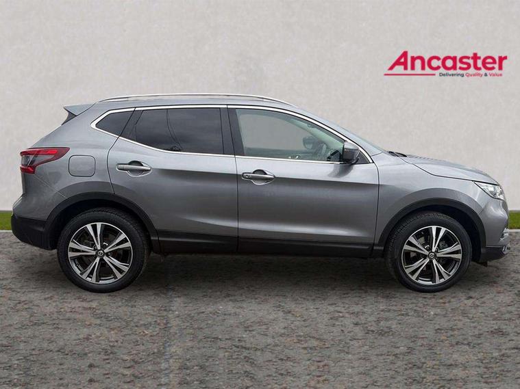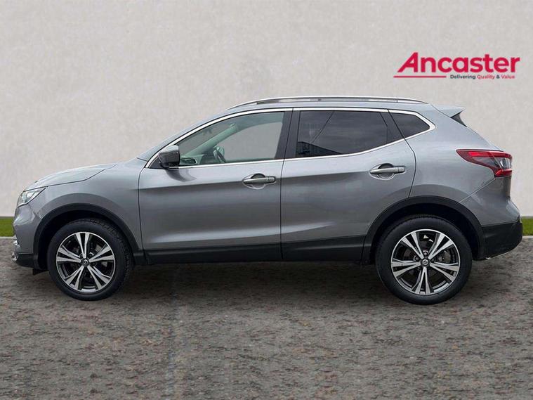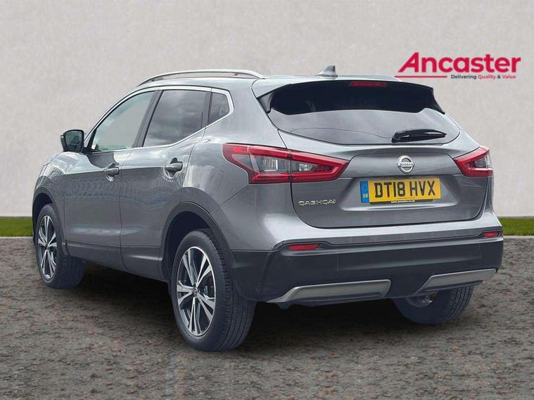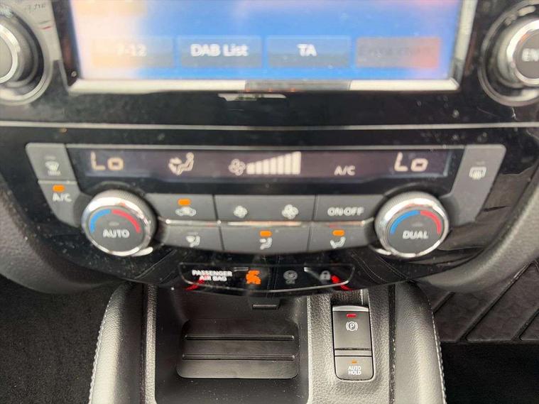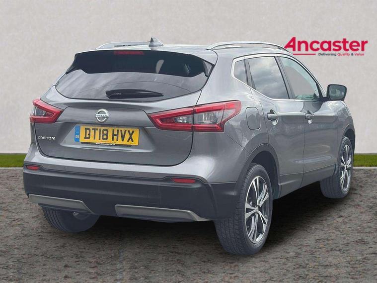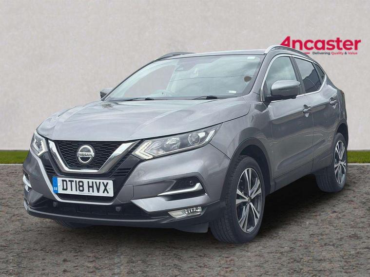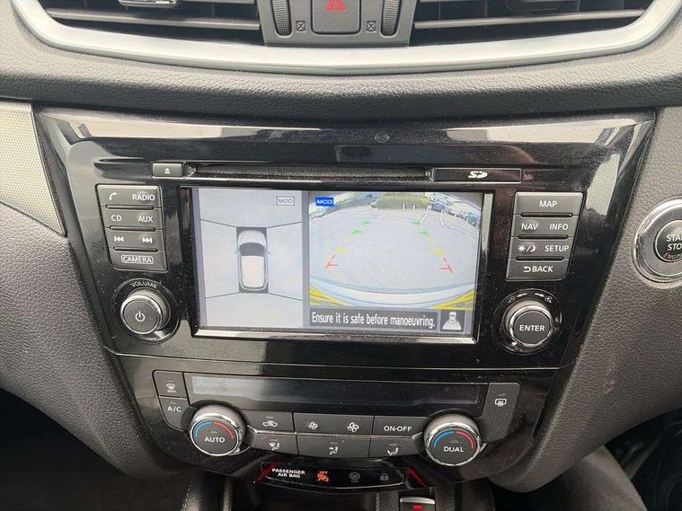 5" TFT driver information centre, Around View Monitor, Bluetooth phone integration system, Cruise control, Electric speed sensitive power steering, Front and rear parking sensors, Lane departure warning system, Nissan connect sat nav system, Outside temperature display, Push button starter, Rear view camera, Service interval indicator, Speed limiter, Traffic sign recognition, Trip computer, 'Shark fin' mobile antenna, 6 speakers, DAB Digital radio, Radio/CD, Smartphone apps, Steering wheel mounted audio controls, USB/aux input socket, Automatic headlamp activation, Body colour bumpers, Body colour door handles, Body colour door mirrors, Chrome window surround, Electric folding and heated door mirrors, Front fog lights, High beam assist, Interior mirror with auto anti dazzle, LED indicators in door mirrors, Matt silver roof rails, One touch electric front/rear windows, Privacy glass, Rain sensor windscreen wipers, Rear roof spoiler, Rear wiper, 2 X front 12v power sockets, 60/40 split folding rear seat, Ambient interior lighting, Centre console with armrest, Chrome interior door handles, Cloth upholstery, Configurable luggage board system, Driver + front passenger lumbar support, Dual zone climate control, Front and rear door pockets with bottle holders, Front headrests, Front seat belt pre-tensioners with load limiters, Height adjustable driver's seat, Height adjustable passenger seat, Illuminated electric window switch, Isofix child seat preparation, Leather gearknob, Leather interior door handles, Leather knee rest, Leather steering wheel, Luggage compartment lighting, Parcel shelf, Pollen filter, Rake/reach adjustable steering wheel, Rear armrest with 2 cupholders, Rear headrests, ABS, brake assist and EBD, Child locks on rear doors, Curtain airbags, Driver/front passenger airbag, Electronic parking brake, ESP + traction control, Forward emergency braking, Front passenger airbag deactivation, Height adjustable front seatbelts, Hill start assist, Seatbelt warning, Side airbags, Three 3 point rear seatbelts, Tyre pressure monitoring system, Alarm, Immobiliser, Intelligent Key, Remote central locking, Piano black interior trim, 18" Bi-colour alloy wheels, Tyre puncture repair kit,