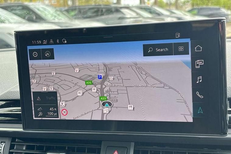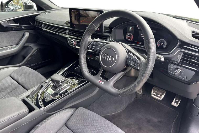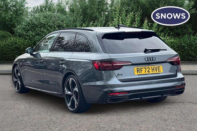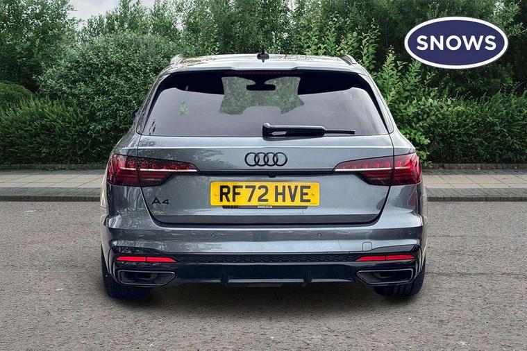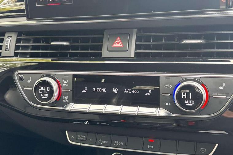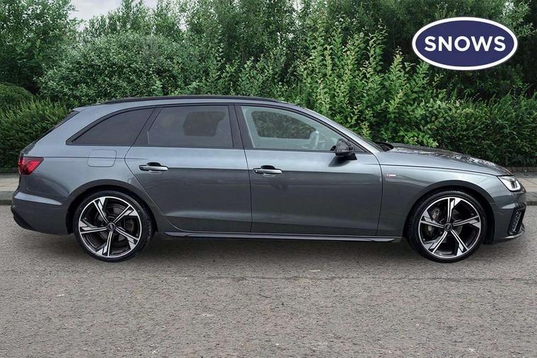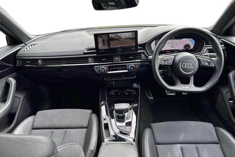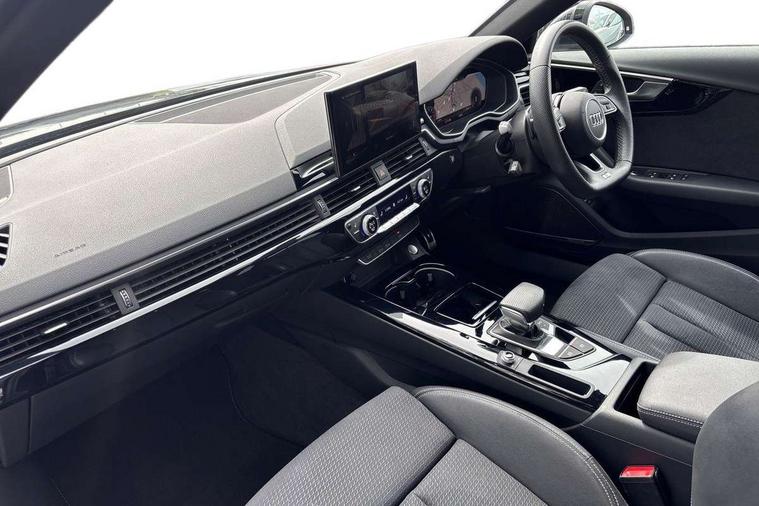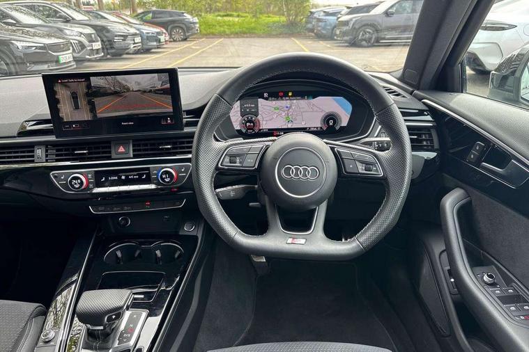 Audi connect safety and service (e-call), Audi connect with Amazon Alexa Integration, Audi drive select, Audi smartphone interface, Audi virtual cockpit, Automatic start-stop system with coasting functionality and efficiency programme, Bluetooth interface, Electromechanical power steering, Email, calendar and text messages displayed via MMI, MMI Navigation plus with MMI touch includes 10.1" high resolution colour MMI display, 3D map, Power operated tailgate, Voice control system, 54 litre fuel tank, Sports suspension lowered by 23mm, 2 USB charging ports, 8 passive loudspeakers, DAB digital radio reception, Audi beam uses LEDs to project the audi logo onto the ground as you exit your A4, Auto dimming rear view mirror, Black Audi rings and black badging (model name in black badging, no engine badging), Body colour door handles, Body colour front spoiler lip, Body colour side sill trim, Electrically folding auto dimming/adjustable/heated door mirrors with LED side indicators and kerb view function for passenger side, Exhaust tailpipes in high dark chrome, Front and rear bumpers with side skirts, Grained matt black side air inlets with matt aluminium silver inlay, High beam assistant, High gloss black B pillar trims and triangular rear door trim, LED headlights with LED rear lights + dynamic rear indicators + headlight adjustment and high beam, turning light + LED daytime running lights, LED third brake light, Privacy glass, Rain and light sensors, Rear diffuser in matt black with trim strip in matt aluminium silver, Rear side wing doors, Rear wiper, RS4 rear spoiler in body colour, S Line badges on the front wings, S Line roof edge spoiler, Variable intermittent front wash/wipe, Windscreen with acoustic glazing, 4 way electric lumbar support for driver and front passenger, 40/20/40 split folding 3 rear seat bench in 3 parts with rear centre armrest, Black cloth headlining, Black perforated leather gearknob, Contrast stitching on seats, steering wheel and gear lever gaiter, Deluxe 3 zone electronic climate control, Door sill trims with aluminium inlay, Electric load area cover, Front and rear head restraints, Front centre armrest, Heated front seats, Illuminated door sill trims with S logo, ISOFIX child seat mounting and top tether, Manual seat adjustment, Single front passenger seat, Stainless steel pedals and foot rest, Black styling pack - A4 Avant, LED Interior light pack - A4/S4, 3 rear seatbelts, 6 airbags - Driver, front passenger, curtain and side windows, Electronic Stabilisation Control (ESC) including ABS, ASR and EDL, Hill hold assist, Multi collision brake assist, Pop-up bonnet for pedestrian protection, Pre sense city, Rear door child safety locks, Seatbelt monitoring, Warning triangle and first aid kit, Anti theft alarm, Anti theft wheel bolts, Central locking, Keyless Go, Piano black finish inlay, 19" 5 arm flag design Audi sport diamond cut alloy wheels in gloss anthracite black, Tool kit, Tyre repair kit,