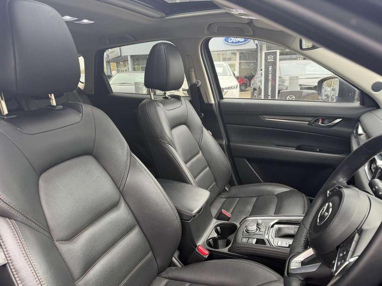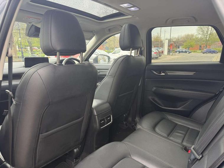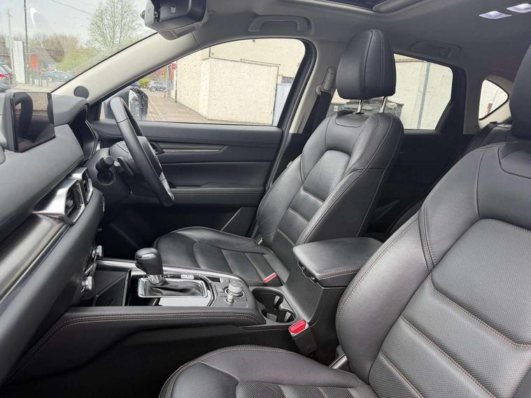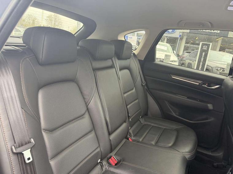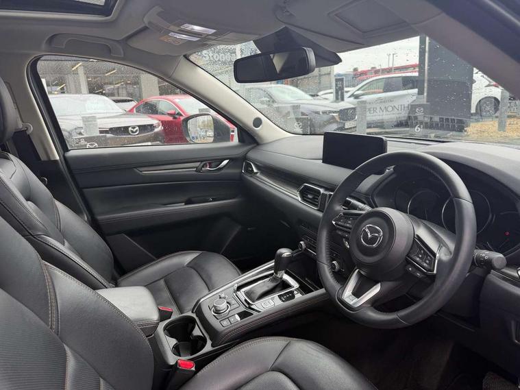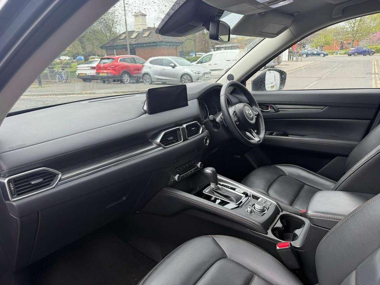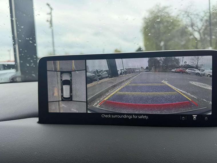 10.25" display with Mazda Connect infotainment, 7" colour TFT display, Apple car play/Android Auto, Blind spot monitoring with rear cross traffic alert, Bluetooth connectivity with voice control, Collision prevention assist, Connected services, Cruising Traffic Support, Drive mode selector, Electric power steering, Emergency stop signalling system, Engine start/stop button, Forward collision warning, Front and rear parking sensors, Integrated navigation system, Intelligent speed assist, Lane departure warning system, Lane keep assist, Qi wireless phone charging, Radar cruise control with Stop and Go, Reversing camera, Service indicator, Trip computer, Windscreen projected colour active driving display (HUD) with memory, i-stop, 2 USB sockets in rear, 2x USB sockets in front, AM/FM radio, Bluetooth audio streaming, Bose premium sound system with 10 speakers, DAB Digital radio, Multimedia Commander including separate volume dial, Steering wheel mounted audio controls, Adaptive front lighting system, Auto dimming rear view mirror, Automatic headlights, Black inlay dashboard panel, Body colour door mirrors, Body colour roof spoiler, Body coloured front and rear black lower bumper mouldings, Bright finish signature wing, Coming/leaving home lighting function, Door mirror integrated indicators, Dual chrome tailpipes, Dusk sensitive headlamps, Electric front/rear windows with one touch auto up/down, Front grille in gloss black finish, Gloss black B and C pillars garnish, High beam assist, Intermittent rear wash/wipe, LED auto levelling, LED daytime running lights, LED front fog lights, LED Headlights, LED third brake light, Power folding and heated door mirrors, Power tilt/slide sunroof, Privacy glass (rear side windows only), Rain sensing front wipers, Rear side wing doors, Satin black side mouldings, Scuff plates, Shark fin antenna, Signature LED rear combination lights, Vinyl with wood grain metal inlay door trim panel, Windscreen wiper de-icer, 12v electrical power outlet, 3 seat bench in 2nd row, 3 stage heated front seats, 40:20:40 Karakuri fold-flat seat system, 6 way electric adjustable passenger seat, 8 way electric driver seat with lumbar support + memory, Cargo room flat floor board with waterproof undertray, Driver seat power slide, recline and height adjustment, Driver, Front passenger and two rear grab handles with coat hooks, Driver/passenger front seatback pockets, Driver/passenger sunvisors + illuminated vanity mirrors (drivers with ticket holder), Dual zone climate control, Folding centre armrest with 2 cup holders, Front and rear door pockets, Front centre storage with two cupholders, Front passenger seat power slide, recline and height adjustment, Heated steering wheel, Humidity sensor, Illuminated glovebox, Interior dome light with integral spotlight, ISOFIX child seat anchorage points attached on outer rear seats, Karakuri tonneau cover, Leather upholstery, Leather wrapped steering wheel and gear knob, Light roof lining, Luggage compartment LED lighting, Luggage compartment power outlet, Paddle shifts, Rear air vents, Rear headrests, Rear seat recline, Roof mounted sunglasses holder, Single front passenger seat, Three height adjustable head restraints, Tilt/height adjustable steering wheel, White interior LED illumination lighting, 3 point front seatbelts with pre-tensioners, 3 rear 3 point seatbelts, ABS, Advanced Smart City Brake Support - SCBS, Child locks on rear doors, Driver and front passenger side airbags, DSTC-Dynamic Stability and Traction Control, Dual front airbags, Electronic brake force distribution, Electronic parking brake with auto hold, ESP, Front and rear curtain airbags, Front passenger airbag deactivation, G-Vectoring control, Hill hold assist, Seatbelt reminder front and rear, Single stage passenger airbags, Smart brake support with forward obstruction warning, Tyre pressure monitoring system, Automatic door locking when moving off, Deadlock, Immobiliser, Power door locks, Remote central locking, Smart keyless entry, Thatcham Cat.1 alarm, 19" diamond cut black alloy wheels, Tyre repair kit,