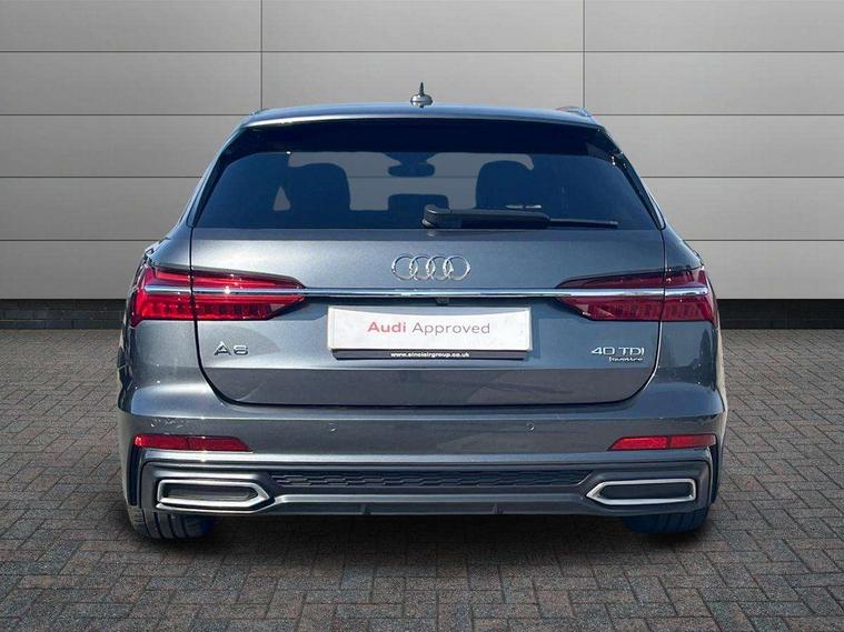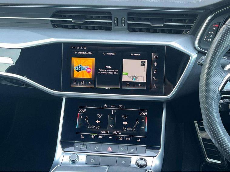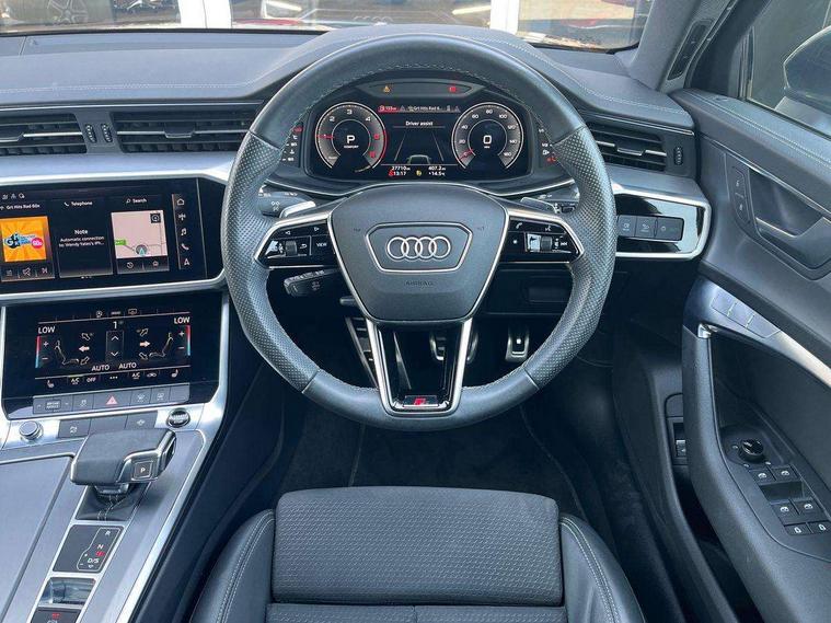 7" high resolution colour driver information display system, Audi connect safety and service (e-call), Audi connect with Amazon Alexa Integration, Audi drive select, Audi parking system plus - acoustic and visual park assist system for front and rear, Automatic start/stop system with coasting functionality, Bluetooth interface, Lane departure warning system, Power operated tailgate, Progressive steering, Rear view camera, Service interval indicator, Smartphone interface includes wireless Apple carplay/Android Auto, Voice control system, 12V Mild hybrid, 24 litre AdBlue tank, Diesel particulate filter, Quattro on demand, Sports suspension, Audi front music interface, Audi sound system, Auxiliary input socket, DAB Digital radio, USB connection, All weather LED headlights, Aluminium roof rails, Body coloured door mirrors, Electric front/rear windows, Frameless auto dimming interior rear view mirror, Front intermittent wipers, Headlight washers, Heat insulating darkened glass in side and rear windows, Heat insulating glass in windshield, LED rear lights, LED signature front daytime running light, LED third brake light, Matt black side air intake grille with inlay in matt aluminium, Privacy glass, Radiator grille in titanium black matt, single frame in chrome and horizontal struts in matt aluminium silver, Rain and light sensors, Rear side wing doors, Rear wiper, S line air inlet design with inlay in matt aluminium, S Line badge on front fender, S Line front and rear bumpers, S line rear diffuser and grille in matt black with matt aluminium tailpipes, S Line roof edge spoiler, S Line side skirts, 2 zone deluxe electronic climate control, 4 way electric lumbar support for driver and front passenger, 40/20/40 split folding 3 rear seat bench in 3 parts with rear centre armrest, Black cloth headlining, Black steering wheel insert, Electrically adjustable front seats with driver memory, Front centre armrest, Front head restraints, Heated front seats, Height/reach adjust steering wheel, Illuminated door sill trims with S logo, Illuminated sun visors with vanity mirrors, ISOFIX child seat mounting and Top Tether with front passenger airbag deactivation, Leather gear knob, Luggage compartment system, Rear headrests, S line front and rear black carpet floor mats with contrast stitching, Single front passenger seat, Stainless steel pedals and foot rest, LED Interior Ambient Lighting Pack - A6, Non smoking pack - A6, Technology pack - A6, 3 point seatbelts on all seats, Airbags - Front side, front and rear including head, Audi pre-sense front, EBD - Electronic brakeforce distribution, Electromechanical parking brake, Electronic Stability Control (ESC) including ABS, ASR and EDL, Extended pedestrian protection measures, Manual child proof rear door locks, Seatbelt monitoring, Tyre pressure warning light, Warning triangle and first aid kit, Anti theft alarm with tow away protection, Anti-theft wheel bolts and wheel loosening detection, Immobiliser, Keyless Go, Remote central locking, Black seatbelts, Matt brushed aluminium dark inlays,