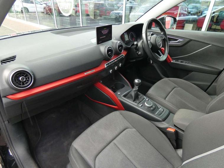 Audi drive select, Audi smartphone interface, Bluetooth hands free telephone connection, MMI - Multi Media Interface control system, PAS, Service interval indicator, Voice control system, Audi music interface, Aux input, CD player, DAB digital radio module, MMI radio plus with 7" colour MMI screen and MMI controller, USB port, Body colour door mirrors, Chrome exhaust tailpipe, Door mirror integrated indicators, Electrically adjustable and heated door mirrors, Front and rear electric windows, Rear wiper, Sunband for windscreen, Aluminium door sill trims, Centre console with storage/cupholders, Front and rear door pockets, Front and rear headrests, Front and rear velour floor mats, Front centre armrest, Front sports seats, Glovebox, Height adjustable front seats, Height/reach adjust steering wheel, ISOFIX on front passenger and rear outer seats, Storage compartment in rear centre console, 3x3 point rear seatbelts, ABS+Electronic Brake force Distribution, Curtain airbags, Driver and passenger airbags, Driver and passenger side airbags, EDL + ASR, Electrically operated child locks on rear doors, Electromechanical parking brake, ESP, Multi-Collision braking, Pre-sense front with pedestrian recognition, Seatbelt warning light, Tyre pressure monitoring system, Warning triangle and first aid kit, Locking wheel bolts, Remote central locking, Thatcham category 1 alarm + immobiliser, Aluminium interior trim,