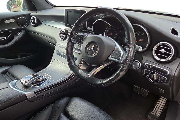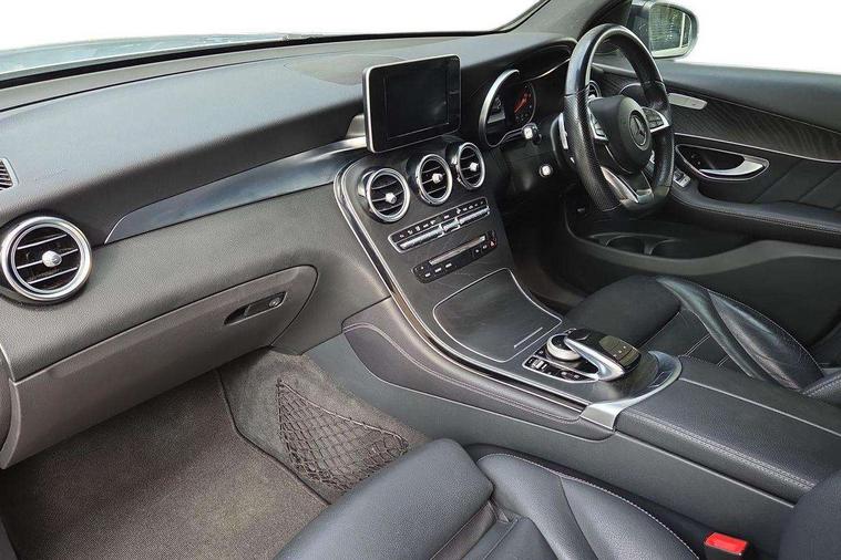 7" colour screen, Active park assist with parktronic system, Attention assist, Bluetooth interface for hands free telephone, Collision prevention assist, Crosswind Assist, Cruise control with speedtronic variable speed limiter, DYNAMIC SELECT with a choice of driving modes (ECO, Comfort, Sport, Sport+ and Individual), Garmin Map Pilot navigation system with SD card, touchpad and voice control, Multi function trip computer, Outside temperature gauge, Power opening/closing tailgate, Remote boot release, Speed sensitive steering, Diesel particulate filter, 5 speakers, DAB Digital radio, Frontbass loudspeakers, Mercedes Audio 20 radio/single CD + telephone keypad, USB connection, Adaptive brake lights, Aerodynamic rear spoiler, AMG bodystyling, Automatic headlights, Body coloured bumpers, Electric windows one touch open/close, Electrically adjustable and heated door mirrors, Exhaust tailpipe finisher, Heated windscreen washers, LED daytime running lights, LED rear lamps, Privacy glass (to rear of B post), Rain sensor windscreen wipers, Range adjustable headlights, Rear wiper, Tinted glass all round, Welcome home function, 2 cupholders in front centre console, 2 way rear head restraints, 3 spoke flat bottom AMG steering wheel in nappa leather, 4 way adjustable front head restraints, 4 way electric lumbar support for driver and front passenger, 40:20:40 split folding rear seats, AMG floor mats, AMG sports seats, Auto Mercedes-Benz child seat recognition sensor, Automatic climate control, Black roof lining, Dividing net - rear, Electric front seat height adjustment, Front door sills with Mercedes Benz lettering, Gearshift paddles, Heated front seats, Height/reach adjustable steering column, Illuminated glovebox, Multifunction steering wheel, Rear top tether child seat ISOFIX attachment, Sports pedals with stainless steel surfaces and rubber studs, Easy-pack load compartment cover, Interior lighting pack - GLC, Mirror pack - GLC, Storage pack - GLC, 3 rear 3 point seatbelts, ABS with Brake Assist, Active bonnet, Adaptive brake system, Child proof door locks, Drivers knee airbag, Dual stage driver/passenger airbags, Electronic parking brake, ESP with ASR, Front and rear seatbelt reminder, Front passenger seat occupancy sensor, Front side airbags, Tyre pressure monitoring system, Warning triangle and first aid kit, Window airbags, Alarm system/interior protection/immobiliser, Automatic door locking, Keyless start, Remote central locking, Run flat tyres,