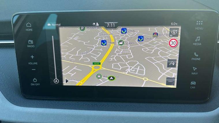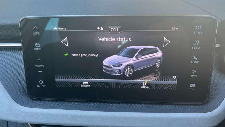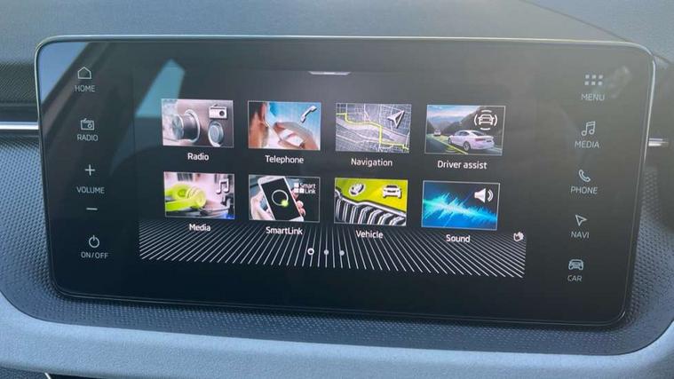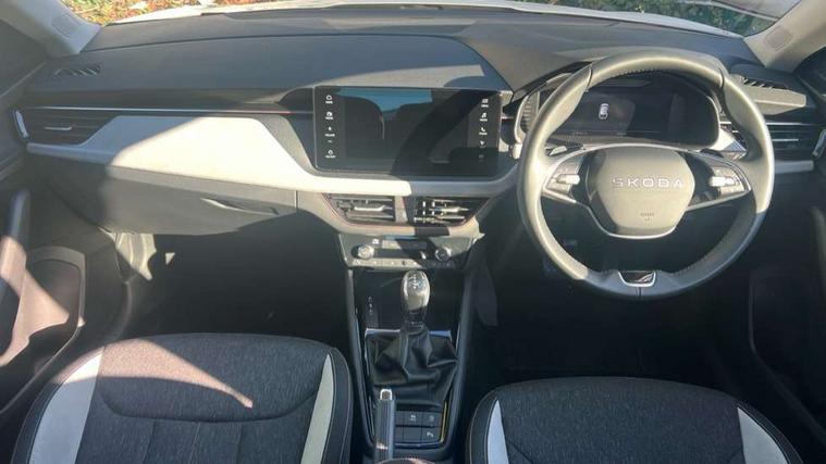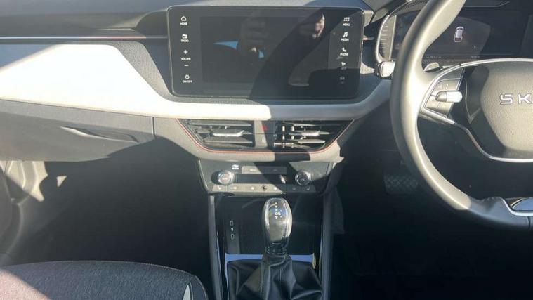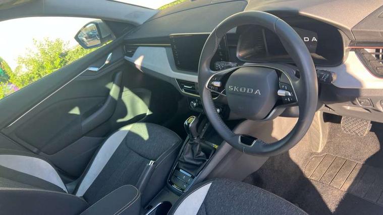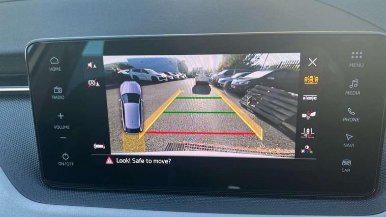 Advanced driver attention and drowsiness monitor, Bluetooth, e-Call (emergency call), Front assist system, PAS, Rear parking sensors, Rear view camera, Speed limiter, Tailgate, Traffic sign recognition, Virtual Cockpit - 10.25" digital display, Voice control system, Wireless smartlink, 4 USB C ports, 8 Speakers, 9.2" Skoda navigation display, DAB radio, Auto dimming rear view mirror, Automatic headlamp activation with Coming home and Leaving home feature, Automatic high/low beam, Automatic intermittent wipers, Body colour bumpers, Body colour door mirrors and handles, Chrome moulding around grille, Chrome window frames, Front and rear electric windows, Heated rear window, LED 3rd brake light, LED brake lights, LED daytime running lights, LED front turning lights, LED high beam, LED low beam, Light sensors, Privacy glass, Rear LED fog light, Rear side wing doors, Rear wiper, Tinted windows, Unique dark chrome design logo on alloy wheels, 12V socket in luggage compartment, 3 seat bench in 2nd row, Ambient lighting in white/red, Black / Copper armrest stitching, Cargo elements, Chrome inner door handles, Copper hotstamping, Door inserts in accent black, Driver and passenger sun visors with vanity mirror, Dual zone climate control, Front and rear roof lights, Front centre armrest, Front head restraints, Glasses storage in roof liner, Height adjustable driver seat, Height adjustable passenger seat, Ice scraper, Illuminated glove compartment, Inner circulation control with pollen filter, ISOFIX for front passenger seat, Isofix preparation for back seats, Leather gearknob and handbrake lever, Lodge cloth upholstery, Luggage net under rear parcel shelf, Manual lumbar support for front seats, Net package and top tether hooks in boot space, Pearl grey ceiling, Pocket on the back of both front seats, incl. mobile phone pockets, Rear centre armrest, Single front passenger seat, Skoda lettering on steering wheel, Textile floor mats, Third rear headrest, Ticket holder, Top tether for front passenger seat, Umbrella in driver's door, Convenience pack without rear camera - Scala, 3x3 point rear seatbelts, ABS, Child locks, Curtain airbags and front side airbags, Disc brakes, Driver and front passenger airbags, ESP, Hill hold control, Manual leather parking brake, One tone horn, Passenger airbag switch off function, Seatbelt reminder for driver and front passenger, Tyre pressure monitoring system, Anti theft alarm system with interior monitoring, backup horn and towing protection, Anti-theft wheel bolts, Remote central locking with 2 remote folding keys, SAFE function for remote central locking, Decorative inserts,