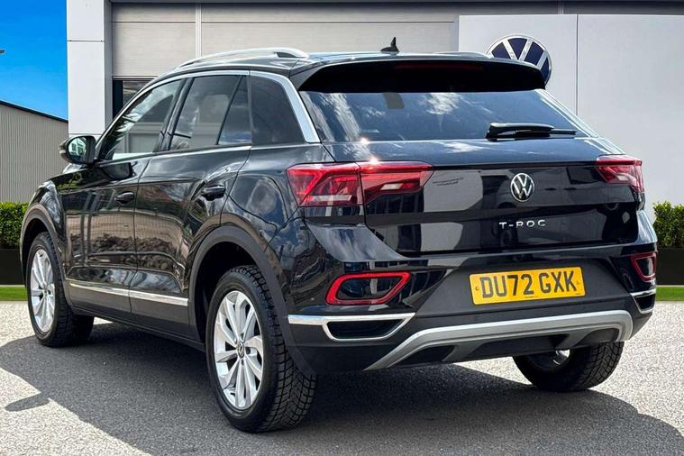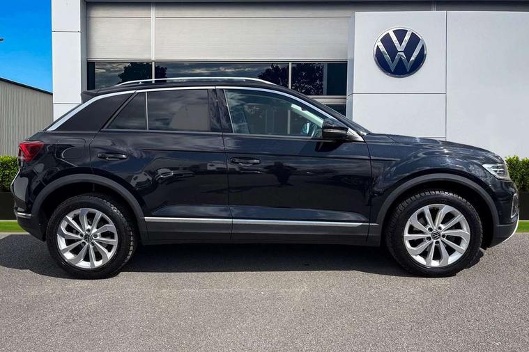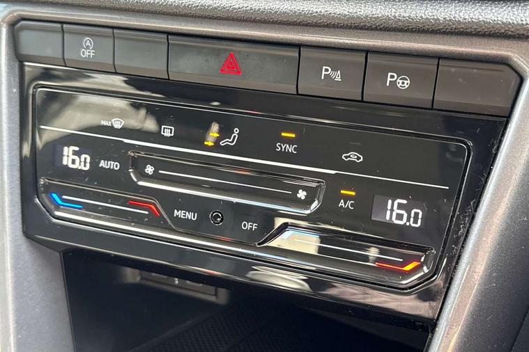 10.25" Digital cockpit pro, Bluetooth mobile phone interface, Driver alert system with fatigue detection, Driver tips and journey analysis, Dynamic road sign display, Emergency call service, Lane keeping system Lane Assist, Modified key software - reduce switch off time for key status change to Long no motion, Online services, Park assist including front and rear parking sensors, Power assisted speed sensitive steering, Service interval indicator, Tailgate/trunk lid release from outside, Think blue trainer driver tips and journey analysis, Warning sound and light for front seatbelts unfastened, Wireless app connect, Battery regeneration during braking, Front shock absorption, Rear shock absorption chassis with increased ride height, Start/stop function with battery regeneration, Diversity antenna for FM reception, Front and rear 6 speakers, Music playback - MP3, WMA and AAC files, Premium USB cable in choice of either Apple or Android smartphone compatibility, SD card slot, Simultaneous pairing of 2 compatible mobile devices, Title and cover art display, We Connect and We Connect Plus functionality, 3rd brake light, Auto dimming interior rear view mirror, Automatic hazard lights activation under emergency braking, Automatic headlight control with LED separate daytime running lights with coming/leaving home function, Body colour sports bumpers with silver metallic underbody fascia, Dynamic headlight range control with self adjusting whilst driving, Extended roof spoiler, Exterior mirrors aspherical on driver side, convex on front passenger side, External USB type C socket and charging sockets, Front windscreen wiper with intermittent wipe and 4 position delay, Heated rear window, LED Plus headlamps, LED rear combination lamps, LED rear number plate lights, LED tail lamp rear comination lamps, Light mode for poor weather, rain, fog or snow, Power windows with comfort operation and circuit breaker, Rain sensor, Rear exhaust tailpipe, Rear fog light on one side and reversing lights on both sides, Rear side wing doors, Rear wash/wipe with intermittent wipe setting, Remote electrically foldable door mirrors, puddle lights and reverse activated passenger's door mirror, 12V power socket in centre console, 3 rear head restraints, 3 seat bench in 2nd row, 4 load lashing points in luggage compartment, Air care climatronic air conditoning system with active combination filter and 2-zone temperature control, Chrome plated radiator grille inserts, air vent surrounds and light switch surrounds, Door and side trim panel with leatherette insert, Drawer under drivers seat, Front + rear carpet mats, Front centre armrest, Front comfort sports seats, Front cupholders x 2, Front footwell illumination, Instrument lighting, white adjustable panel illumination, Interior ambient lighting and surround lighting, Interior light delay, Isofix child seat preparation, Leather gearshift handle, LED interior light with switch off delay/dimmer and 2 front/rear LED reading lights, Load-through provision with cup holder when folded down ('Unsplit rear seat bench, split folding backrest, with centre armrest), Luggage compartment lighting, Non-folding front passenger seat backrest, Single front passenger seat, Storage compartment in left and right luggage area, Storage compartment in rear doors, Storage compartments in driver and front passenger doors, Sunvisors with illuminated vanity mirrors, Variable boot floor, height adjustable and removable, Driver assistance pack without proactive passenger protection - T-Roc, 3 point height adj front seatbelts + pretensioners, 3 point seatbelts in outer rear with ECE label, ABS, Child locks on rear doors, Driver and front passenger airbag with front passenger airbag deactivation, Driver and front passenger safety-optimised head restraints, Drivers seatbelt reminder, Electronic parking brake, Electronic Stability Control (ESC) inc EDL (Electronic Differential Lock) and ASR (Traction Control), Front and rear passengers curtain airbag system including front side airbags, Front assist with city emergency braking and pedestrian monitoring, Front disc brakes, Front seat side impact airbags, Predictive pedestrian protection, Rear disc brakes, Single tone horn, Tyre pressure loss indicator, Volkswagen roadside assistance, Alarm with interior protection, Anti-theft alarm system with interior monitoring, backup horn, and towing protection, Remote central locking with SAFELOCK, radio remote control with 2 remote control folding keys, Trims for alloy wheels,