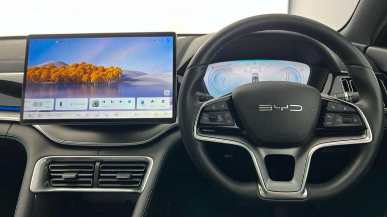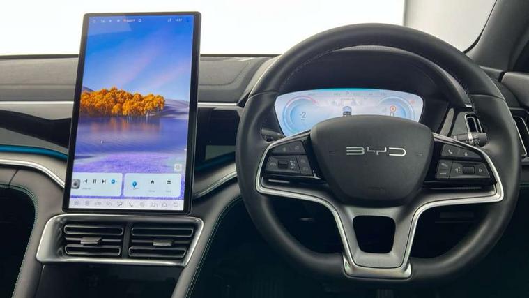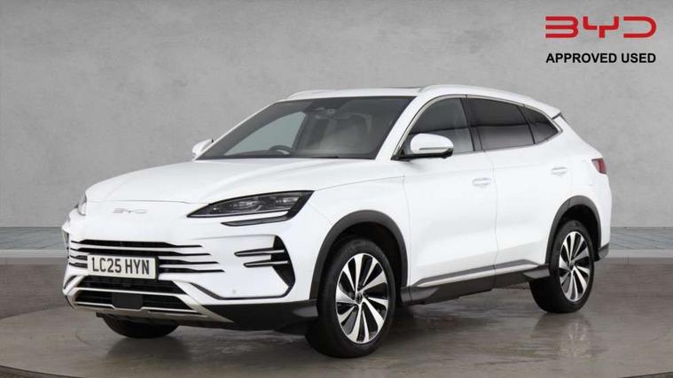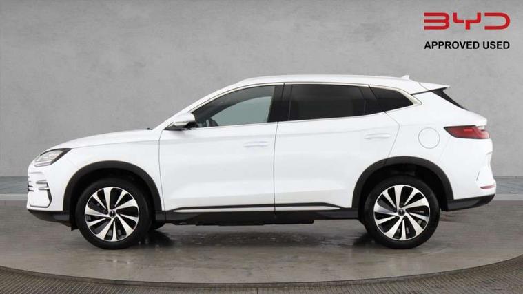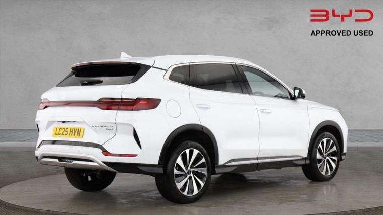 12.3" TFT full LCD instrument panel, 360 camera, Adaptive Cruise Control (ACC) and Intelligent Cruise Control (ICC), Automatic vehicle hold, Blind spot detection, BYD voice control assistant "Hi, BYD", Controller Deceleration Parking (CDP), Drive mode select (Eco, normal, sport, snow), e-Call (emergency call), Electric tailgate release, Emergency Lane Keeping Assist (ELKA), Forward collision warning, Front and rear parking sensors, Front cross traffic alert and front cross traffic brake, Head up Display, Indirect driver fatigue management, Intelligent Speed Limit Control (ISLC), Keyless system entry and start, Lane change assist, Lane Departure Assistant (LDA) and Lane Departure Warning (LDW), Lane departure prevention, PAS, Predictive collision warning, Rear collision warning, Rear cross traffic alert and rear cross traffic brake, Rollover Control System (RMI), Smartphone wireless charging, 2 x 15W, Traffic sign recognition (TSR), Vehicle-to-Load (V2L) function, 11kW on board charger, Mode 3 Type 2 charging cable (3 phase), V2L (Vehicle to load) power strip - Type F, 15.6" Electrically rotatable touchscreen, FM/DAB+ radio, Front USB ports, 1 x 18W Type C, 1 x 60W Type C, Infinity sound system with 10 speakers, Rear USB ports, 2 x 18W Type C, Aluminium roof rails, Auto dimming interior rear view mirror, Auto headlamps (on/off), Dynamic welcome lights, Electric folding and heated door mirrors, Emergency tow hook, Exterior mirror footlights, Follow me home headlights (The headlights turned on in advance and delayed off function), Front windscreen, UV protection, thermal insulation and sound proofing, High beam assist, LED 3rd brake light, LED daytime running lights, LED Headlights, LED taillights, One touch electric front/rear windows with pinch protection, Panoramic sunroof with anti-pinch sensor and electrically adjustable sunshade, Rain sensor windscreen wipers, Rear fog lights, Rear side wing doors, Rear window and rear windscreen with tinted glass, Rear wiper, 12V power outlet, 3 seat bench in 2nd row, 8 way electrically adjustable drivers seat, Adjustable rear headrests, Boot parcel shelf, Driver and passenger sunvisors with illuminated vanity mirrors, Driver seat memory function, Front centre armrest with 2 cupholders, Front LED reading lights, Front passenger seat with 4-way electric adjustment, Front seat footlights, Heat pump, Heated front seats, Heated steering wheel, Integrated headrest in front seats, ISOFIX and i-Size for front passenger and outer rear seats, LED front door lights, Nylon floor mats, PM2.5 air filter, PM2.5 air purification system, Rear air vents, Rear armrest with 2 cupholders, Rear side LED reading lights, Rhythm-reactive multi-colour ambient lighting, Single front passenger seat, Split folding rear seats - 40/60, Vegan leather multifunction steering wheel, Vegan leather upholstery, Ventilated front seats, 3x3 point rear seatbelts, ABS/EBD, Automatic emergency braking system, Brake override system (BOS), Child presence detection, Comfort stop, Door open warning, Driver airbag, Electric parking brake, Force limiting pre-tensioned front seat belts, Front centre airbag, Front passenger airbag, Front passenger airbag deactivation, Front side airbags, Hill descent control, Hill hold control, Hydraulic Brake Assist (HBA), Hydraulic brake boost, Mechanical child safety lock, Rear middle seat force limiting seat belt, Rear seat belt pretensioners, Reflective vest, Side curtain airbags, Traction control system (TCS), Tyre pressure monitoring system (TPMS), Vehicle Dynamics Control System (VDC), Warning triangle, 2 x Smart keys, Anti theft alarm system, Automatic door locking, 19" Bi-colour alloy wheels, Tyre nut covers remover, Tyre repair kit,